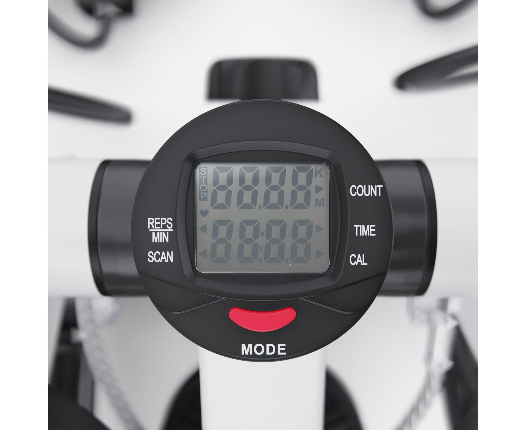 В комплекте с мини степпером идут съёмные эспандеры и батарейка формата LR44. Монохромный LCD дисплей степера показывает время, количество сожженных калорий, количество шагов, количество шагов в минуту и режим сканирования, делая ваши тренировки универсальными.