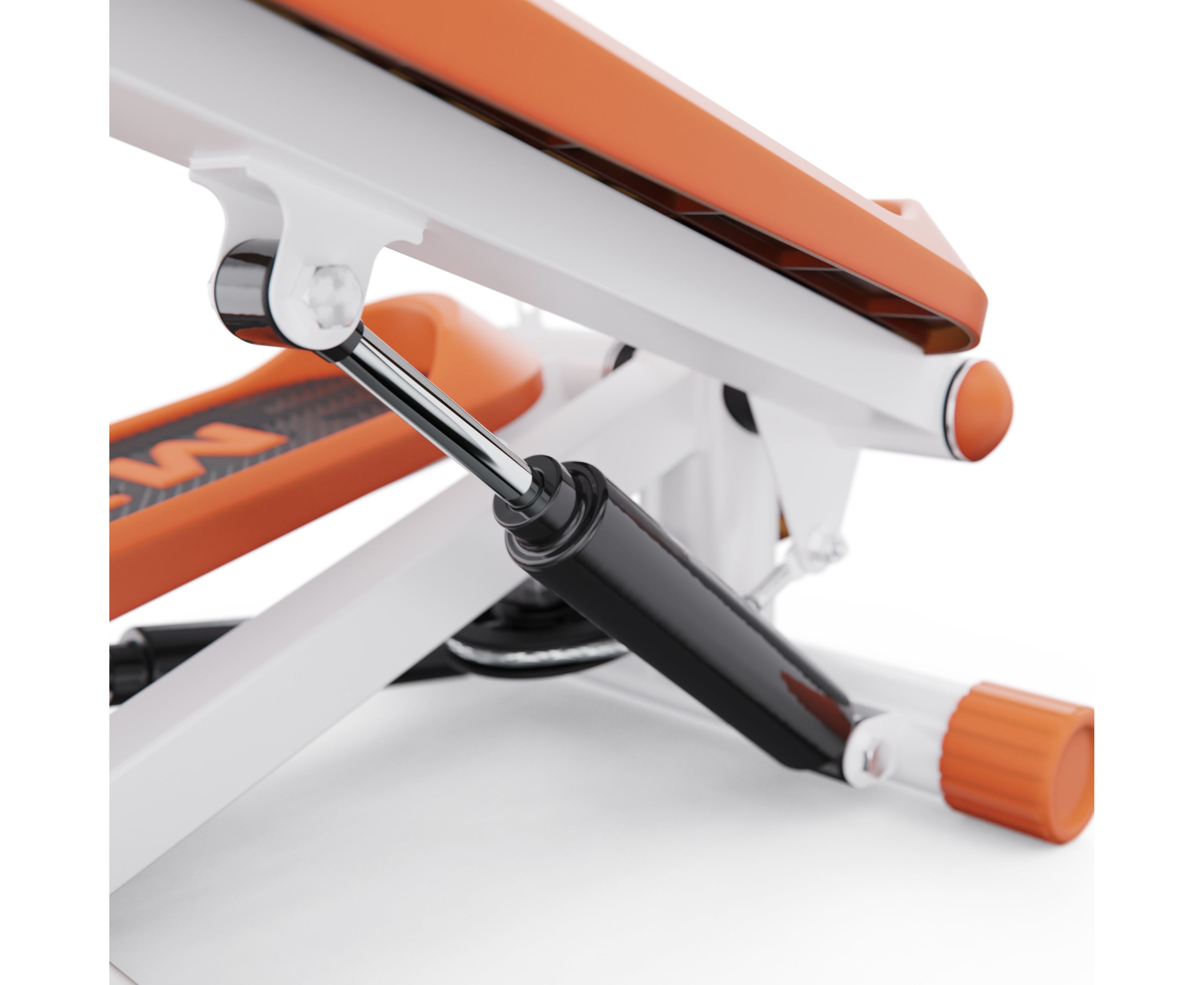 Министеппер поворотный способен выдержать пользователя весом до 100 кг. Министеппер оснащён гидравлической системой нагрузки, которая обеспечивает плавный и тихий ход педалей. Вы можете механически регулировать уровень нагрузки, подстраивая интенсивность тренировки под свои цели и физическую подготовку.