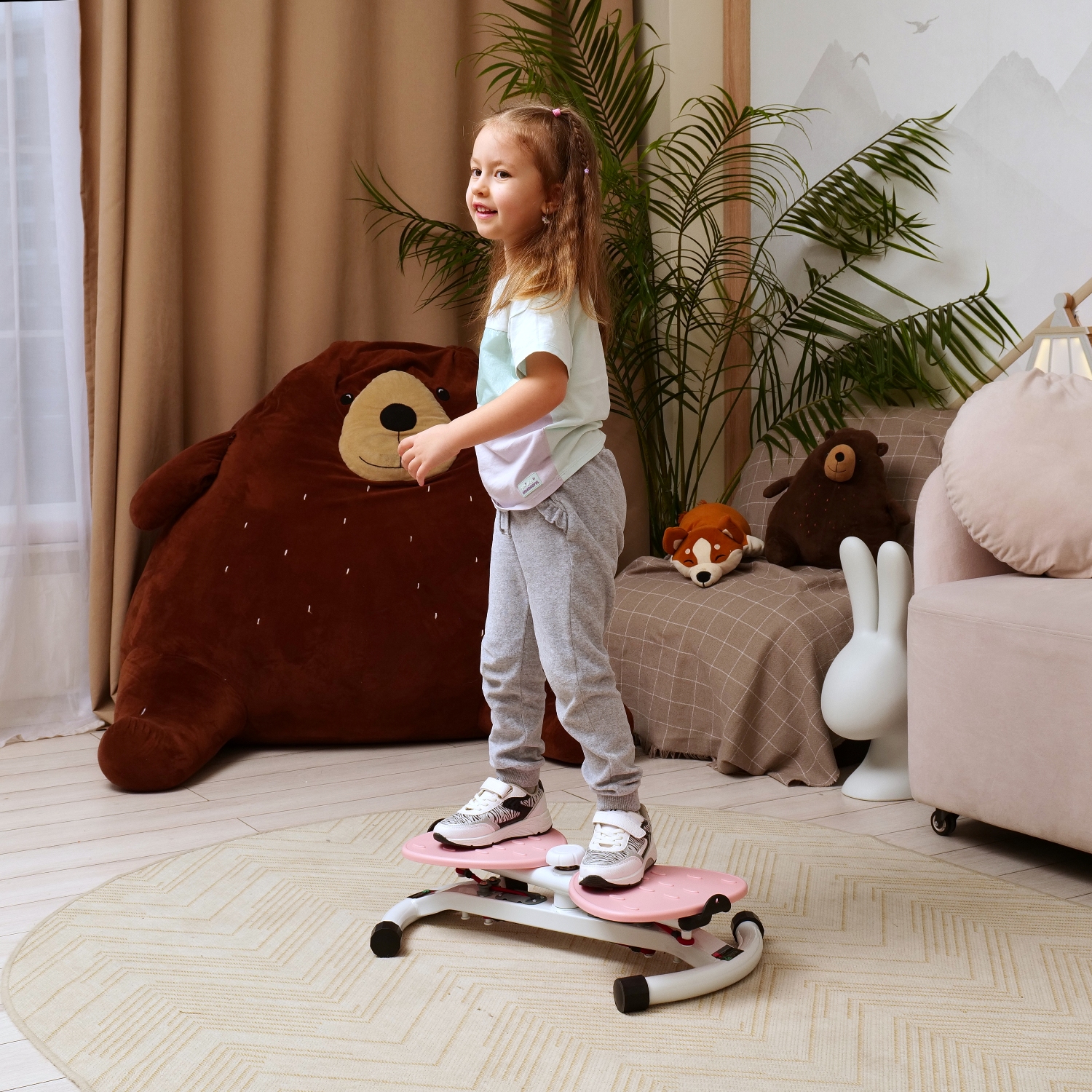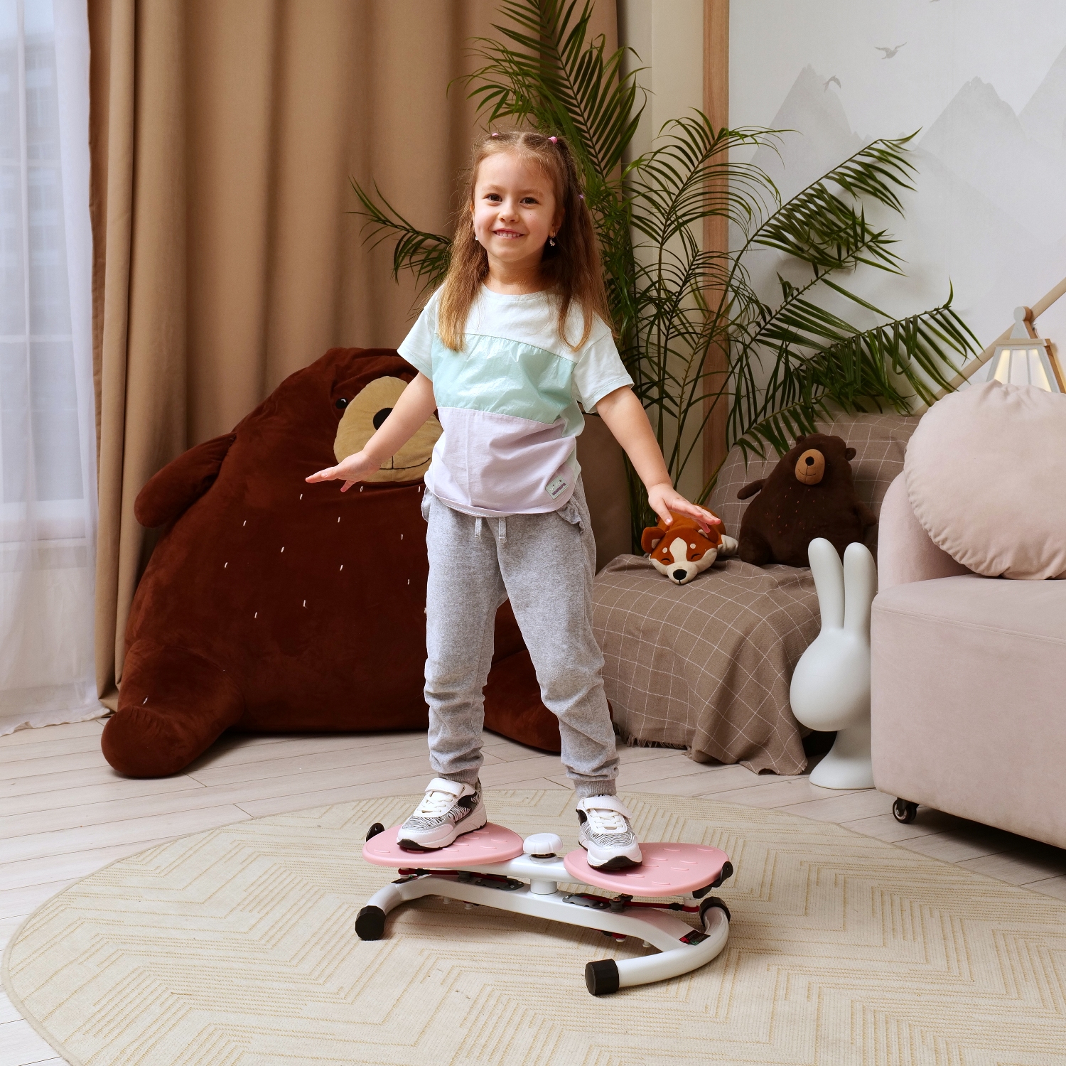 Twister Bow - это компактная платформа розового цвета для проработки косых мышц живота, пресса, икроножных и ягодичных мышц, а также поясницы. Тренажёр идеально подойдёт как начинающим, так и продвинутым пользователям, не займёт много места в комнате и поможет создать идеальную талию.
