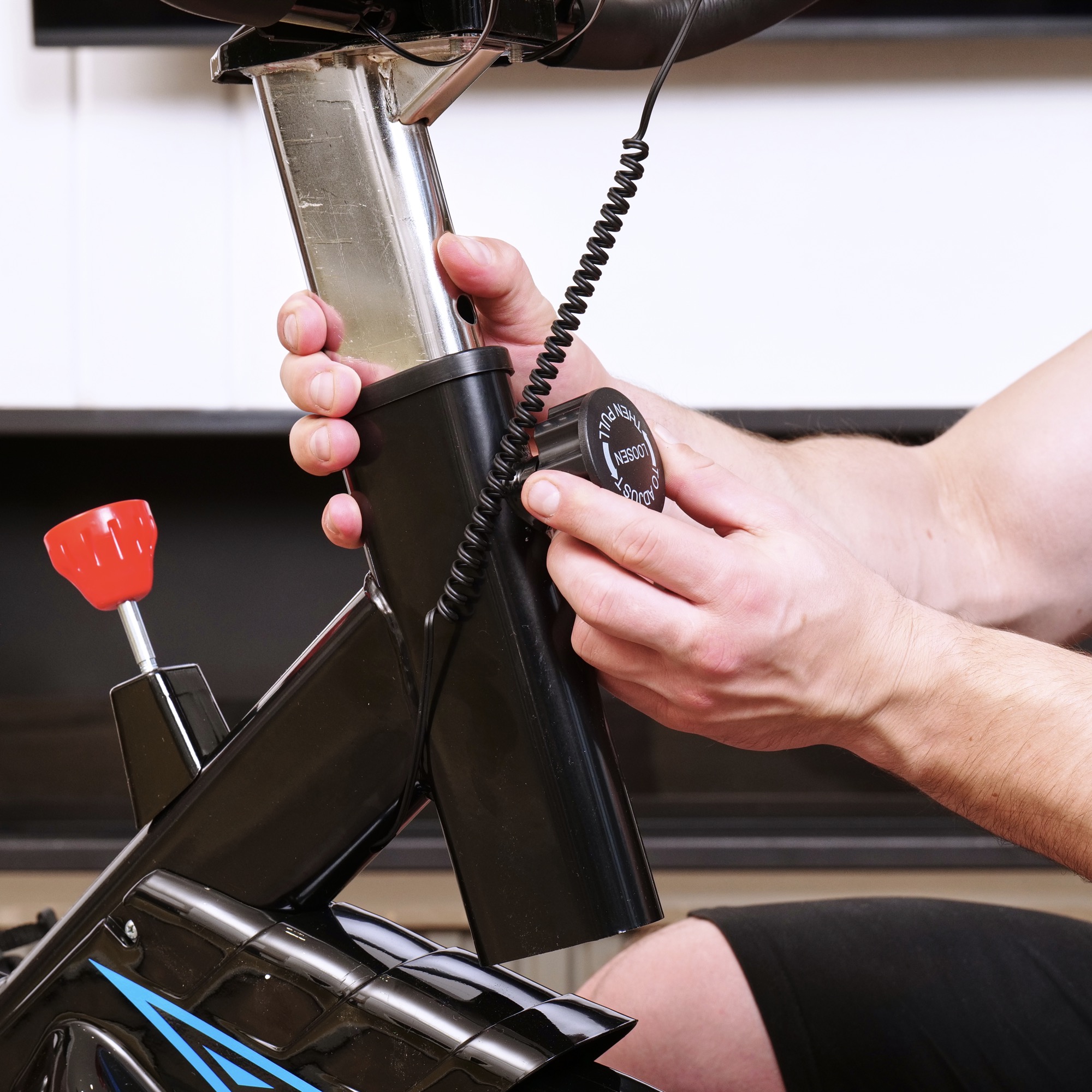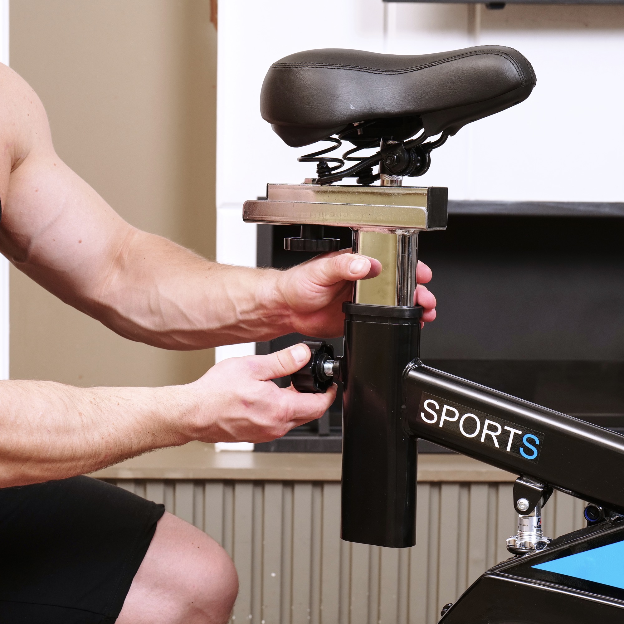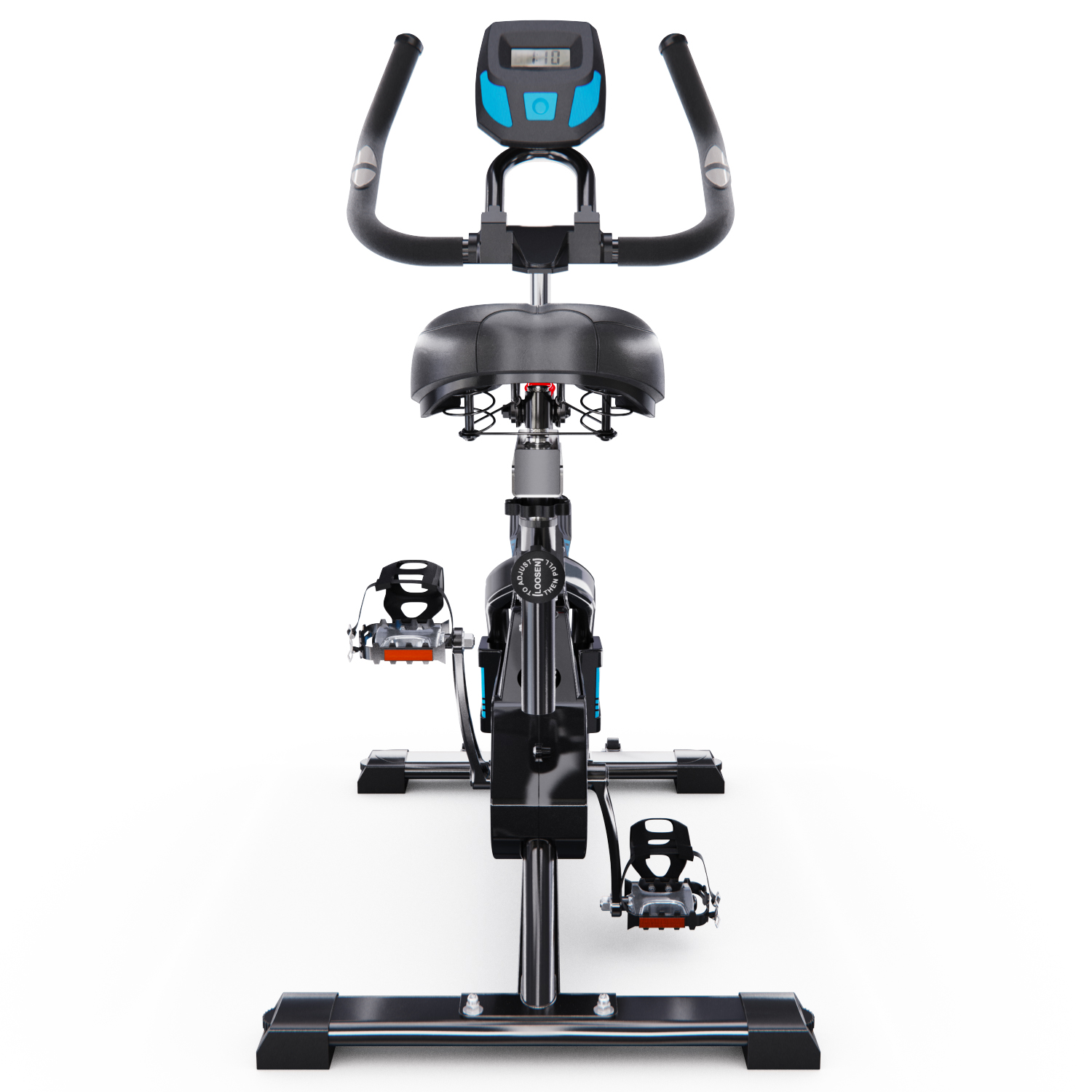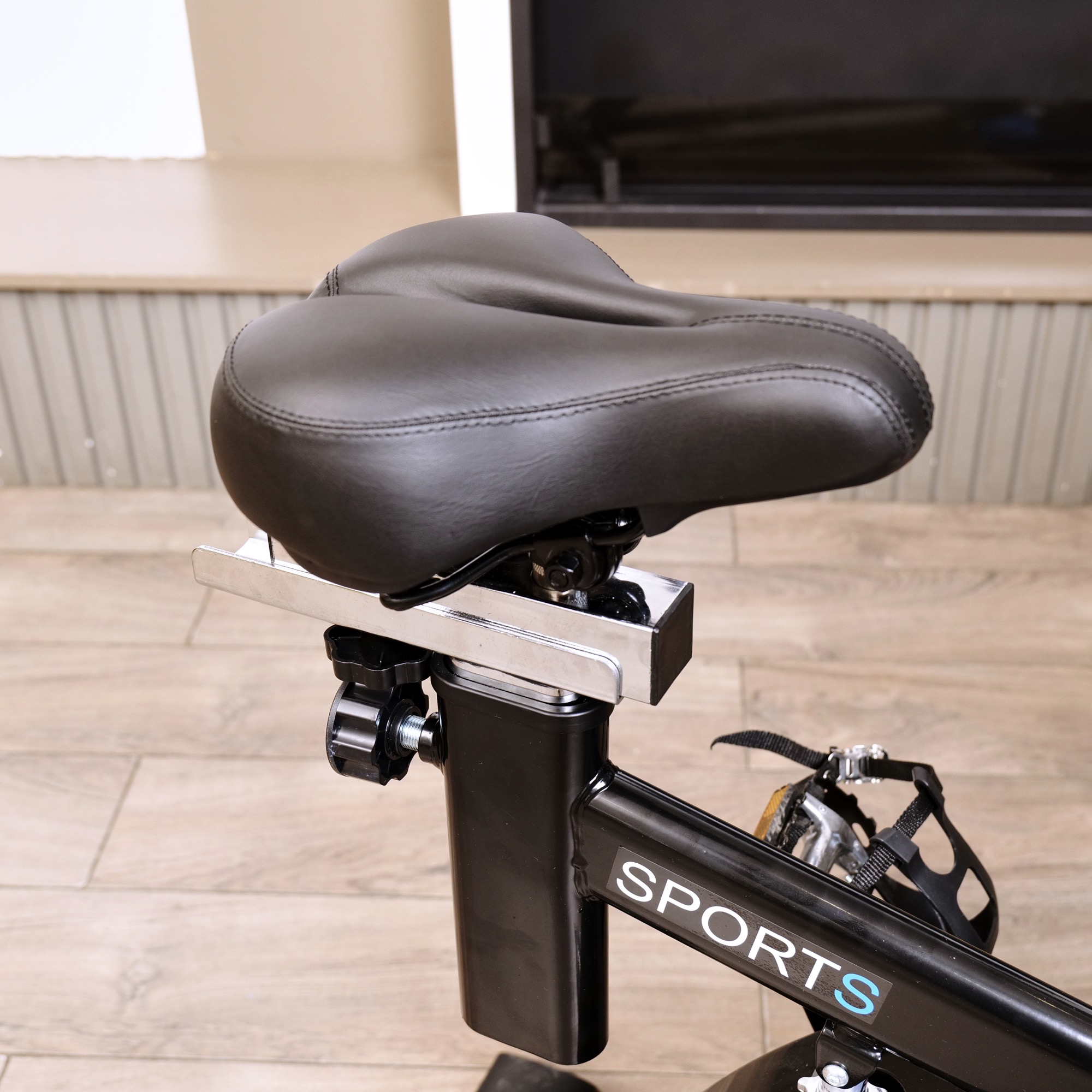 Регулировка руля на 5 уровней по вертикали в диапазоне от 114 до 123 см позволяет настроить руль под рост каждого пользователя, обеспечивая максимальный комфорт и эффективность тренировок. Спортивное сиденье также регулируется по горизонтали и на 5 уровней по вертикали от 85 до 95 см, что помогает настроить велотренажер под свой рост.