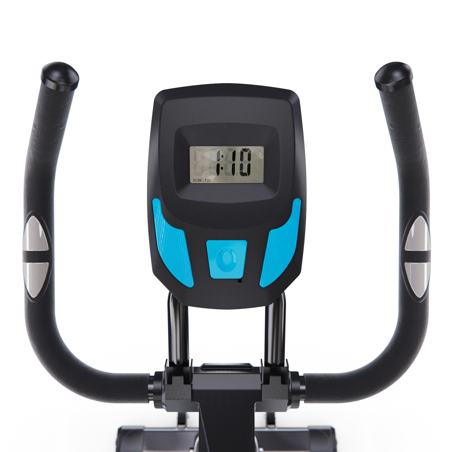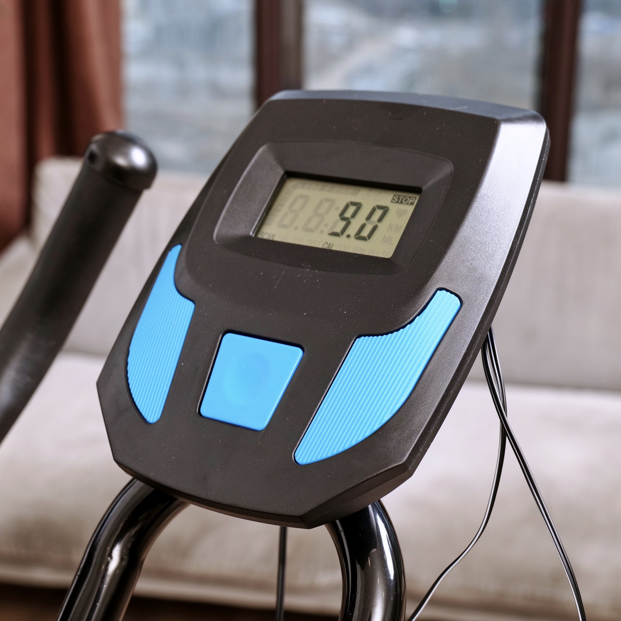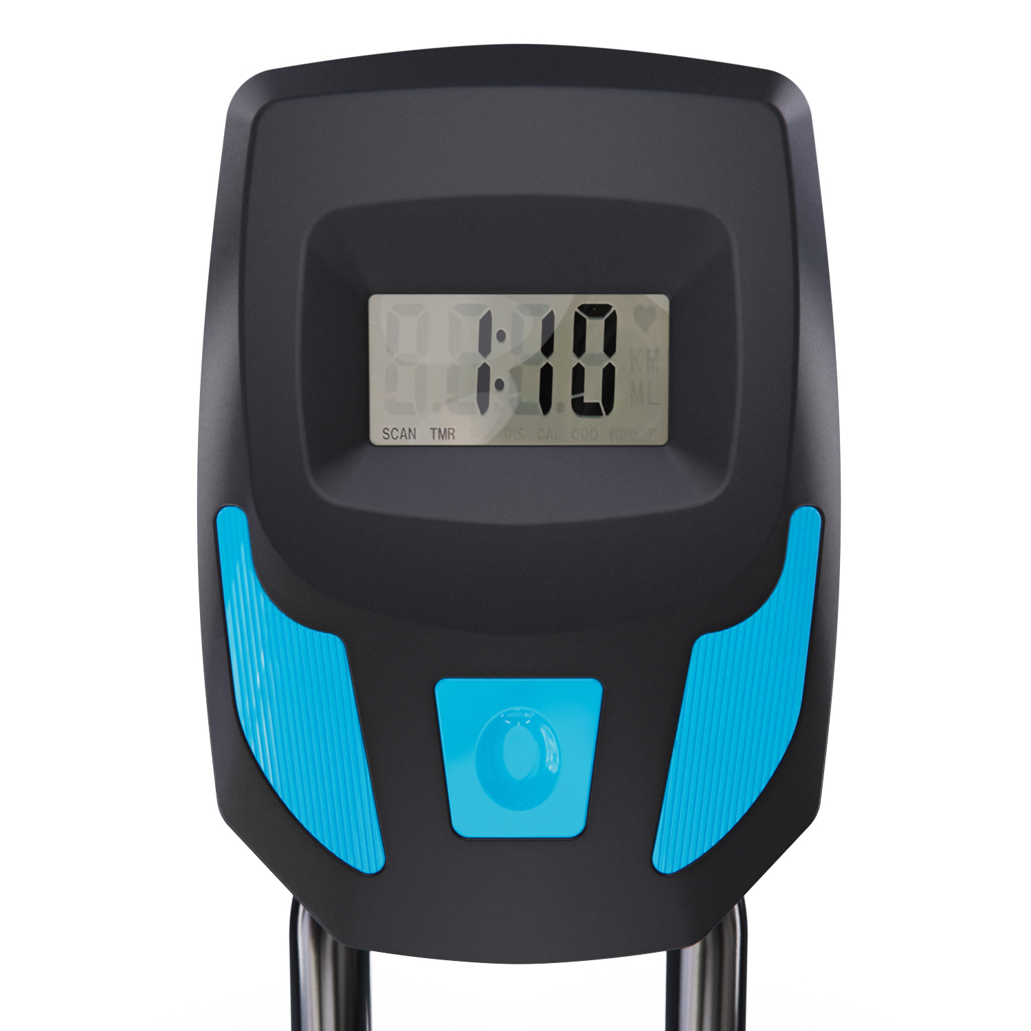Монохромный LCD дисплей отображает такие параметры как время, скорость, дистанция, калории, пульс. Для работы консоли используются батарейки типа “ААА”, батарейки не входят в комплект поставки.