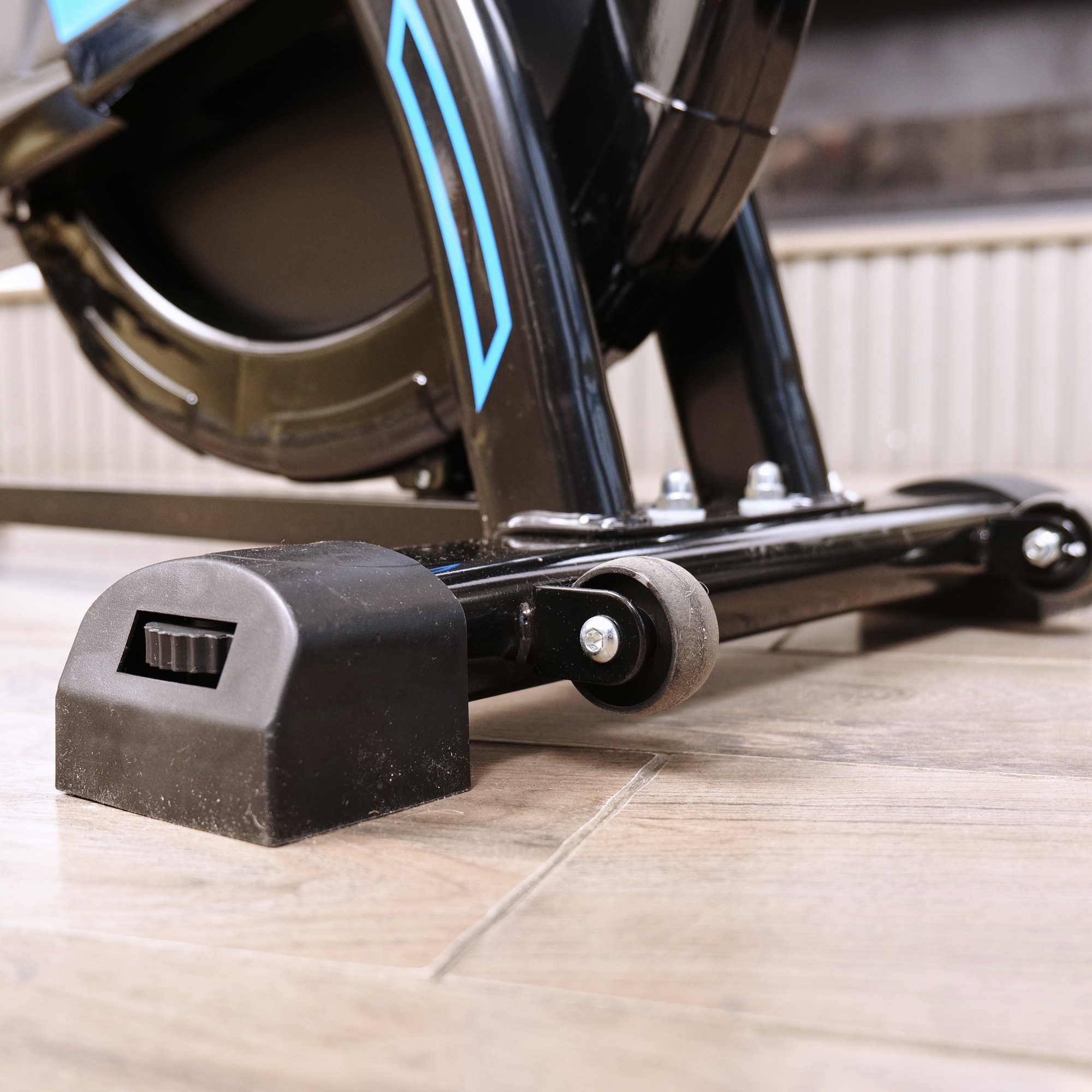 Транспортировочные ролики помогают быстро и удобно перемещать велотренажер по дому, а подставка под планшет позволит удобно просматривать видео во время тренировки. Компенсаторы неровности пола гарантируют стабильность велотренажёра и обеспечивают надёжное сцепление с поверхностью, предотвращая скольжение и смещение тренажёра во время использования