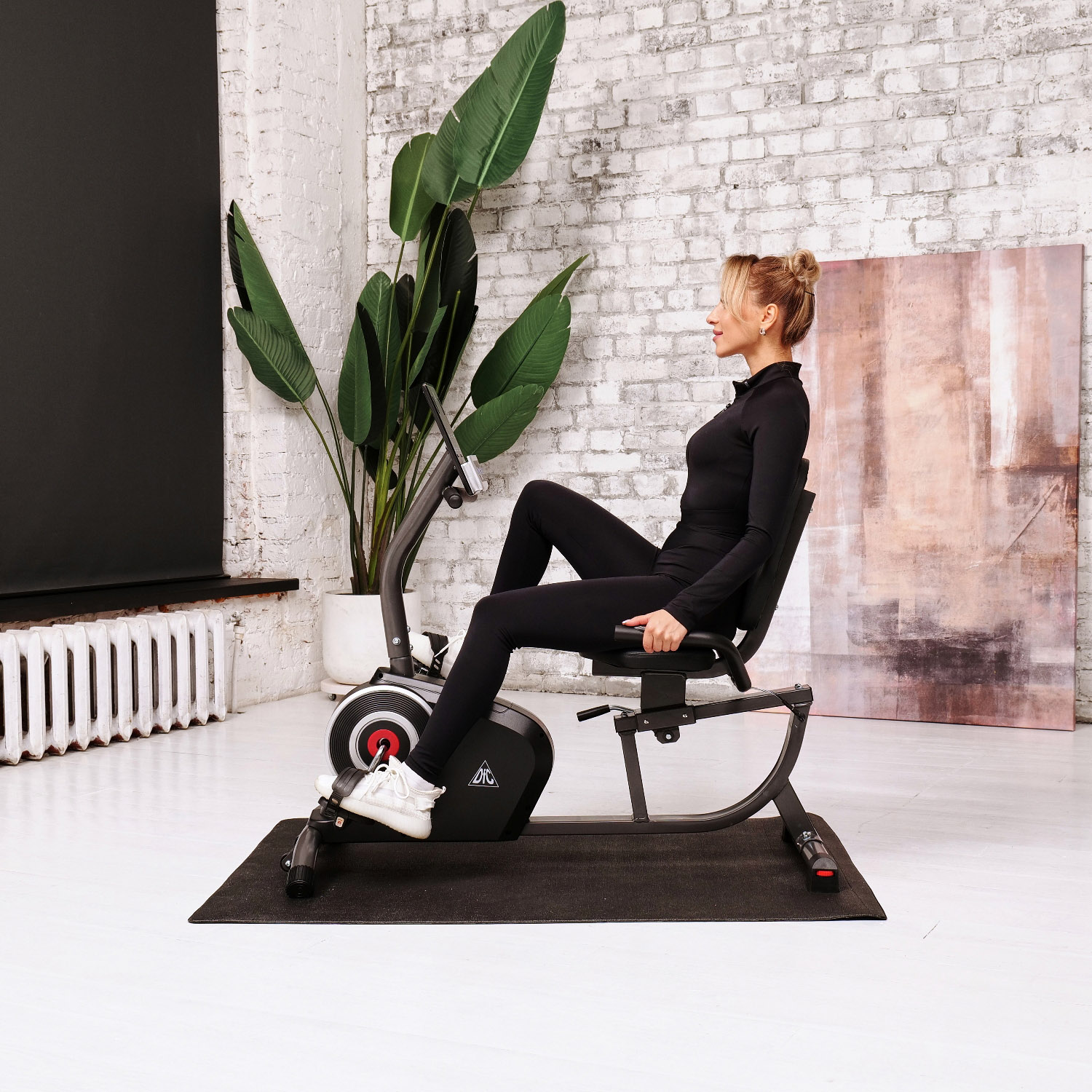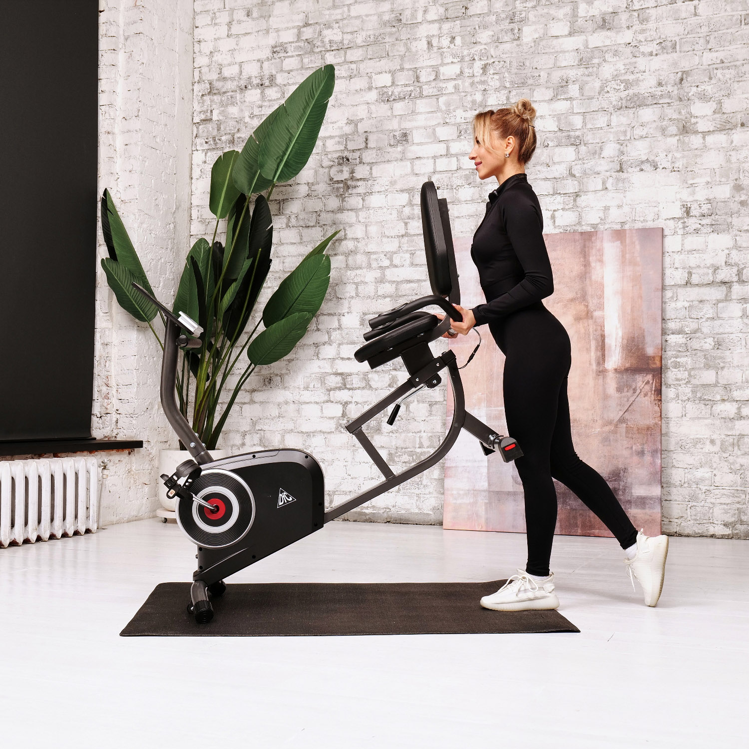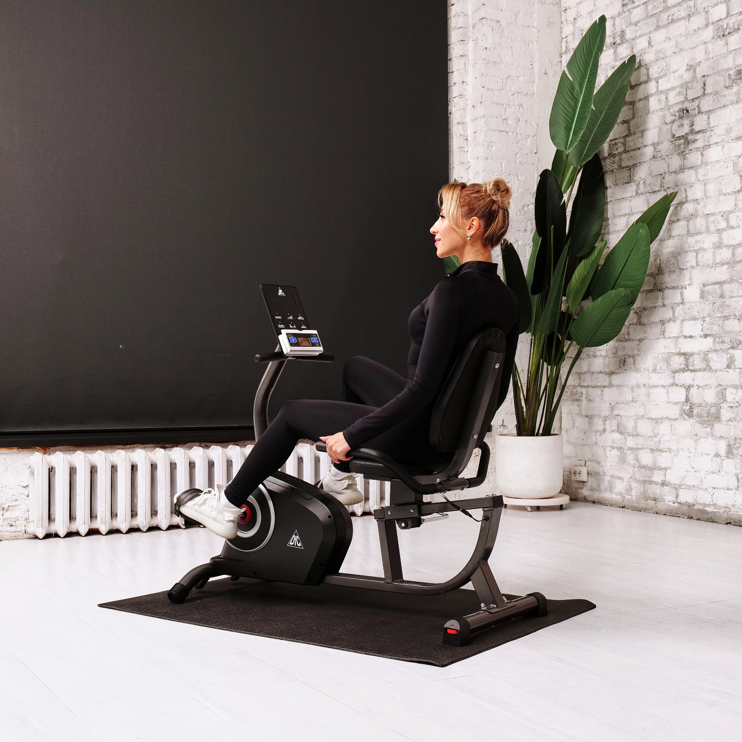Велотренажер с удобной горизонтальной посадкой и бесшумной электромагнитной системой нагружения. Нагрузка имеет электронную регулировку с консоли, 8 уровней. Мягкое регулируемое сиденье с мягкой спинкой.