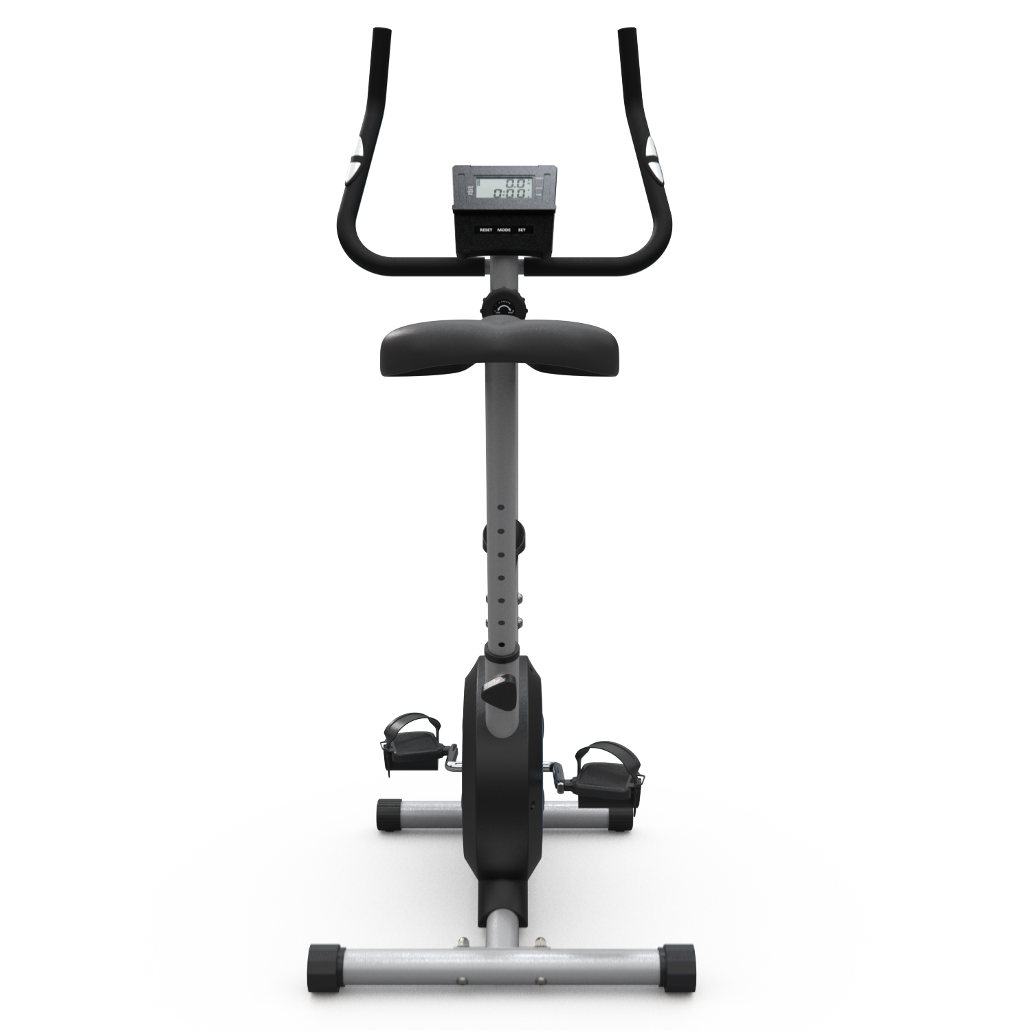 Сиденье велотренажера регулируется по вертикали на 7 уровней от 80 до 94 см от пола, что позволяет настроить его под свой рост. Для отслеживания показаний во время тренировок, на поручнях велотренажера расположены сенсорные датчики пульса. Кроме того, велотренажер оснащен компенсаторами неровности пола, что позволяет стабильно использовать его на любой поверхности. Транспортировочные ролики для быстрого перемещения тренажёра.