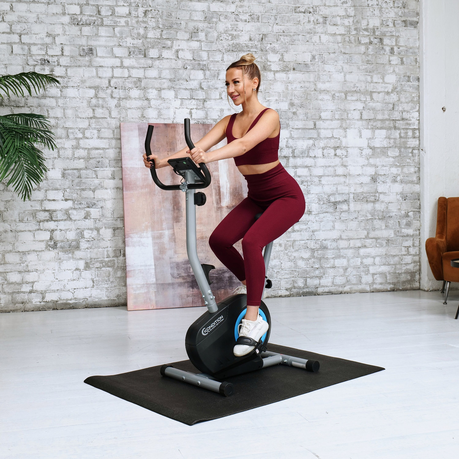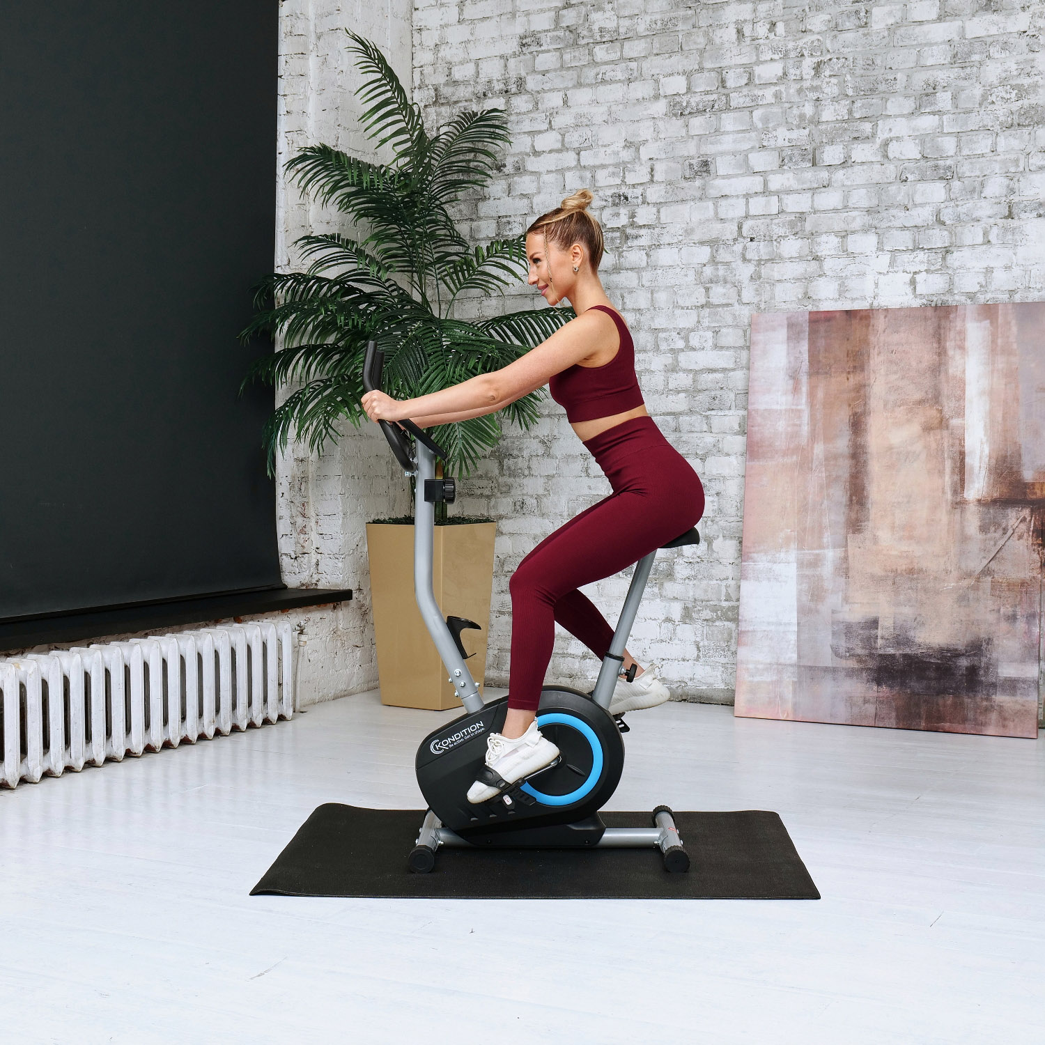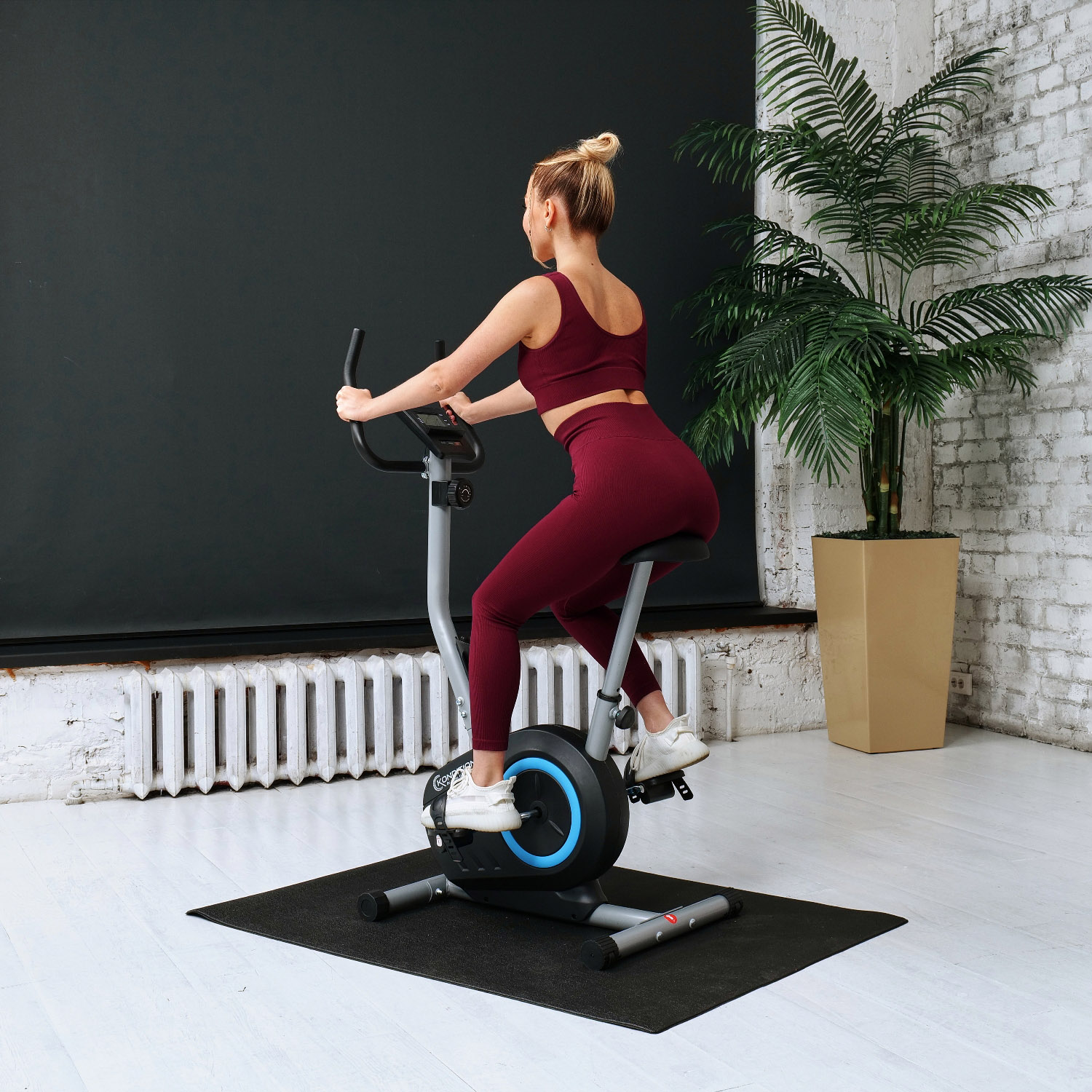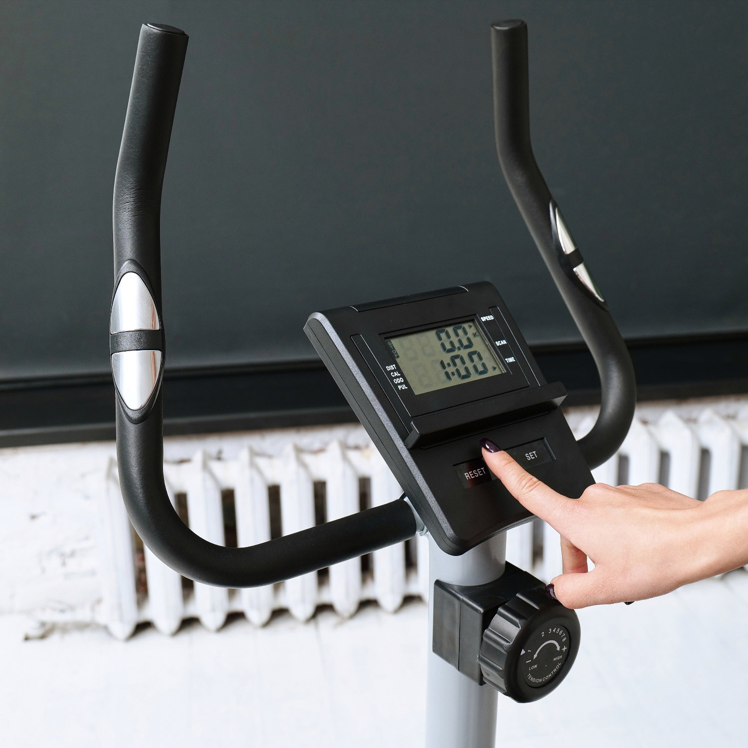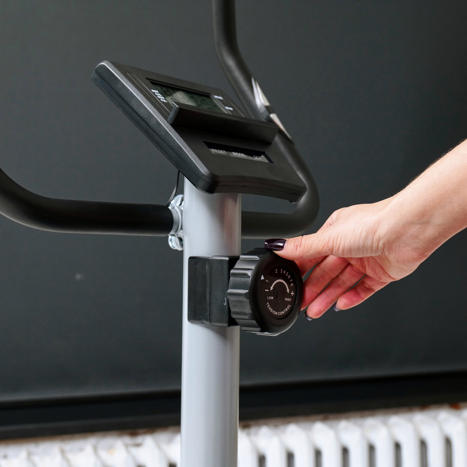 Велотренажер оснащен инерционным маховиком весом 5 кг с возможностью крутить педали в обе стороны. Нагрузка осуществляется с помощью магнитной системы и регулируется механически на 8 уровней.