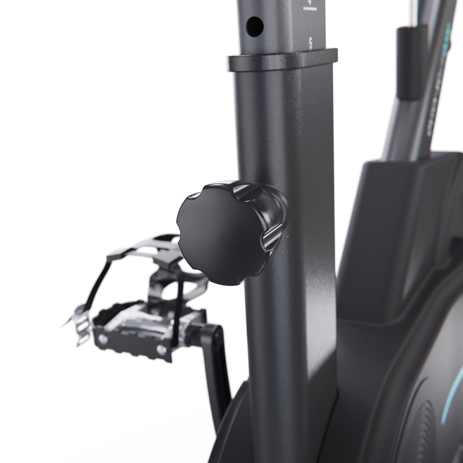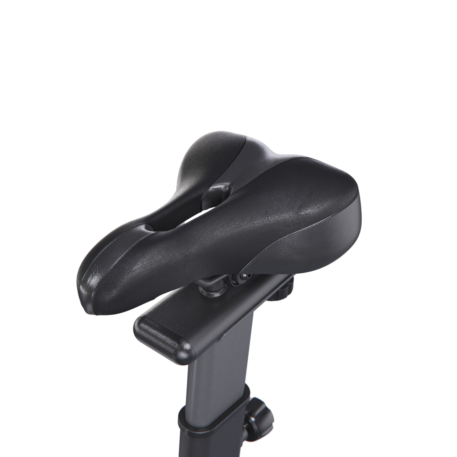 Велотренажёр выдерживает вес до 110 кг и подходит для пользователей ростом от 150 до 190 см. Инерционный вес маховика 15 кг гарантирует плавное движение и настройку степени нагрузки. Обернутый вокруг маховика ремень обеспечивает минимальный уровень шума, что делает тренажер кардио оптимальным вариантом для использования дома.