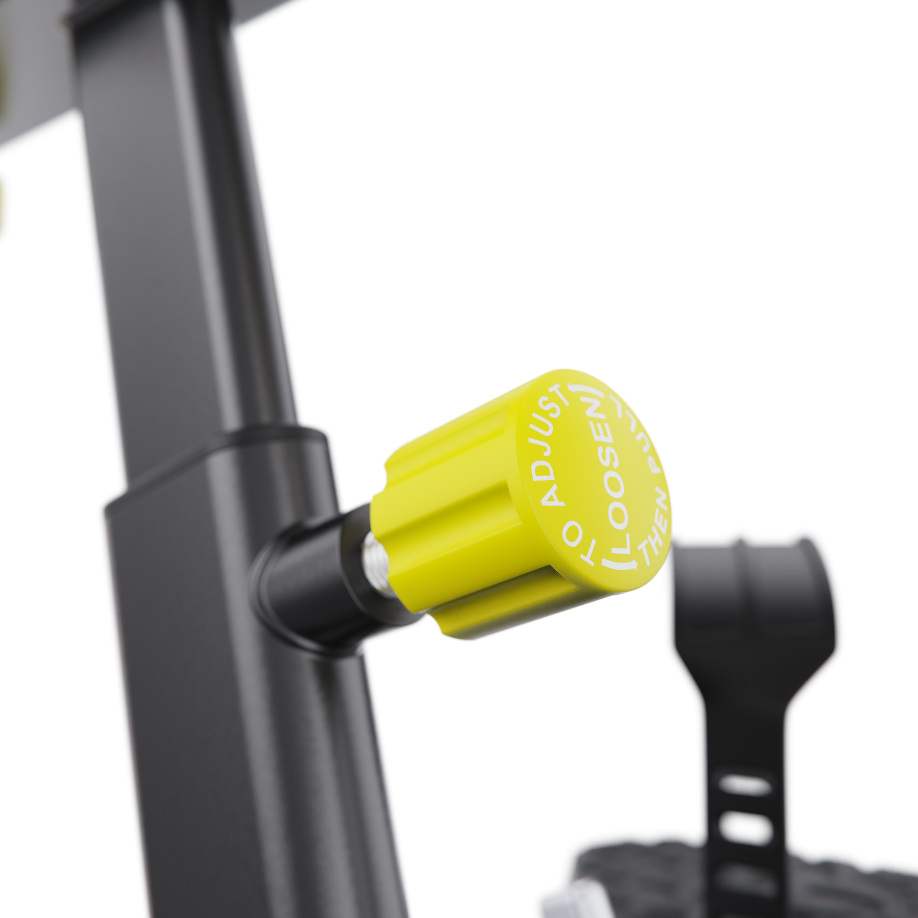 Сиденье велотренажера регулируется по высоте в диапазоне от 75 до 89 см — предусмотрено 6 фиксированных уровней, что позволяет подобрать оптимальное положение как для низких, так и для высоких пользователей. Помимо вертикальной регулировки, сиденье можно сдвигать вперёд или назад по горизонтали, что особенно важно для правильной посадки и снижения нагрузки на суставы.
