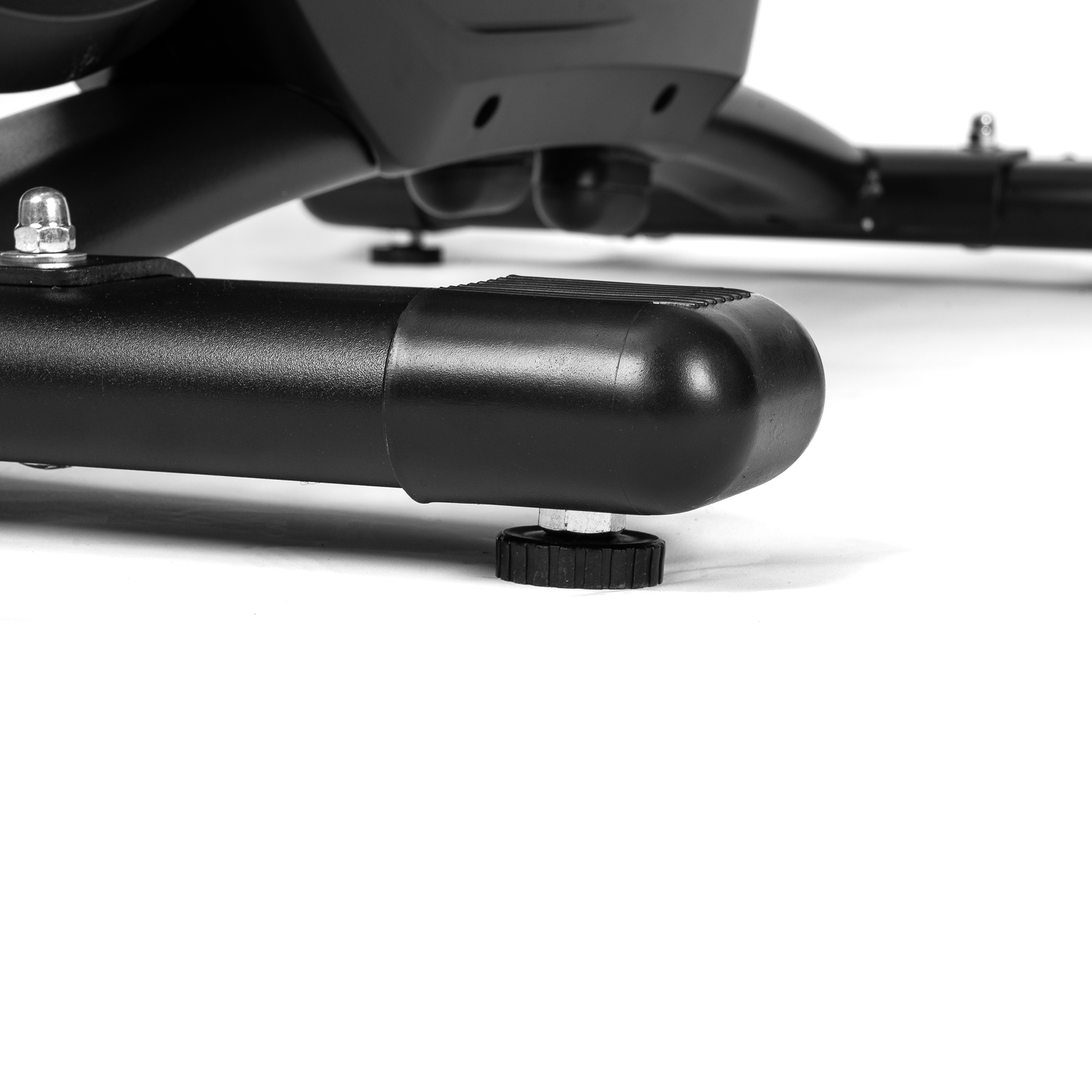 Компенсаторы неровности пола обеспечивают устойчивость даже при интенсивных нагрузках, а транспортировочные ролики делают перемещение тренажёра лёгким и удобным. Подставка для планшета позволяет смотреть видео или слушать музыку во время тренировки.