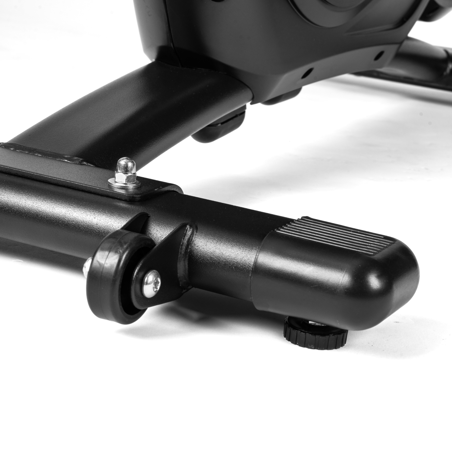 Модель рассчитана на пользователей весом до 110 кг. Тренажёр оснащён магнитной системой нагрузки с инерционным весом маховика 10 кг и механической регулировкой. Благодаря бесступенчатой системе изменения сопротивления, вы можете плавно повышать или снижать уровень сложности, выбирая оптимальный режим для кардио-тренировки, сжигания жира или развития выносливости.