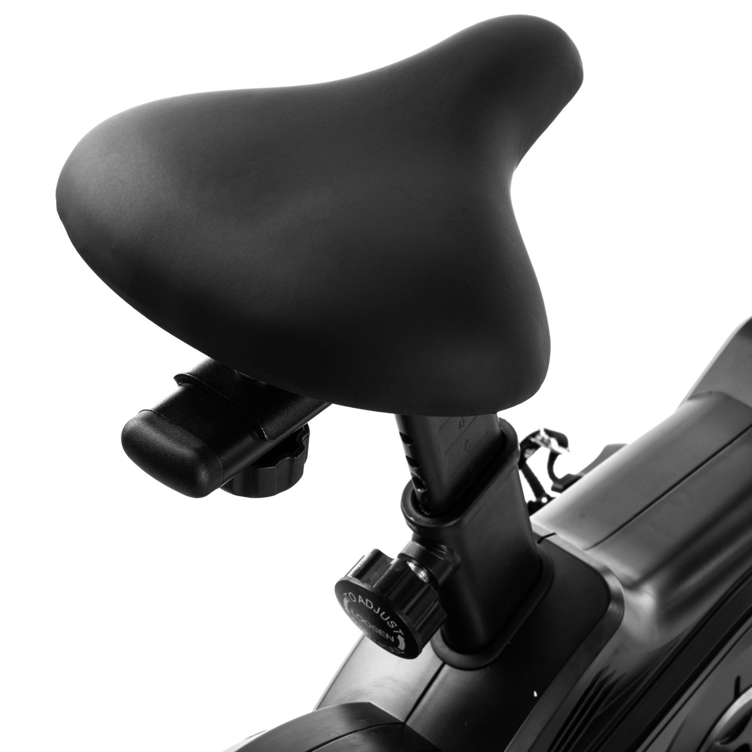 Сиденье велотренажера регулируется на 11 уровней по высоте в диапазоне от 76 до 98 см, что позволяет подобрать удобную посадку для пользователей разного роста. Руль регулируется на 8 уровней, благодаря чему можно дополнительно настроить положение и повысить комфорт во время занятий. Расстояние между поручнями составляет 36 см, что обеспечивает удобный и надёжный хват.
