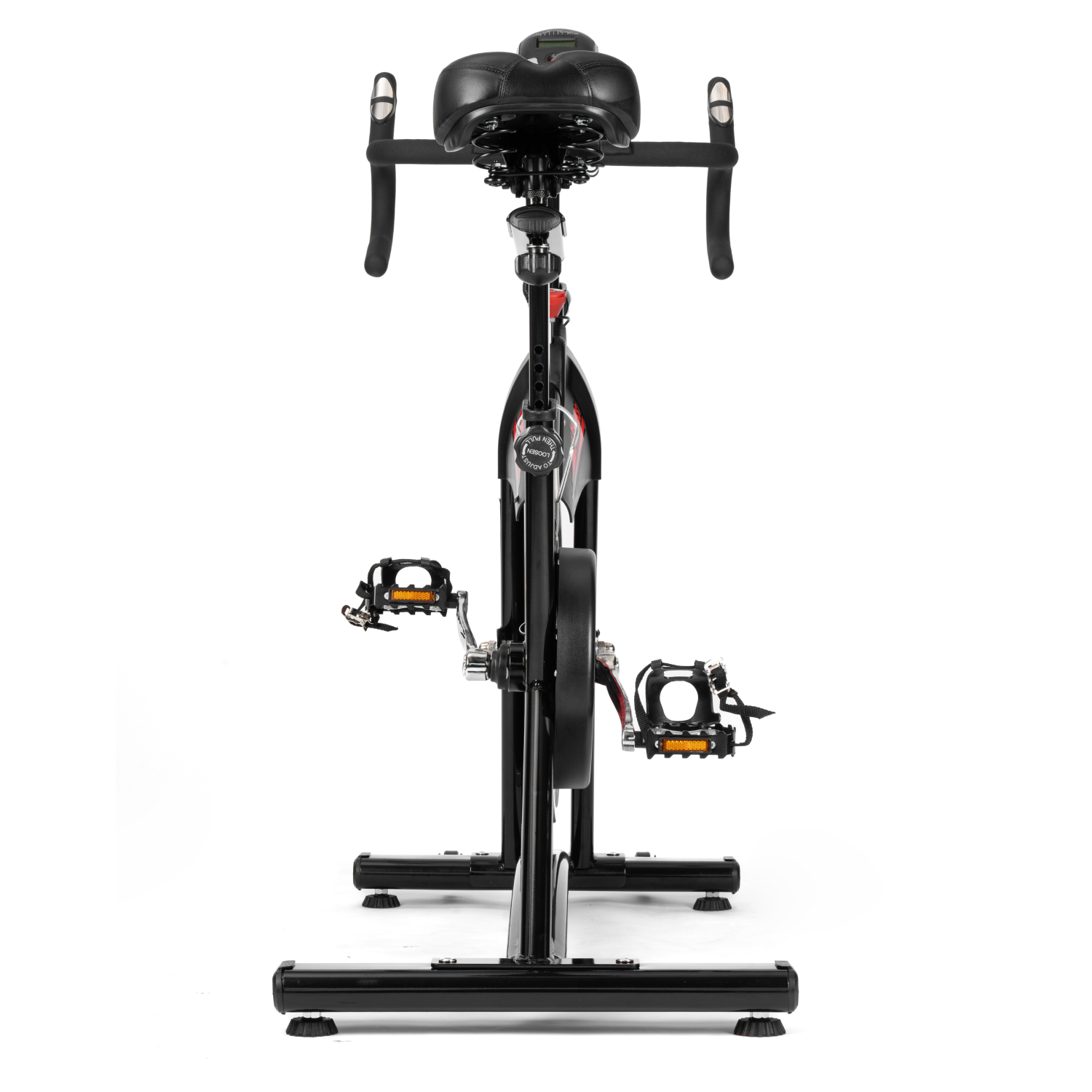 Сиденье велотренажёра регулируется на 8 уровней в диапазоне от 88 до 104 см, что позволяет подобрать удобное положение для пользователей разного роста. Руль также регулируется и имеет 5 уровней, благодаря чему можно дополнительно адаптировать посадку и сделать тренировку более комфортной. Расстояние между поручнями составляет 43 см, что обеспечивает удобный и устойчивый хват во время занятий. Пульс во время тренировки измеряется с помощью сенсорных датчиков на поручнях.