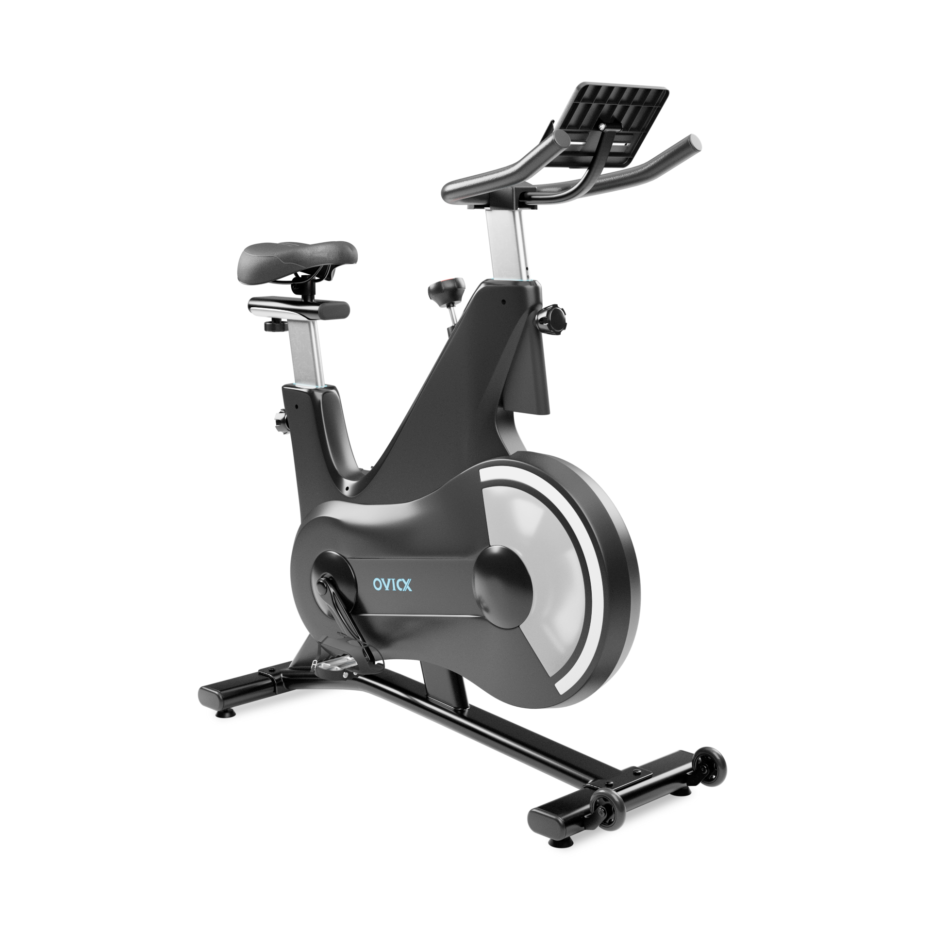 Профессиональный руль велотренажора с разными видами хвата и покрытием, устойчивым к скольжению и поту, гарантирует удобство и безопасность в процессе тренировки. Регулировка руля по высоте дает дополнительное удобство и разнообразие. Транспортировочные ролики помогают быстро и с легкостью перемещать тренажер в нужное для вас место, а подставка под планшет и держатель для бутылки сделают ваши тренировки ещё более комфортными.