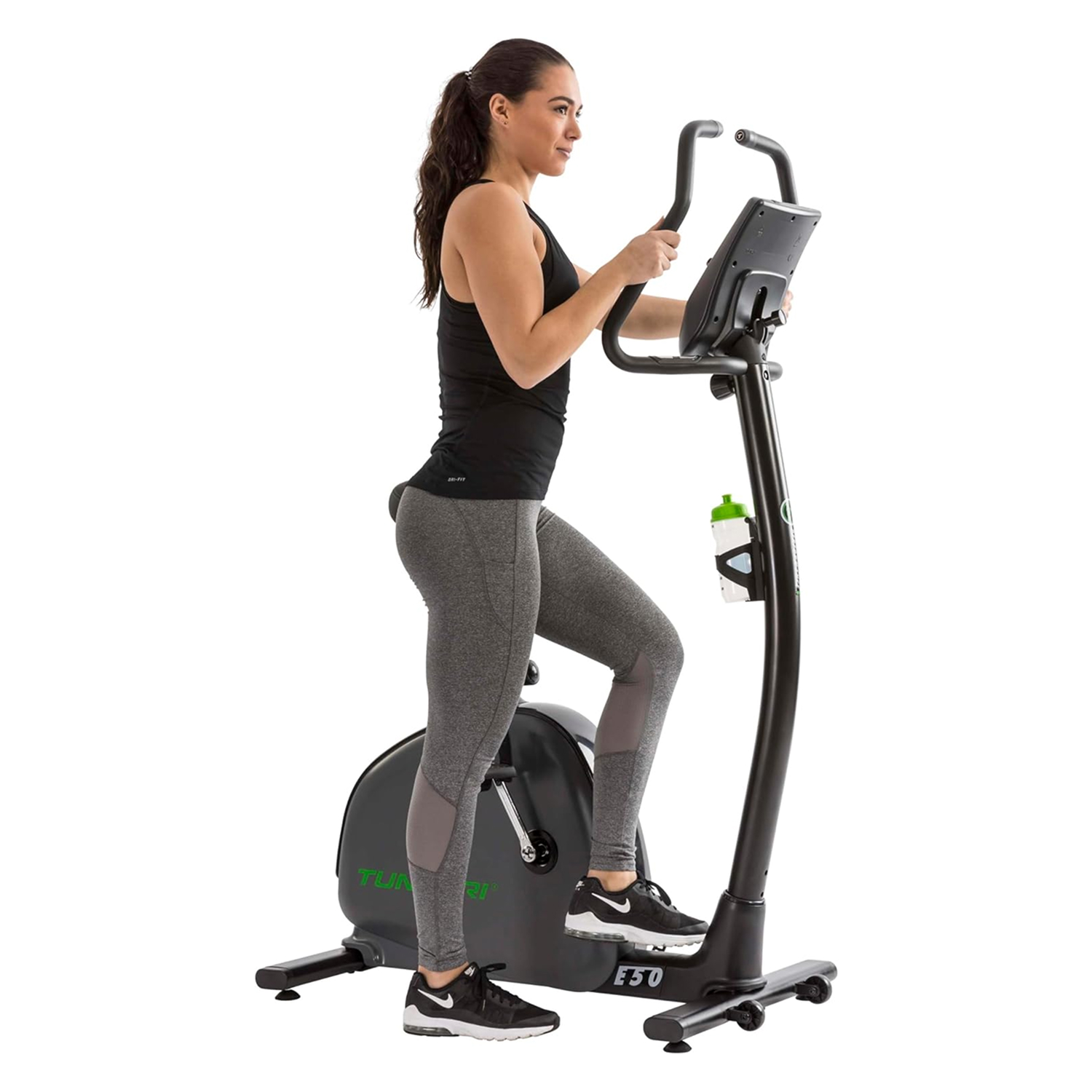 Транспортировочные ролики позволяют легко перемещать тренажер кардио, а компенсаторы неровности пола гарантируют устойчивость на любой поверхности. Есть держатель для бутылки и подставка для планшета.