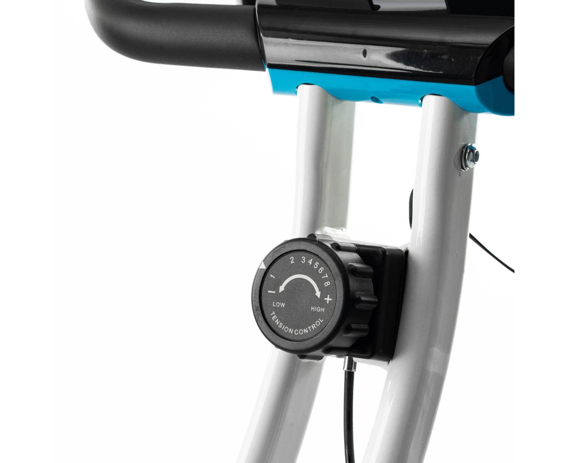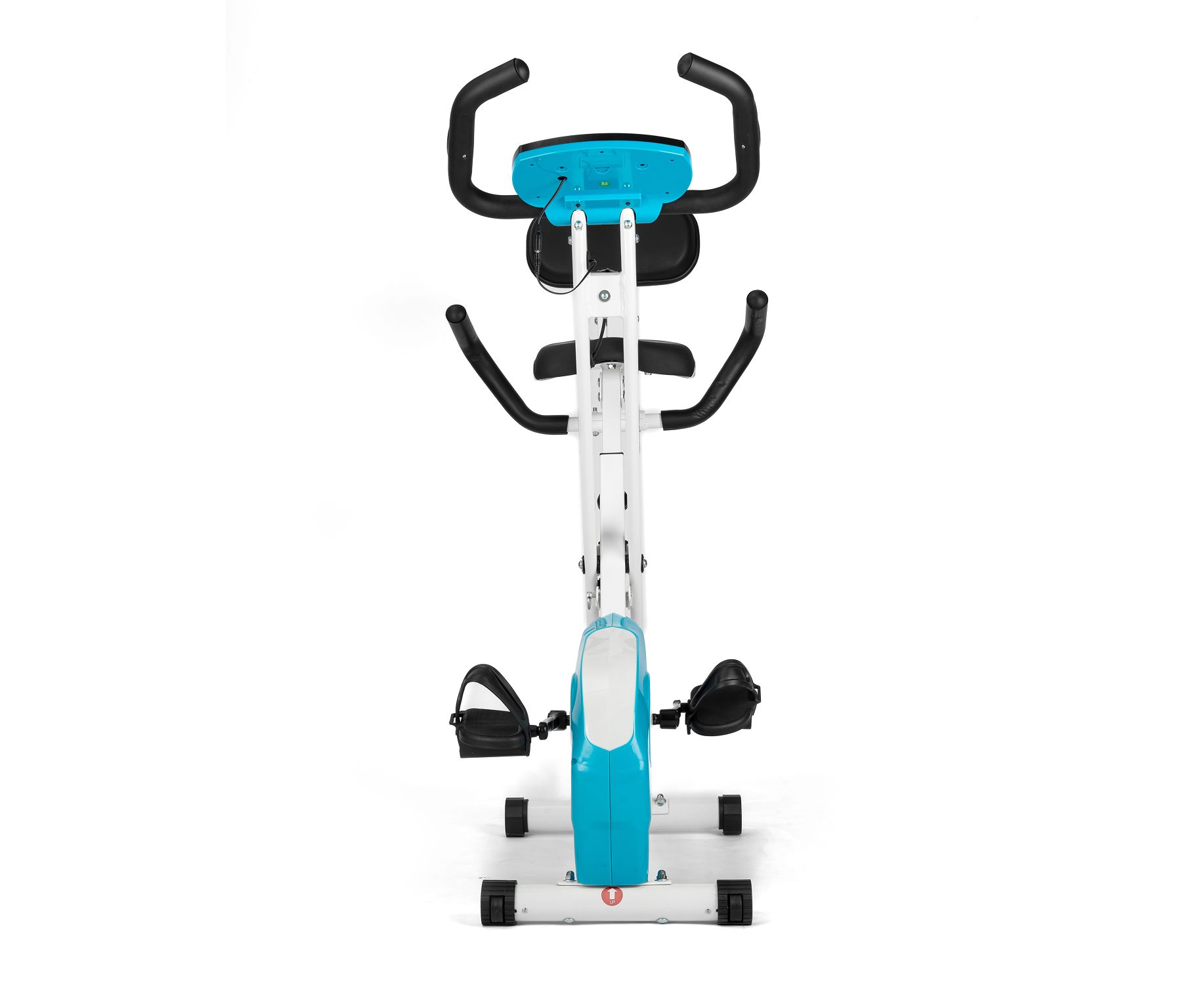 Этот велотренажер для дома выдерживает вес пользователя до 110 кг. Модель оснащена магнитной системой нагрузки с инерционным весом маховика 3 кг и механической регулировкой. Магнитная нагрузка отличается плавным ходом, равномерным распределением усилия и минимальным износом деталей, что делает тренировки комфортными и продлевает срок службы тренажёра. Модель предусматривает 8 уровней нагрузки, что позволяет подобрать оптимальную интенсивность как для начинающих, так и для более подготовленных пользователей.