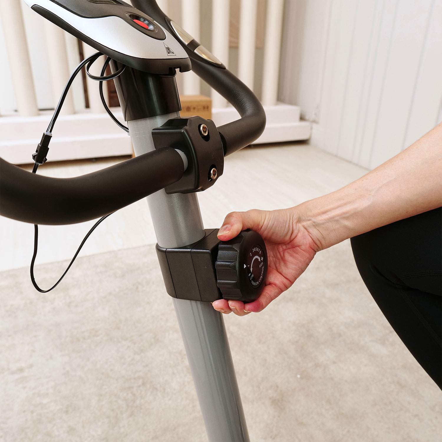 Механическая магнитная система изменения нагрузки и 8 уровней интенсивности позволяют подстроить тренировку под свои индивидуальные потребности и цели. Маховик весом 5 кг обеспечивает плавную и бесшумную работу тренажера, а также устойчивость во время упражнений.