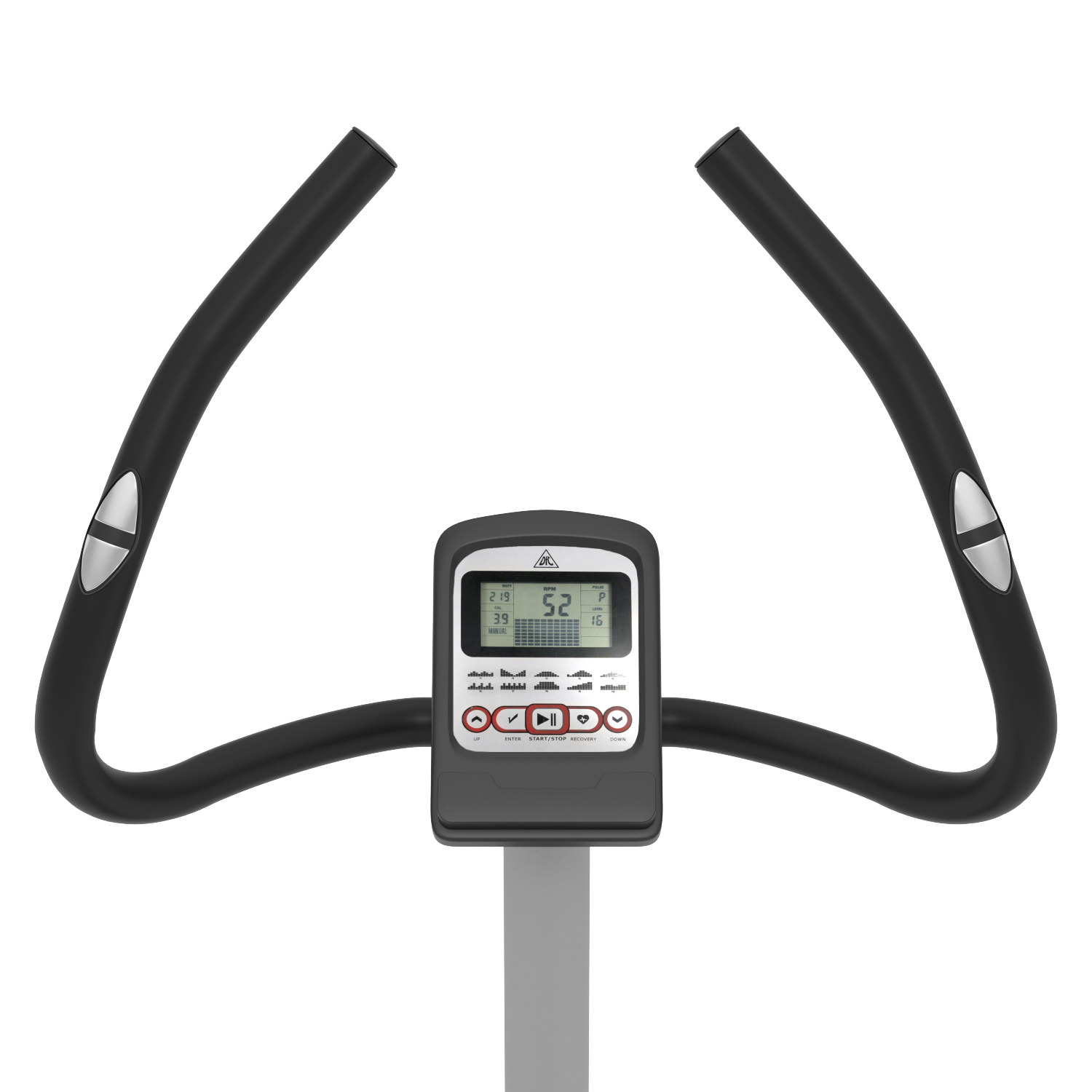 Монохромный LCD дисплей с синей подсветкой выводит основные параметры занятия. Также на передней консоли имеется подставка под телефон или планшет. Предусмотрена 21 программа тренировки.