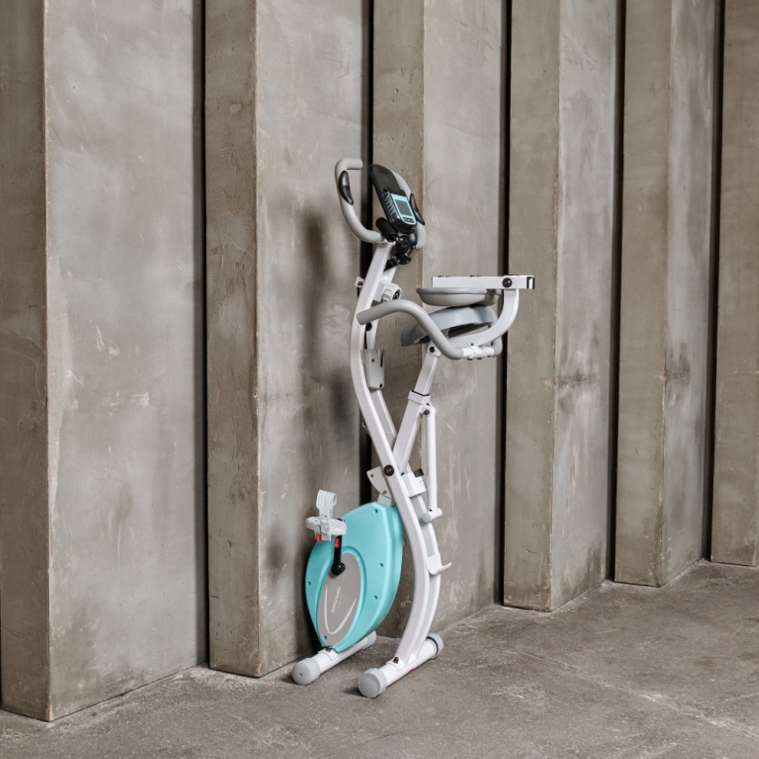 Благодаря складной конструкции, велотренажер легко хранить и переносить. Сиденье оборудовано спинкой и поручнями для дополнительного комфорта пользователя. В комплекте идет карман для хранения гаджетов.