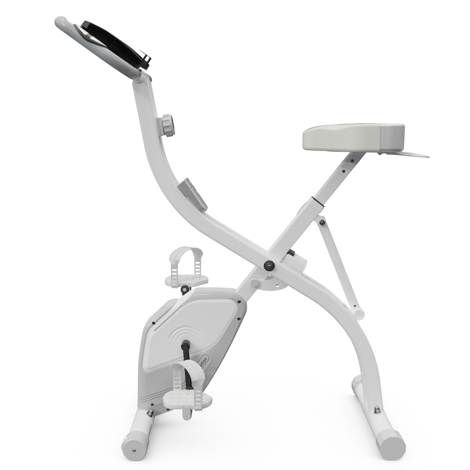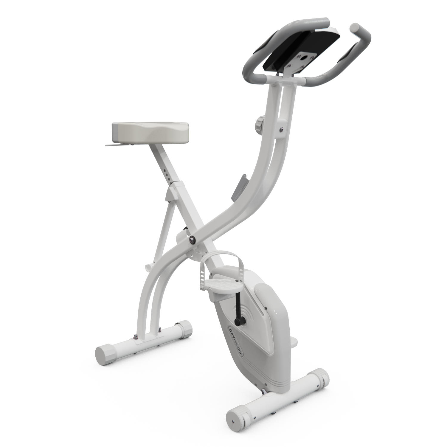 Велотренажер X-Bike DFC DavCreator в бело-сером цвете подходит для пользователей весом до 110 килограмм. Он имеет складную конструкцию, что делает его идеальным для небольших помещений или для тех, кто хочет хранить его в компактном виде.