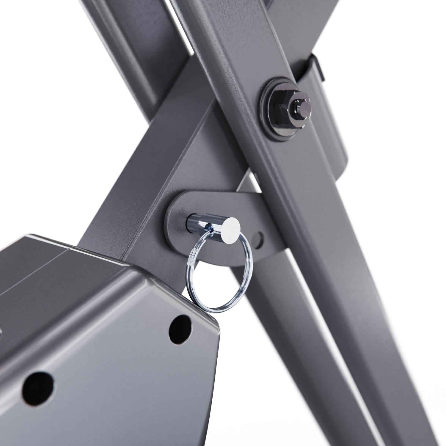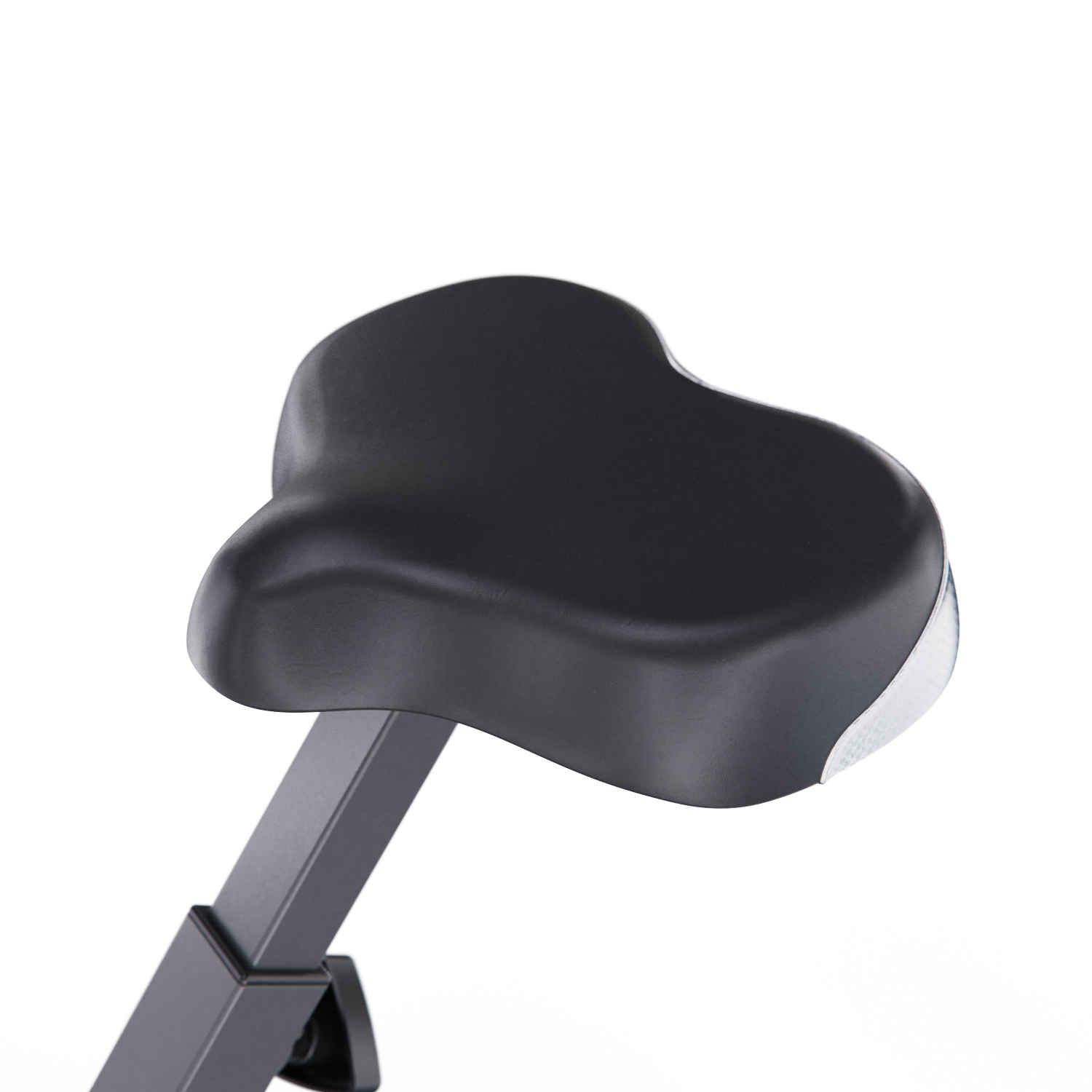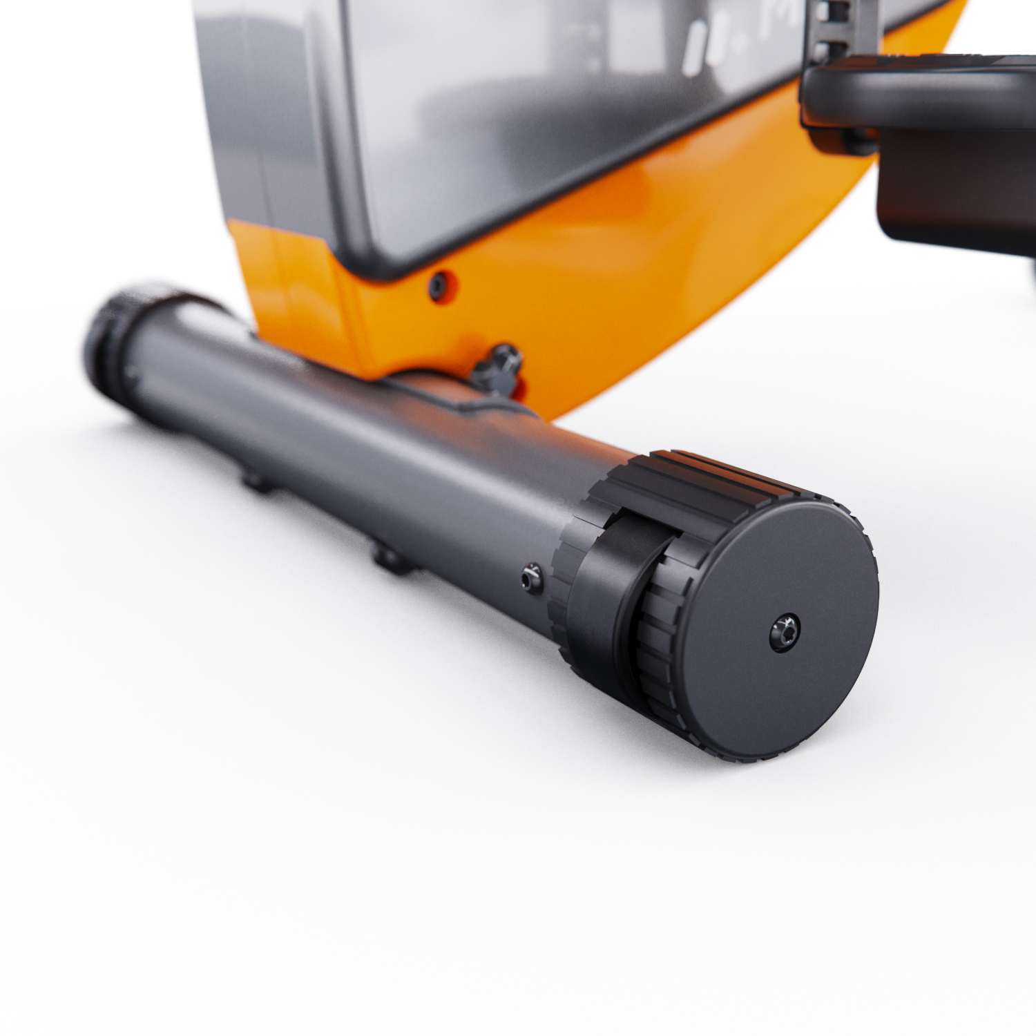 Для удобства перемещения предусмотрены транспортировочные ролики, а компенсаторы неровности пола обеспечивают стабильность тренажёра на любой поверхности. Максимальный вес пользователя — 100 кг, что делает этот велотренажёр универсальным.