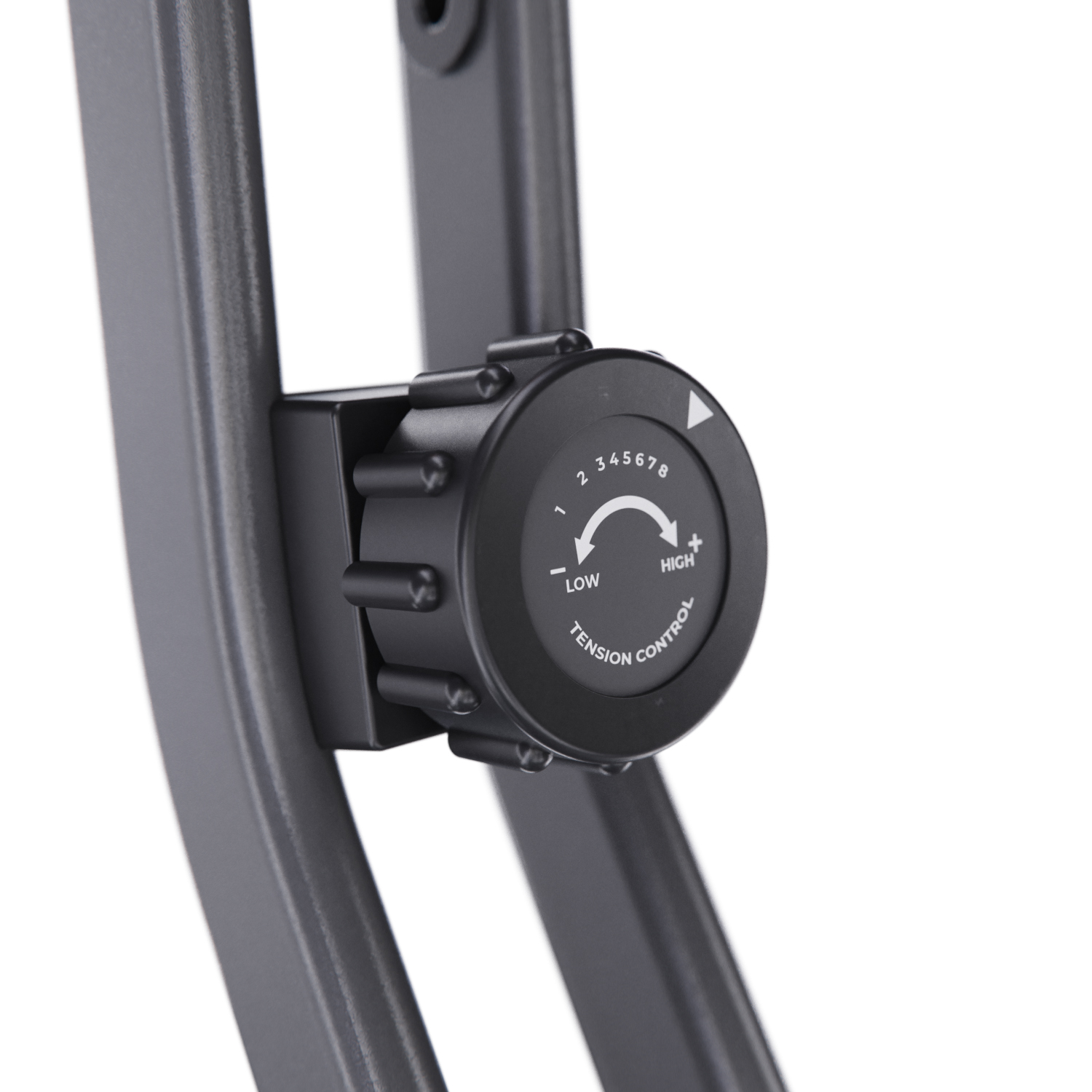 Инерционный вес маховика составляет 3 кг, а количество уровней нагрузки — 8. Регулировка нагрузки механическая, что обеспечивает удобство использования. Система нагрузки магнитная, она создаёт плавный и бесшумный ход.