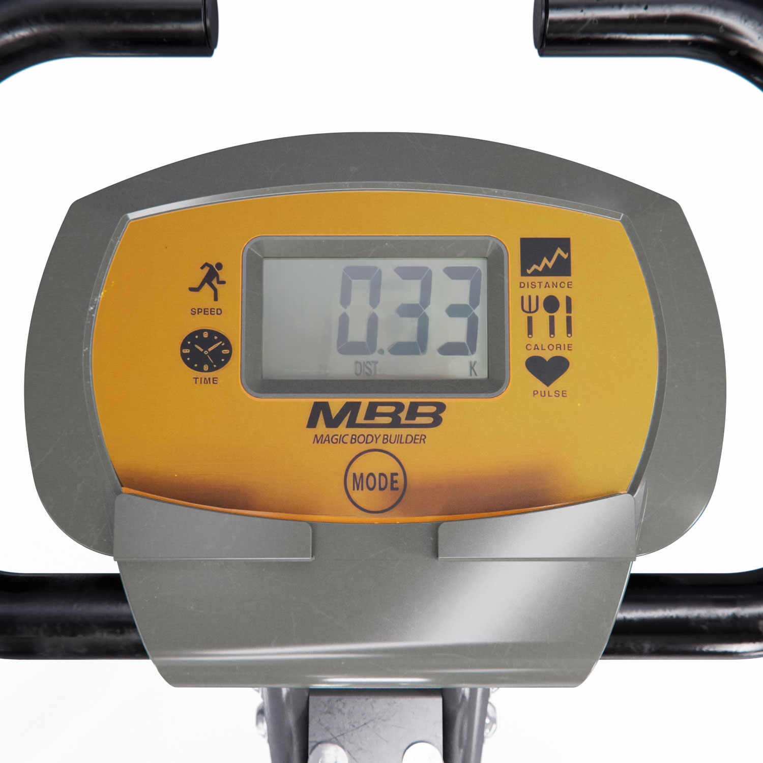 ЖК-дисплей отображает время, скорость, дистанцию, сожженные калории и ваш пульс. Для питания консоли требуются две батареи типа “AA” или “AAA”. Батарейки в комплект не входят.