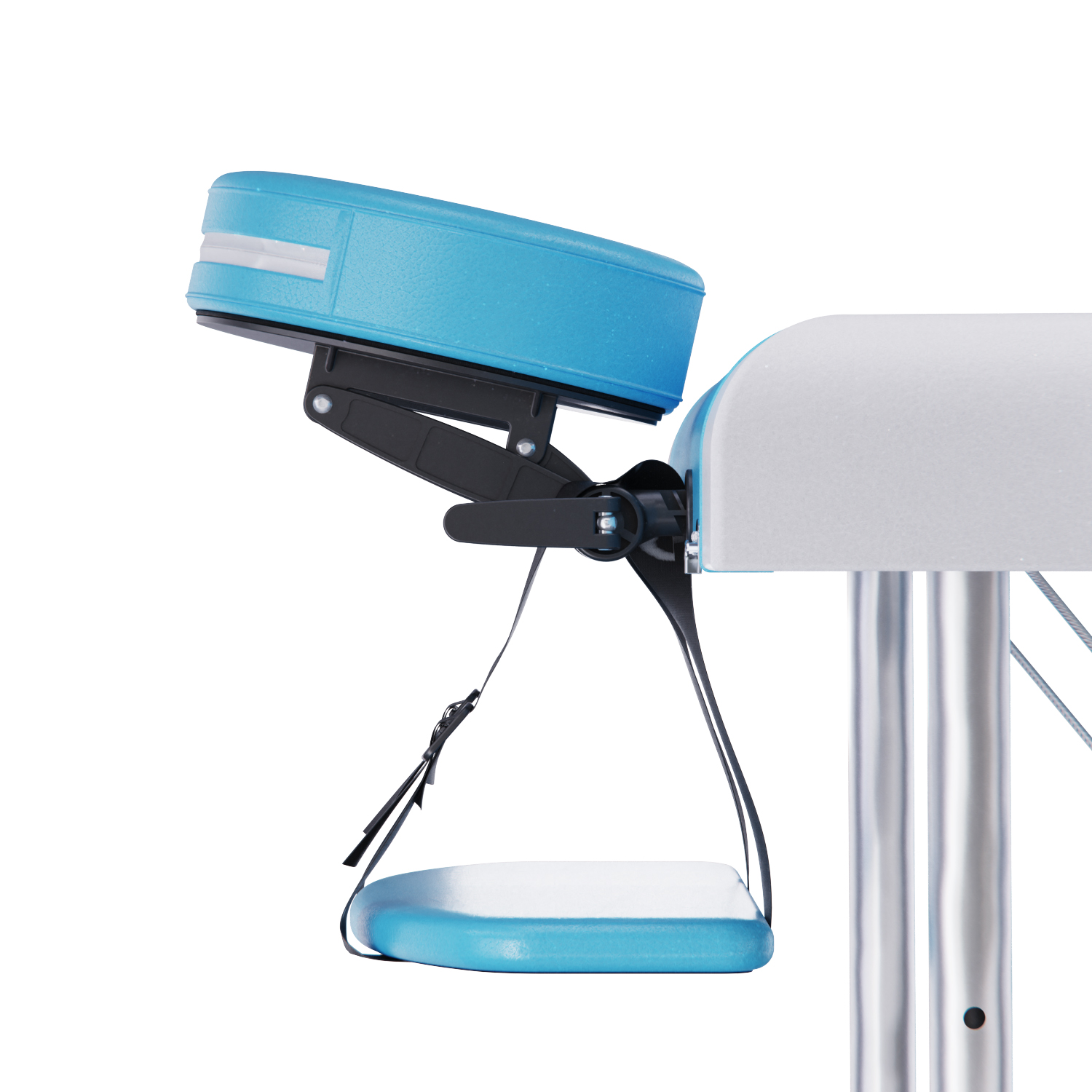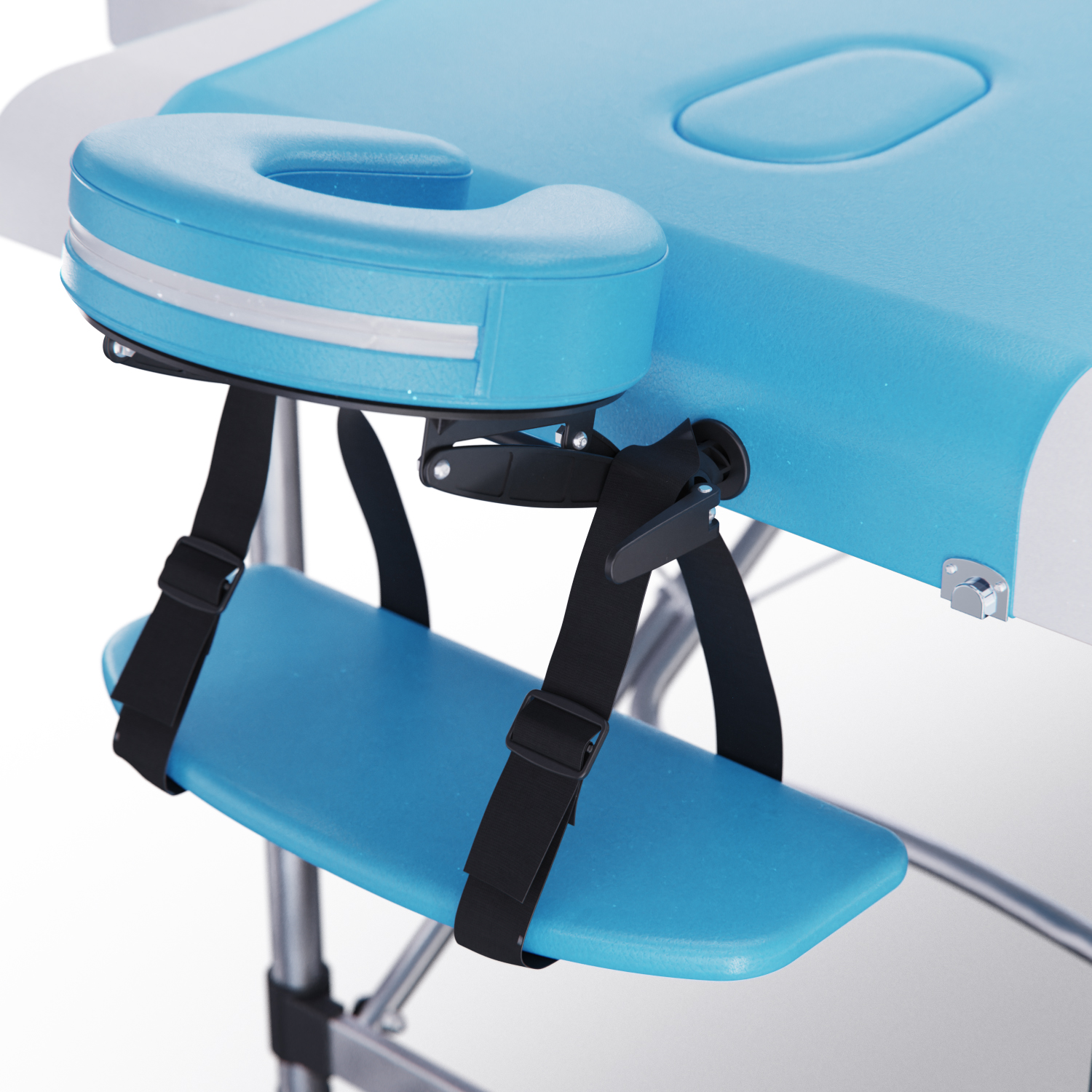 Система регулировки высоты стола в 11 положениях гарантирует удобство работы для мастеров и массажистов любого роста: диапазон регулировки — от 63 до 84 см. Конструкция продумана таким образом, чтобы удобно было и пользователям, мастерам. В комплект входят фронтальный и боковые подлокотники для удобного расположения рук, лёжа на спине и животе. Углубление для лица (люверс) закрывается специальной заглушкой, что также удобно для комфортного расположения пациента. Имеется съёмный подголовник, предназначенный преимущественно для людей высокого роста. Мастерам понравится удобная сумка-переноска в виде чехла.