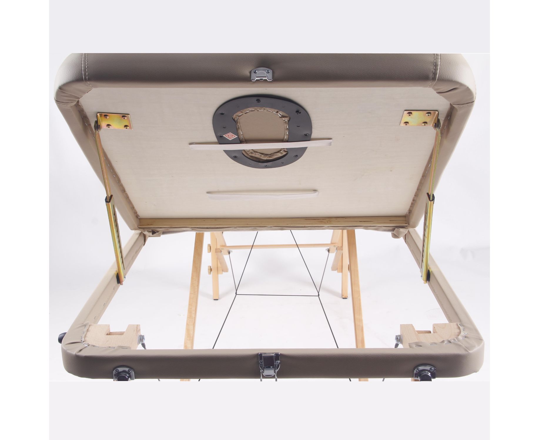 Массажный стол выполнен в цвете Camel — это тёплый и естественный оттенок, который придаёт изделию стильный и гармонично вписывается в интерьер дома или массажного кабинета.