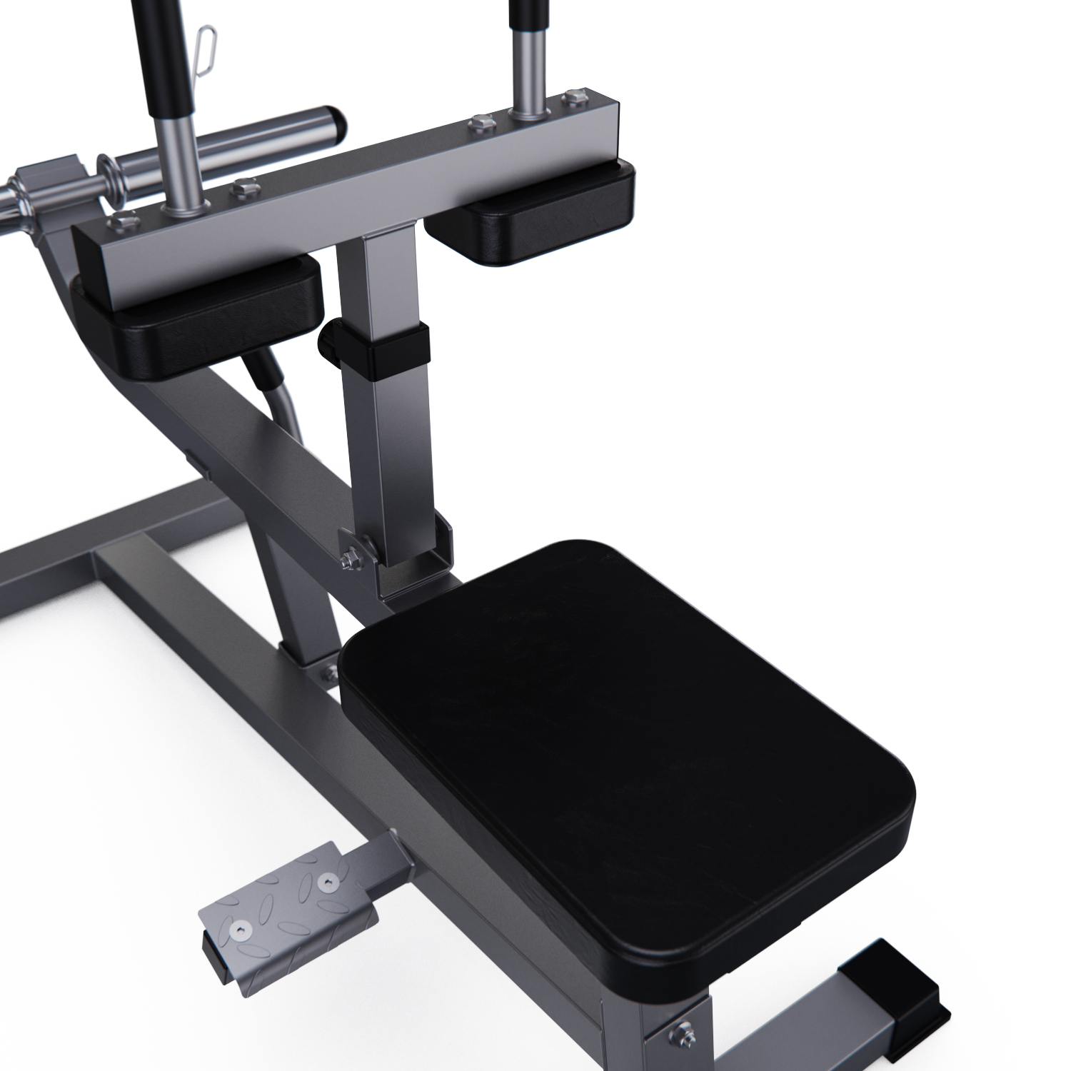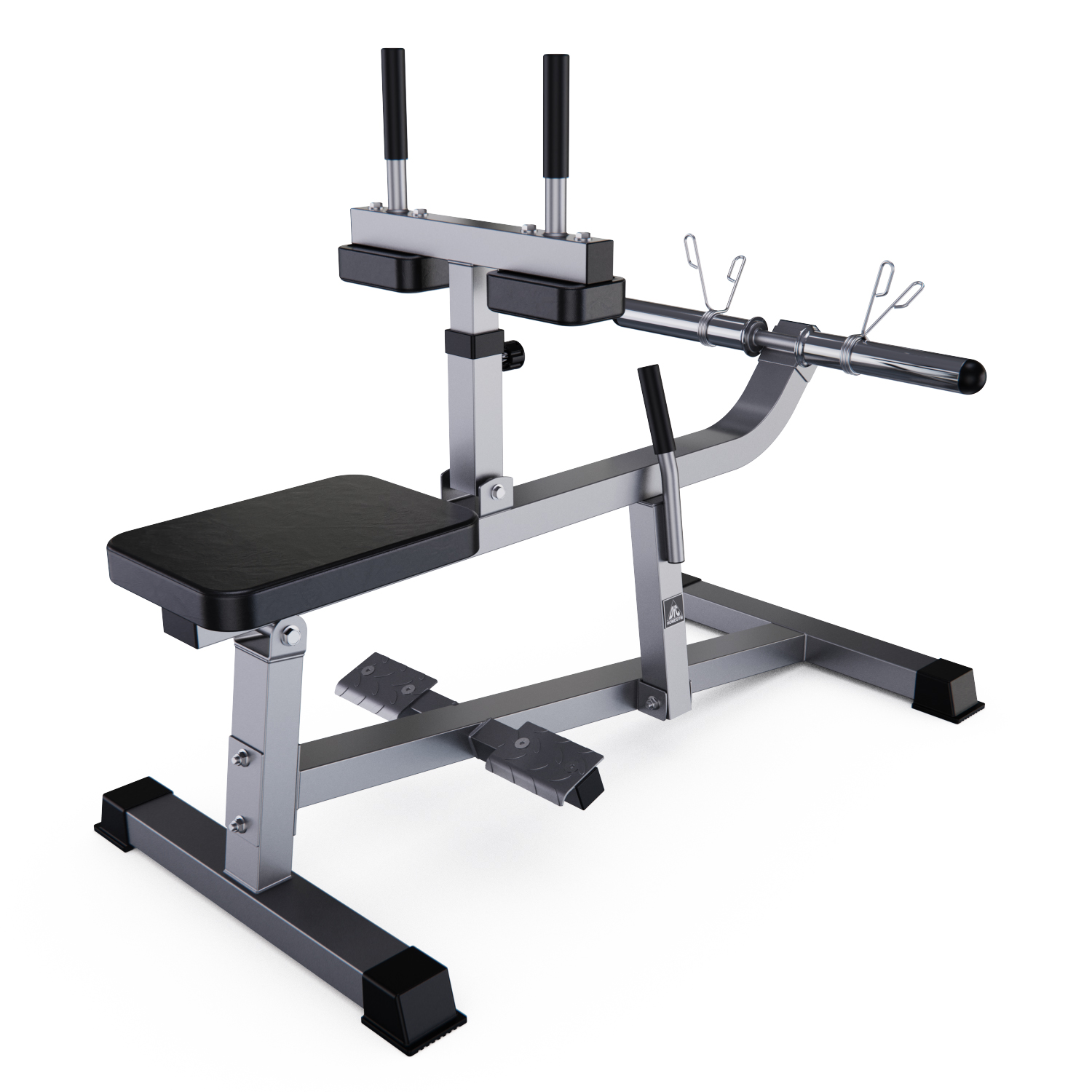 Тренажёр DFC D100866 предназначен для развития икроножных мышц. Перед началом занятий снимите перекладину с весами при помощи ручки справа. Отталкиваясь стопами и держась за поручни, приподнимайте колени, не отрывая стопы от платформ.
