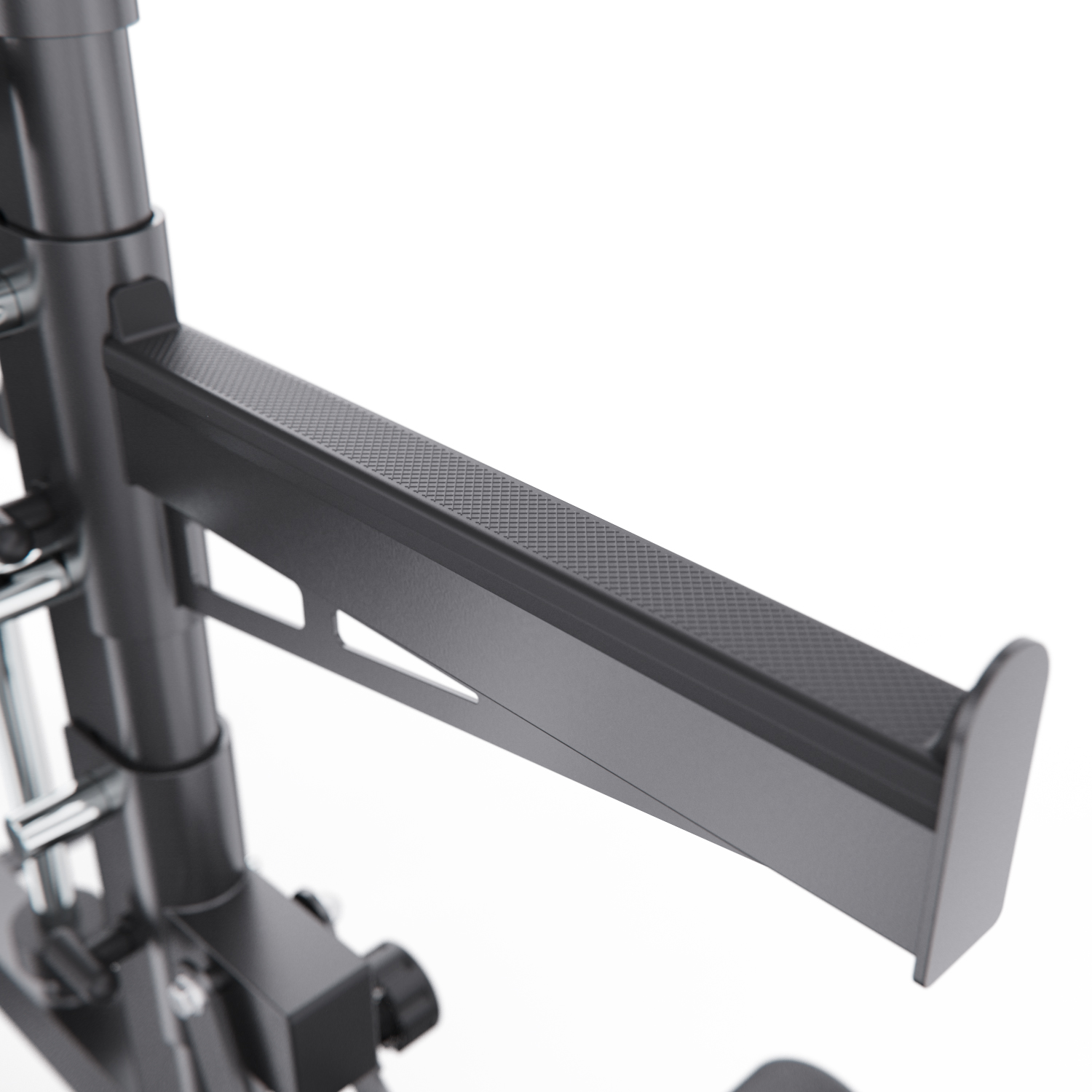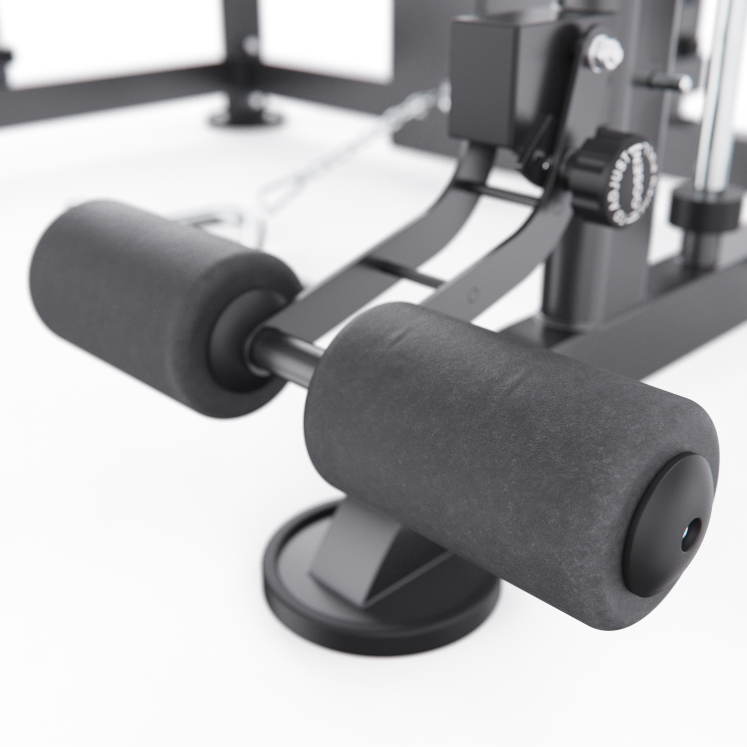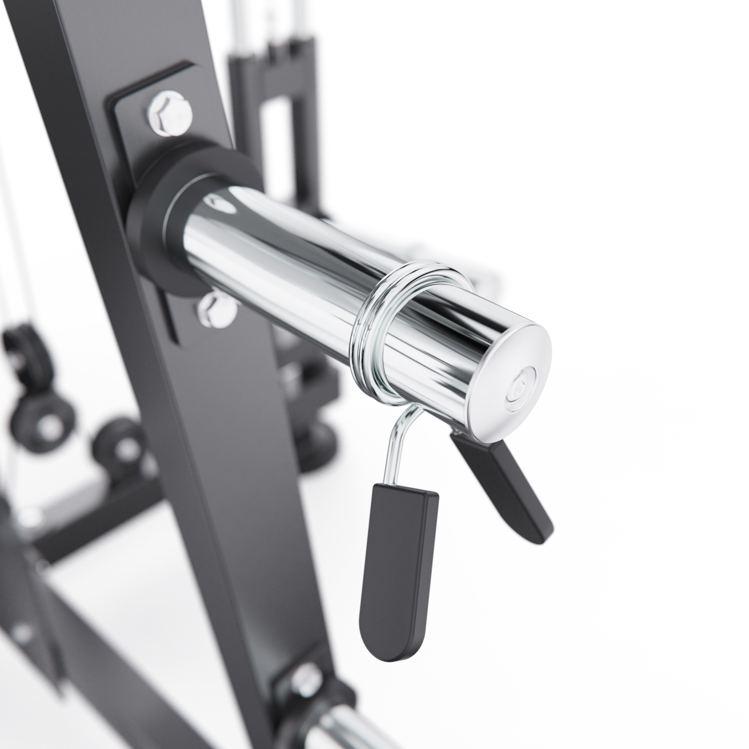 Каркас мультистанции изготовлен из высокопрочной стали (профиль 50 х 100 х 2 мм и 50 х 70 х 1,5 мм), что обеспечивает долговечность и устойчивость конструкции даже при максимальных нагрузках. Прочная спинка 83,5 х 33 х 5,5 см обеспечивает комфорт во время выполнения упражнений. Компактные габариты для своего класса (216,5 х 186 х 213,5 см) позволяют использовать мультистанцию даже в ограниченном пространстве.