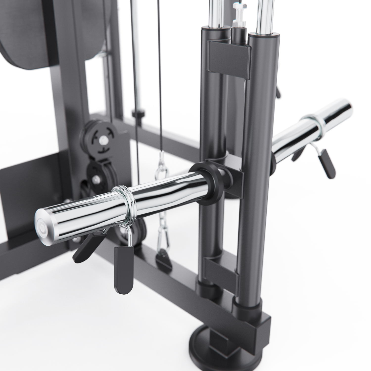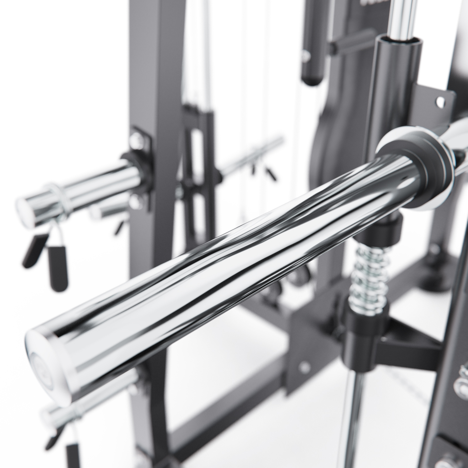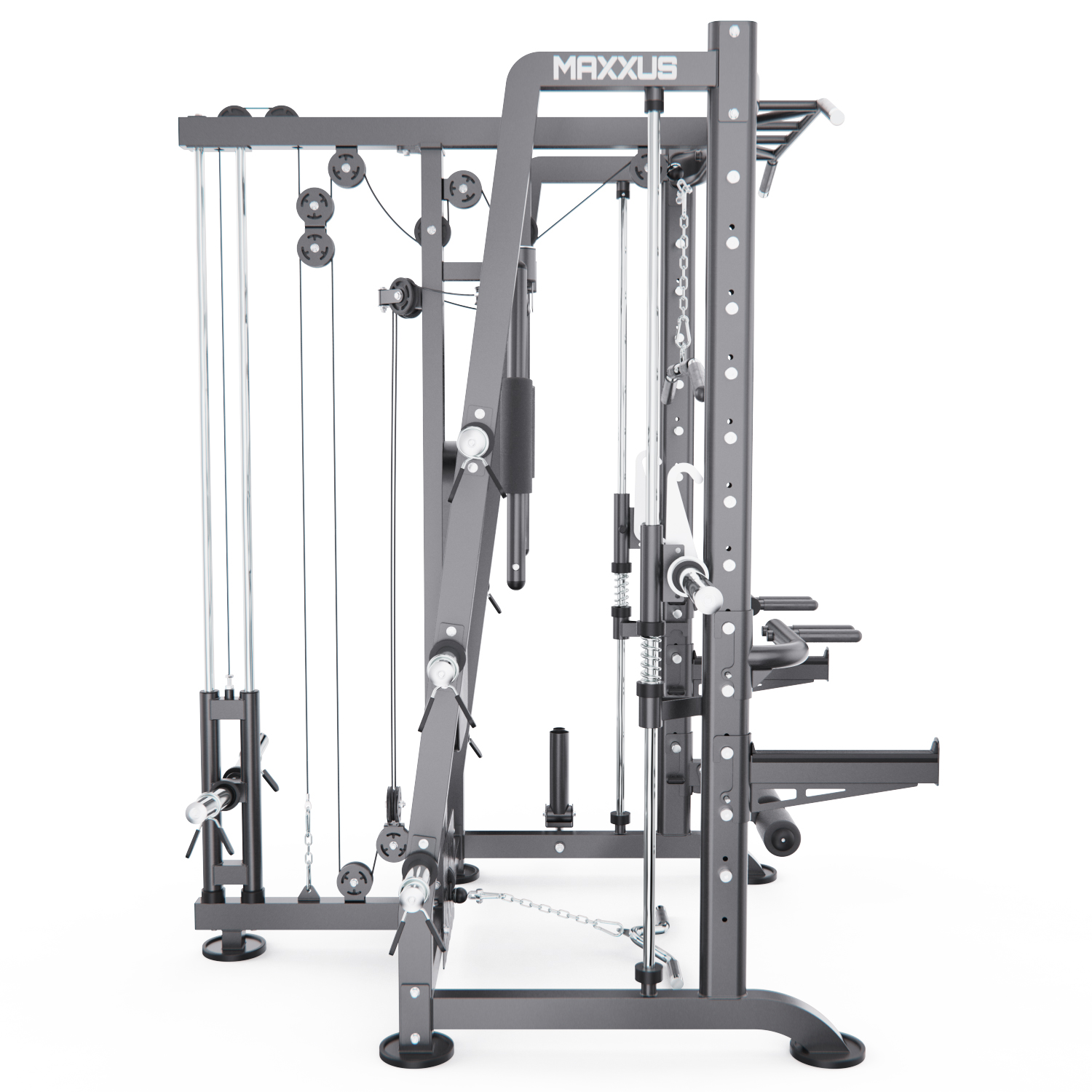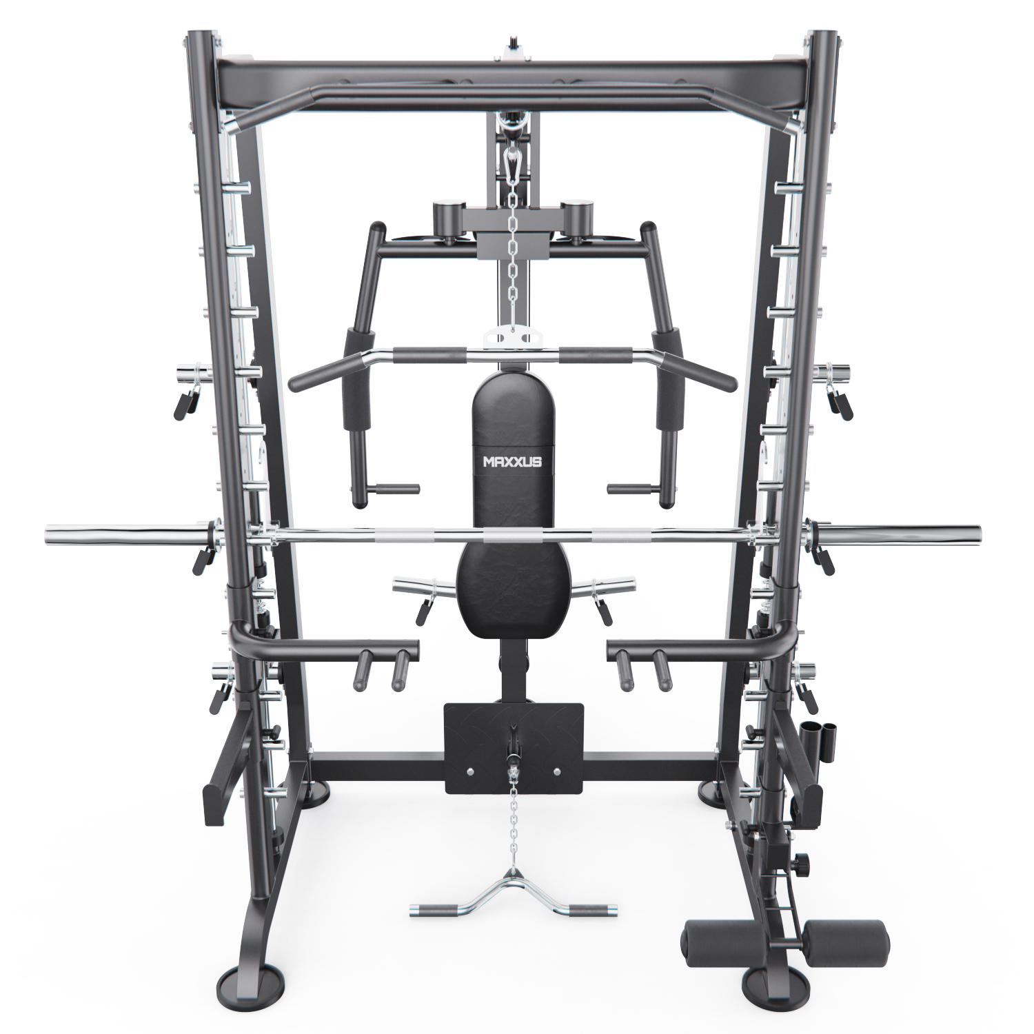 Машина Смита MAXXUS GSMX-600019 — полноценная замена спортзалу у вас дома! Она сочетает в себе машину Смита, силовую станцию, мультипозиционный турник и функциональную раму, позволяя прорабатывать все группы мышц в одном комплексе.