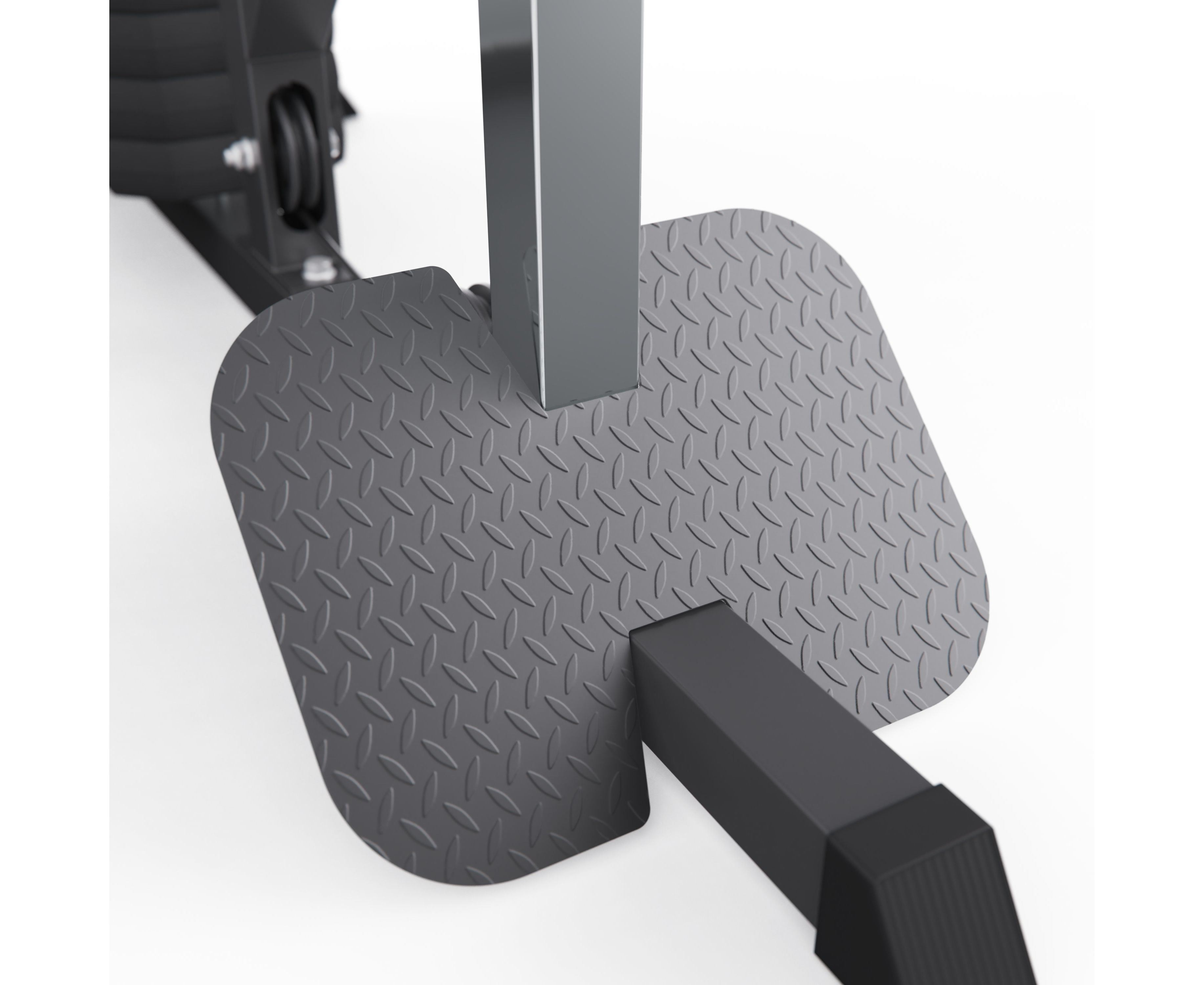 Конструкция объединяет прочие элементы рамы, балки, стойки, рукояти, держатели и предохранители, формируя единую многофункциональную и надёжную систему. Рама выполнена из стального профиля 75 х 50 х 1,5 мм, что обеспечивает высокую жёсткость и устойчивость конструкции при работе с большими весами и гарантирует безопасные и разнообразные тренировки.