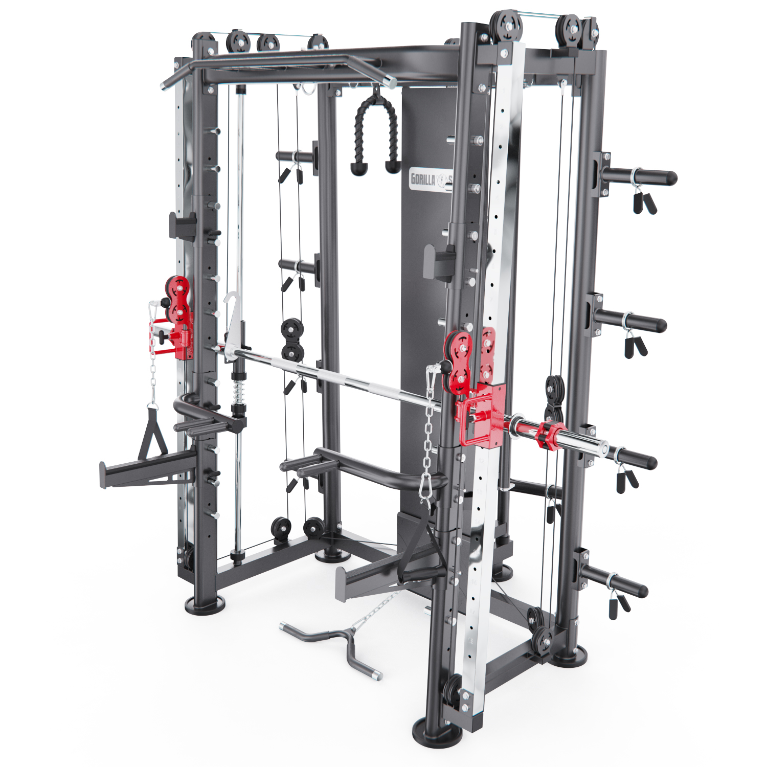 Мультистанция, машина Смита DFC Gorilla Sports 100822 — это профессиональный тренажёр для силовых тренировок в домашних условиях. Благодаря множеству функций и высокой максимальной нагрузке, он подходит как для начинающих, так и для опытных спортсменов, желающих развивать мышцы всего тела.