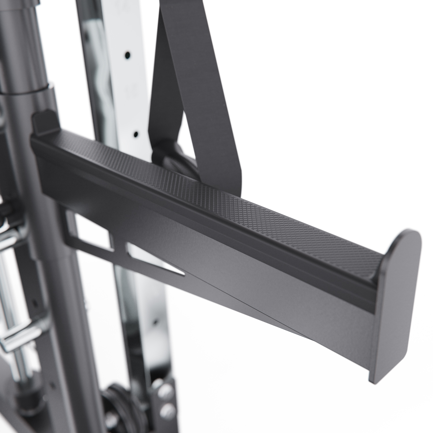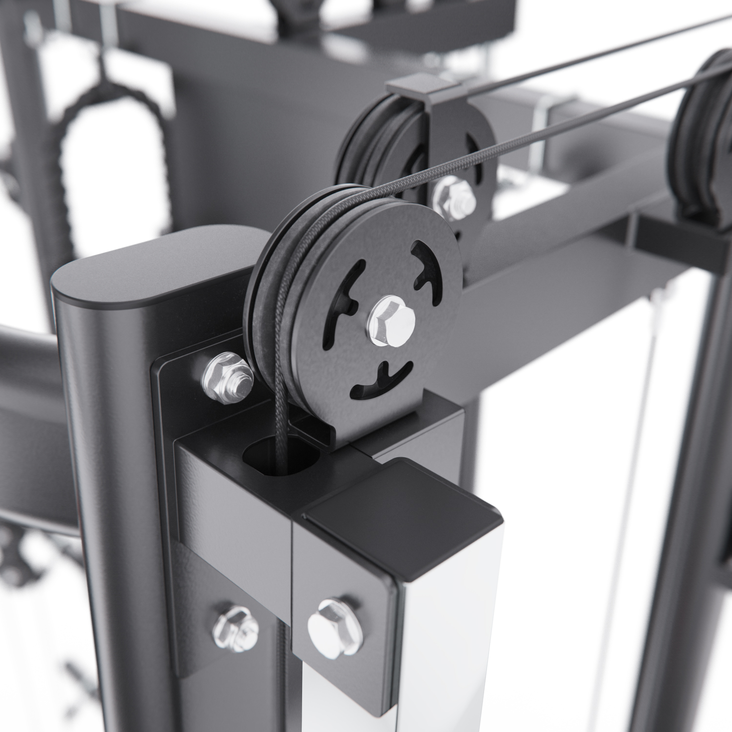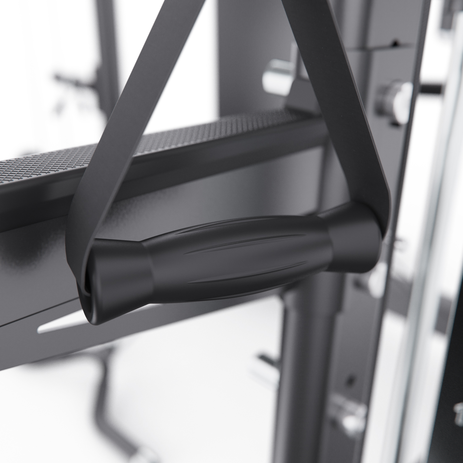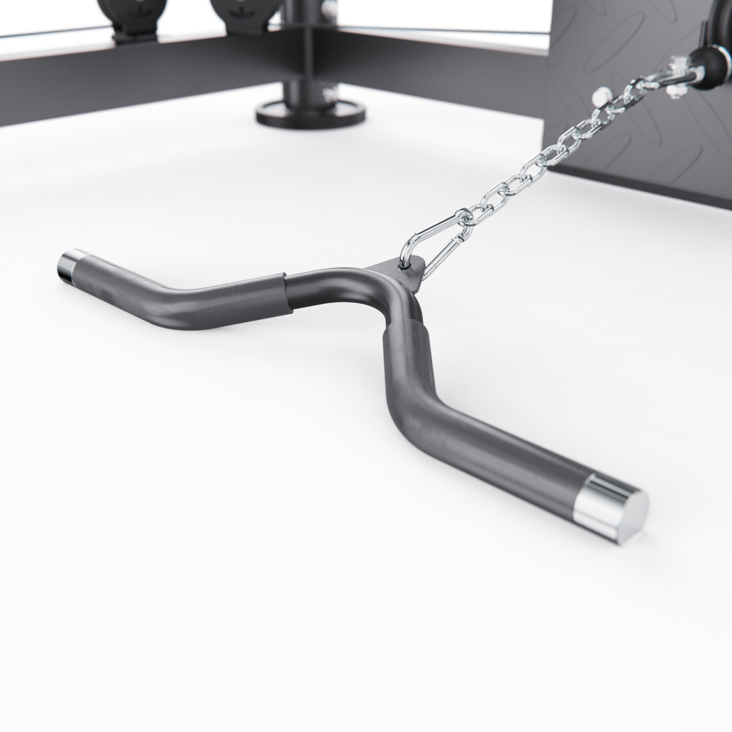 В комплект входят: гриф весом 10,6 кг, мультипозиционный турник, гибкий трос для бицепса, ручка для тяги снизу, две универсальные ручки на цепях для верхней и нижней тяги, а также 8 пружинных замков для хранения дисков. Вы сможете выполнять десятки упражнений — от жима лёжа и приседаний до тяги сверху, снизу и работы с собственным весом.