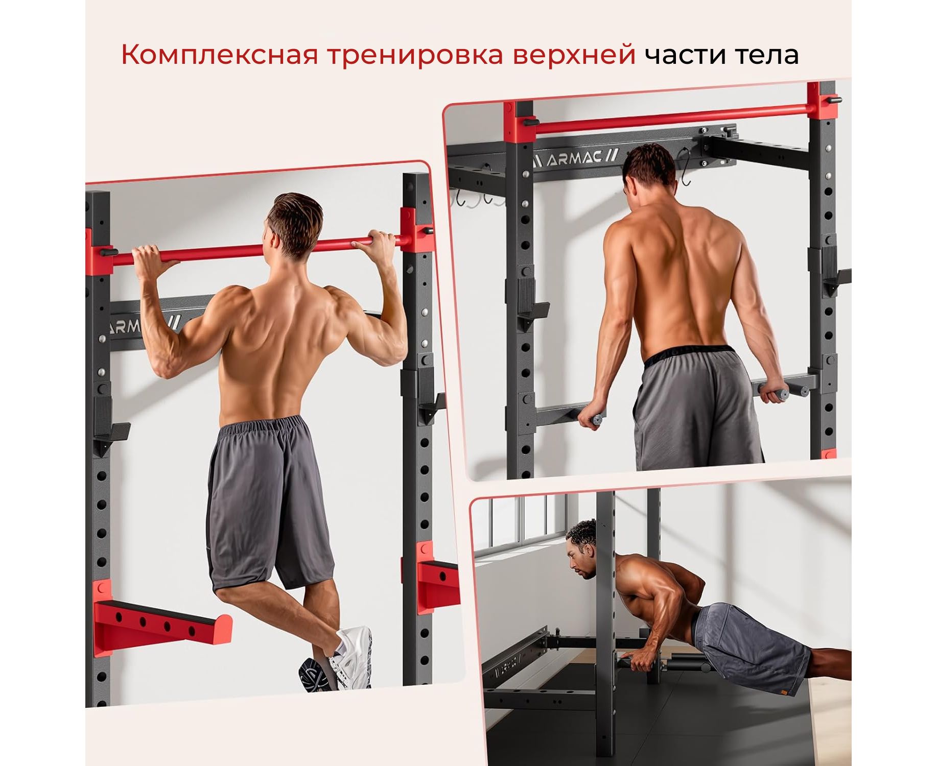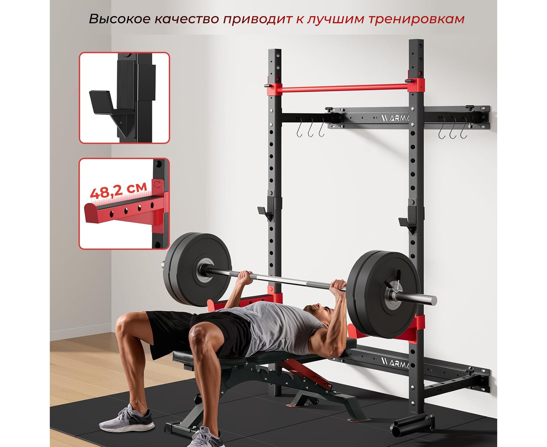 Максимальный вес пользователя составляет до 120 кг, что обеспечивает комфортную и безопасную эксплуатацию для людей с разным уровнем подготовки. Рама имеет 18 регулировочных отверстий, что позволяет адаптировать высоту перекладин под различные упражнения и рост пользователя. Турник и перекладины выдерживают значительные нагрузки, а конструкция рамы прочная и надежная, обеспечивая стабильность во время занятий.