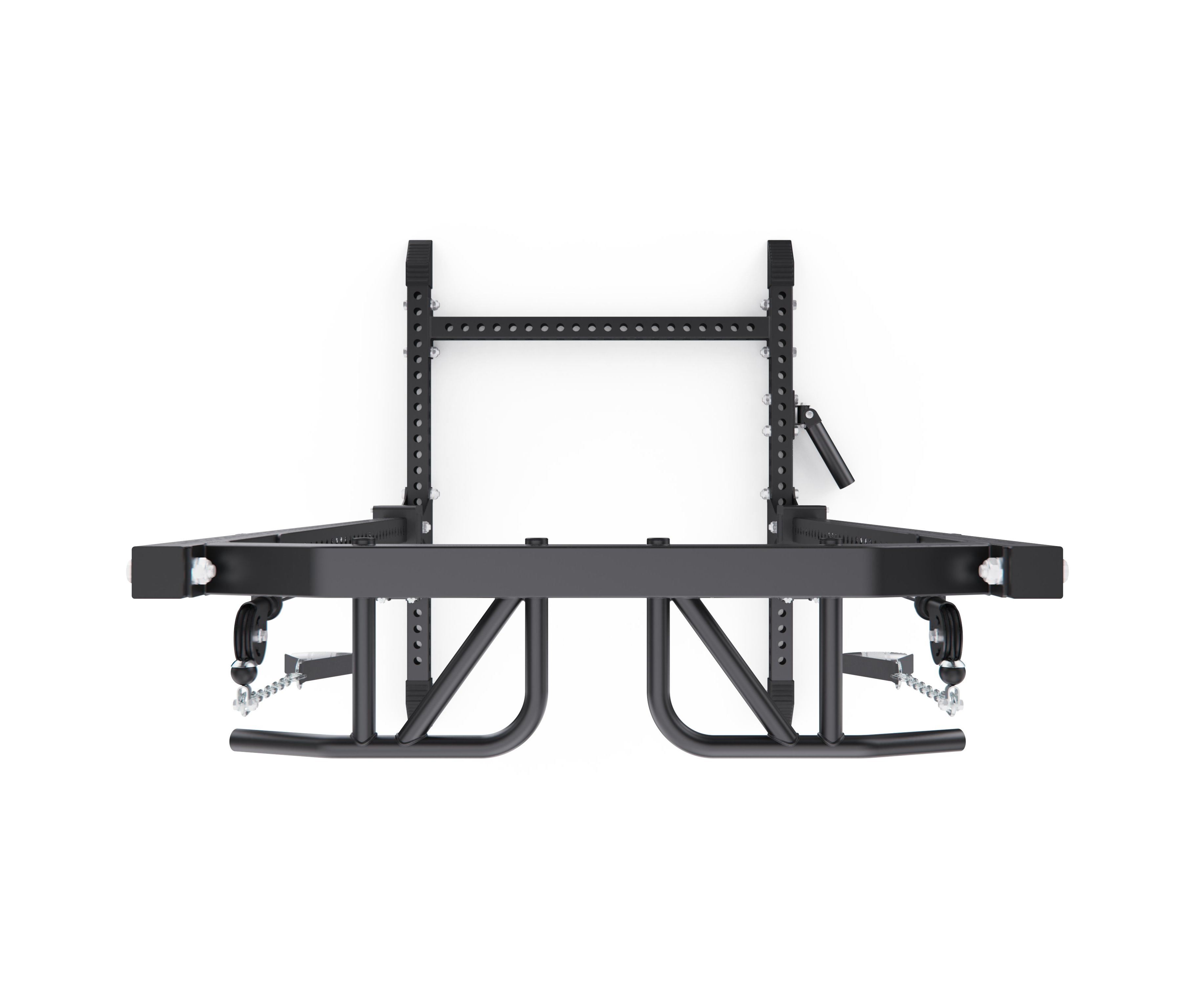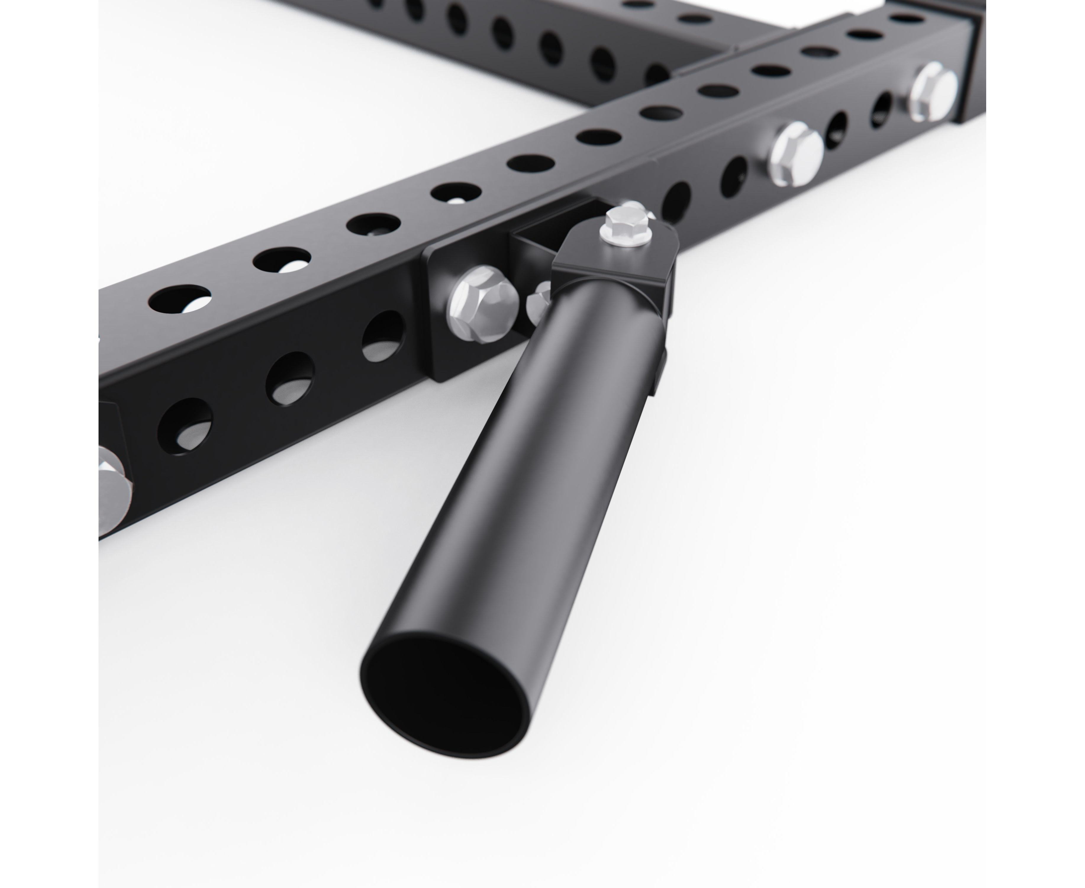 Дополнительно конструкция оснащена многопозиционным турником с несколькими вариантами хвата, что дает возможность выполнять подтягивания различной сложности, от узкого до широкого хвата, а также упражнения для тренировки корпуса и мышц спины, увеличивая универсальность и функциональность тренажера.