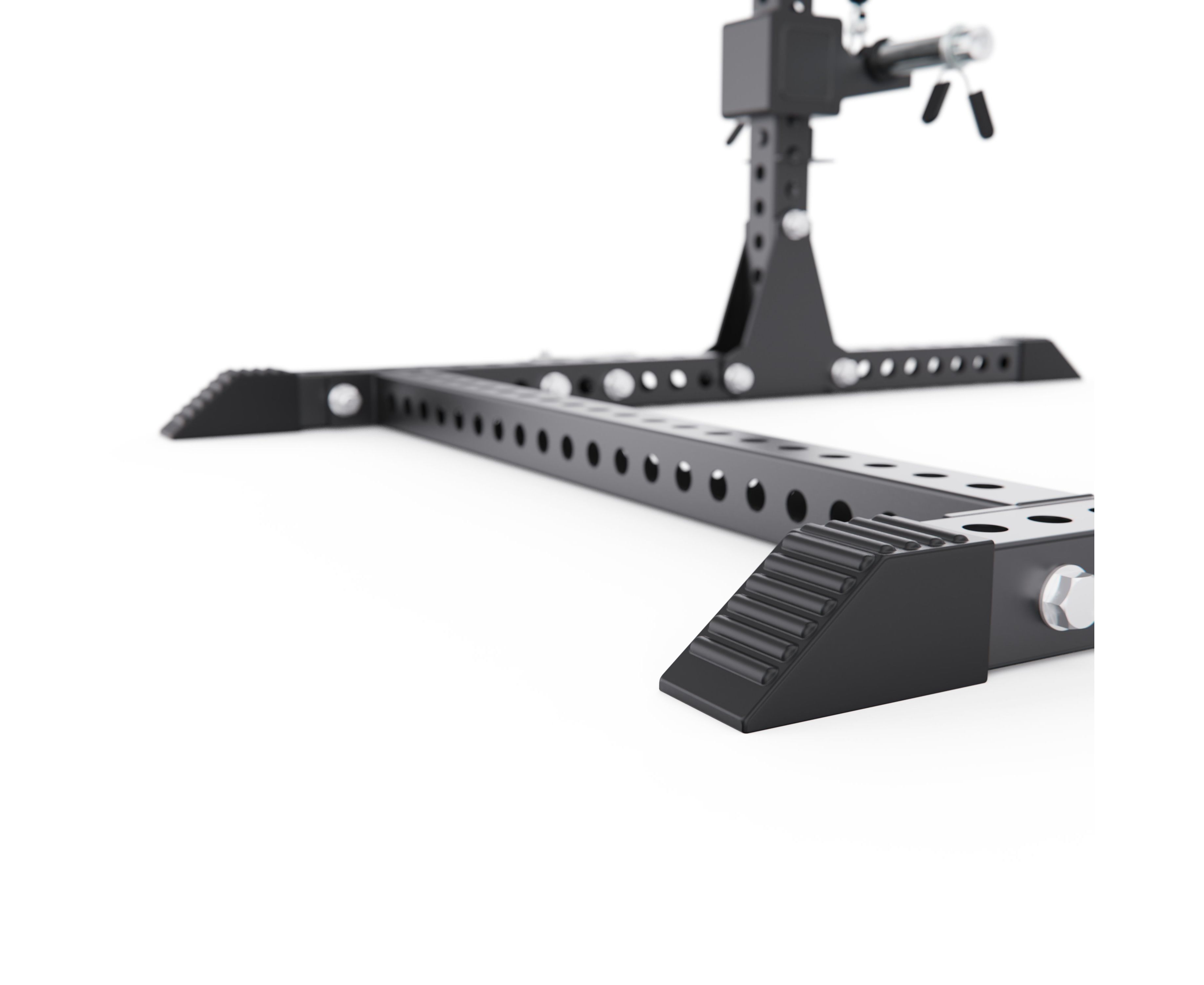 Конструкция рассчитана на максимальную нагрузку до 250 кг, что позволяет безопасно выполнять базовые и изолирующие упражнения. Рама оснащена 4 посадочными местами с посадочным диаметром 28 и 50 мм, обеспечивая совместимость с различными типами весовых дисков.