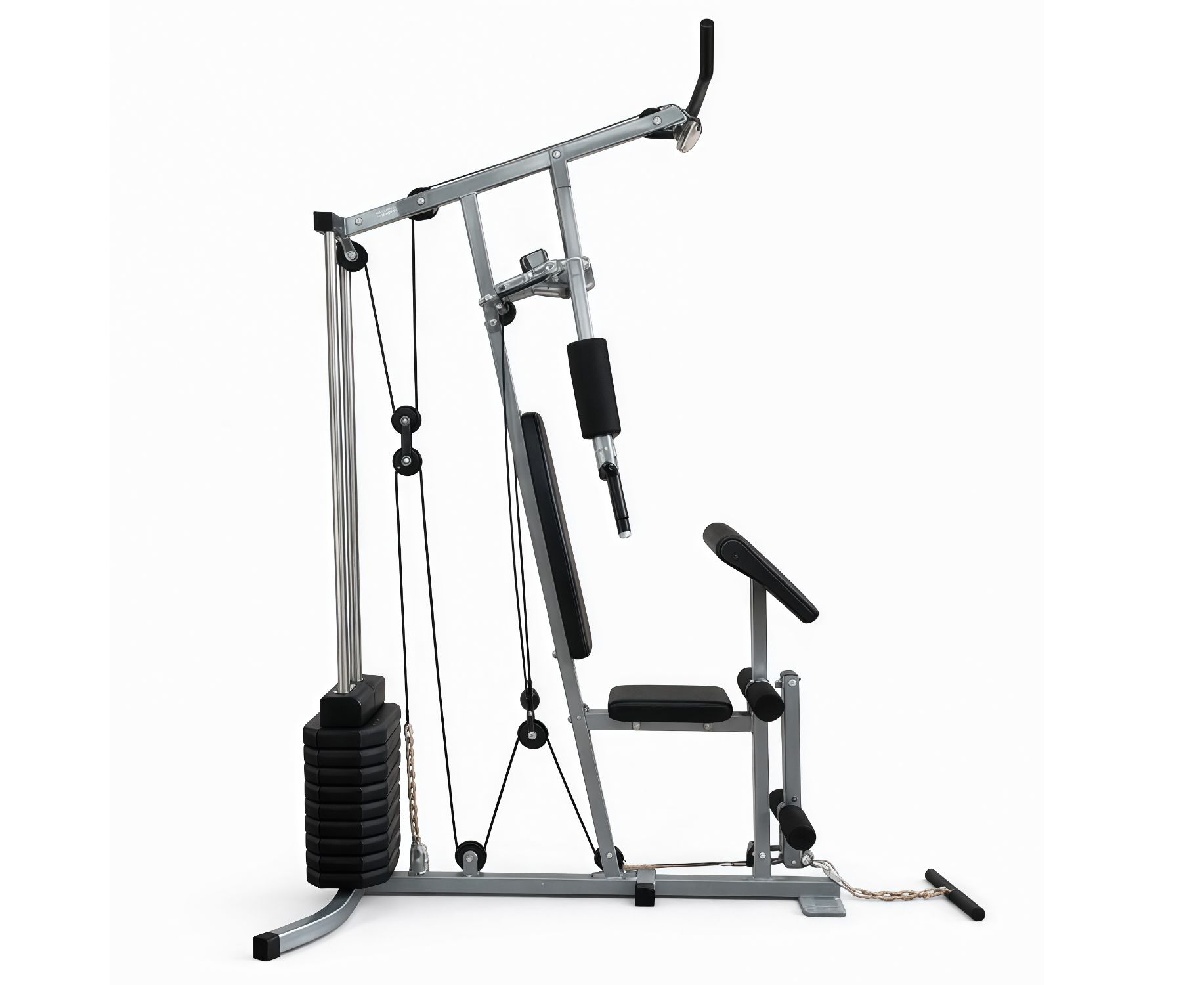 В конструкции предусмотрено 9 свободных блоков и 1 встроенный весовой блок весом 46 кг. Такая система позволяет гибко настраивать нагрузку под уровень подготовки пользователя — от начинающего до уверенного спортсмена. Силовой комплекс удобно использовать как для набора мышечной массы, так и для поддержания формы.
