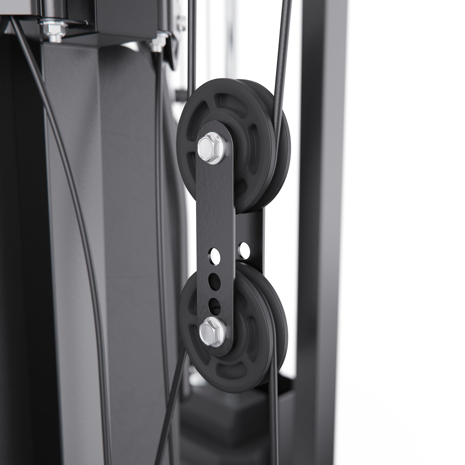 В конструкции предусмотрено 24 свободных блока и 2 встроенных весовых блока весом по 72 кг. Такая система позволяет гибко настраивать нагрузку по уровню физической подготовки — от начинающего до уверенного спортсмена. Силовой комплекс удобно использовать как для набора мышечной массы, так и для поддержания формы.