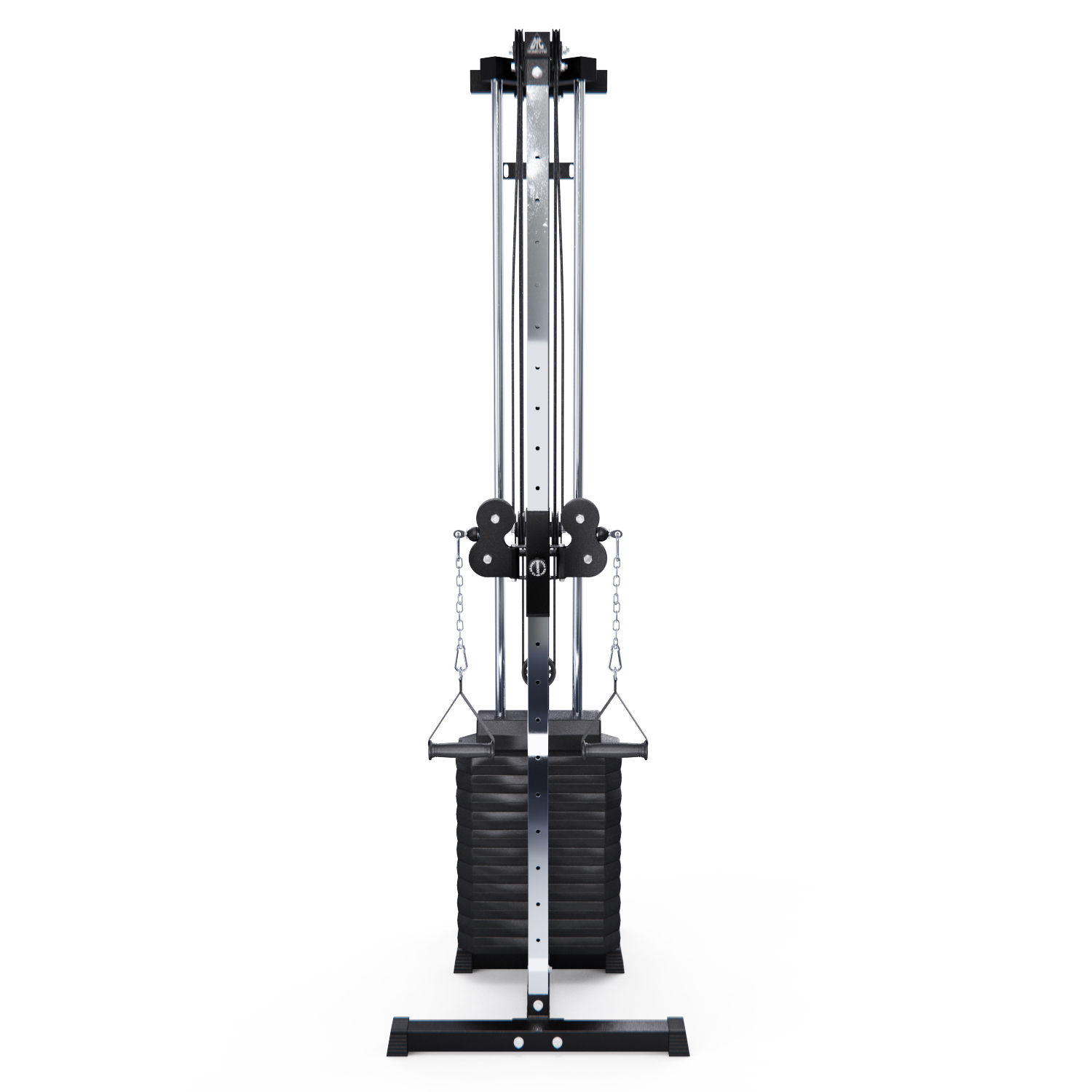 Многофункциональный силовой тренажер (кроссовер) со встроенным весовым стеком общей массой 66 кг.