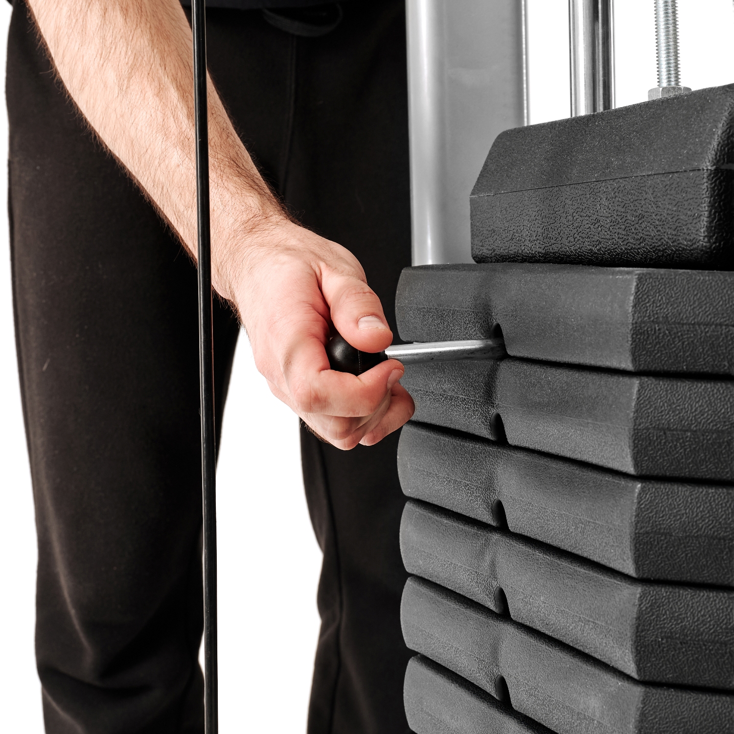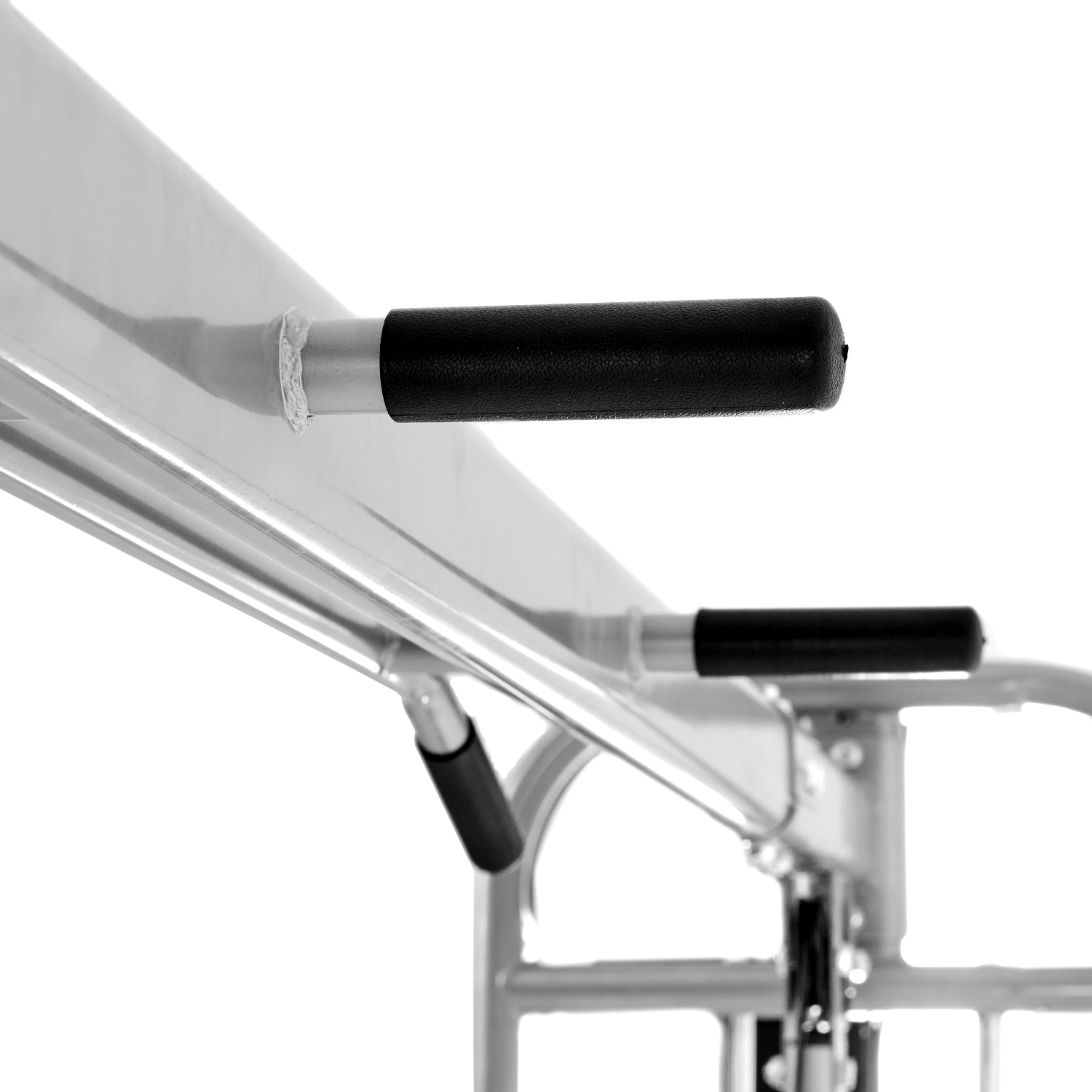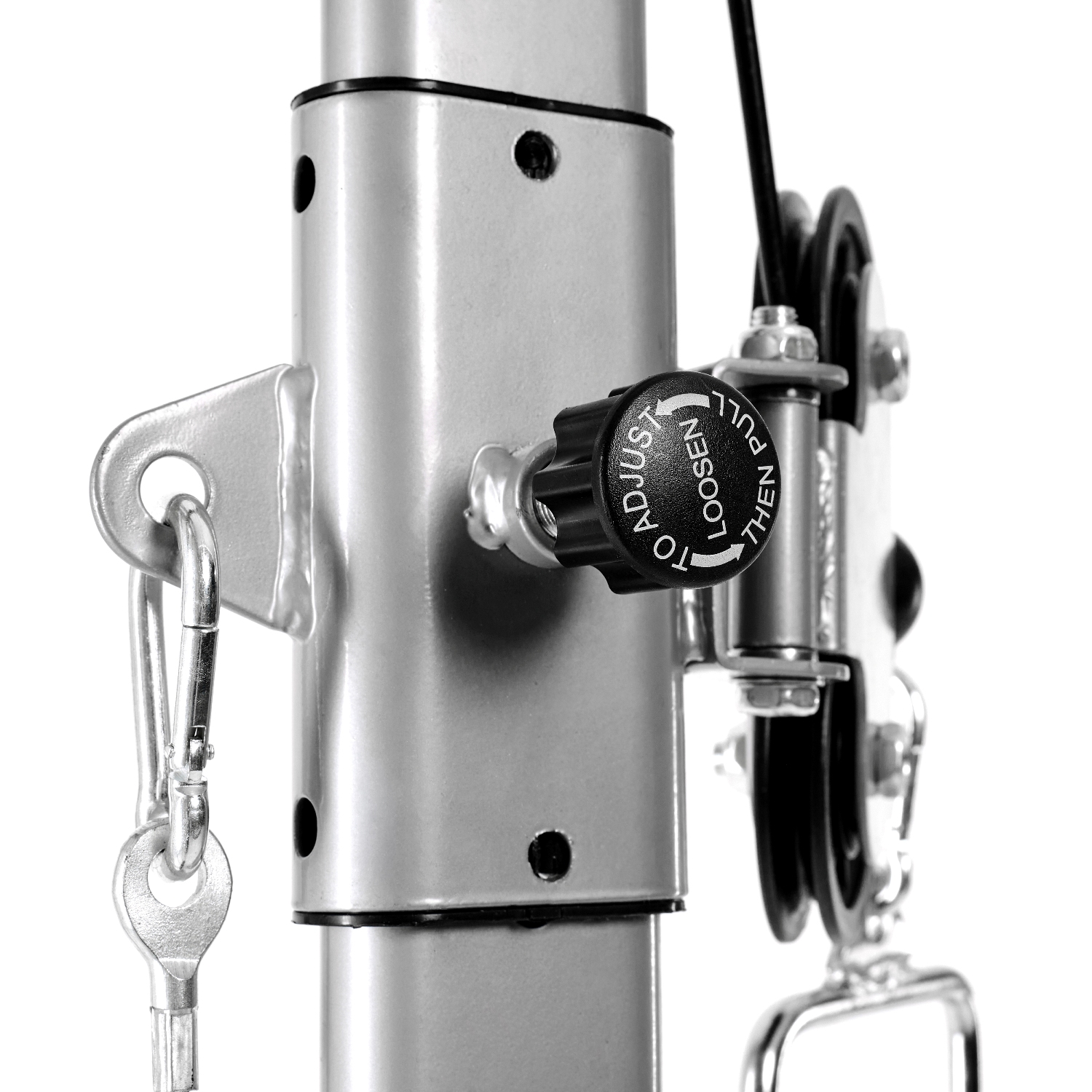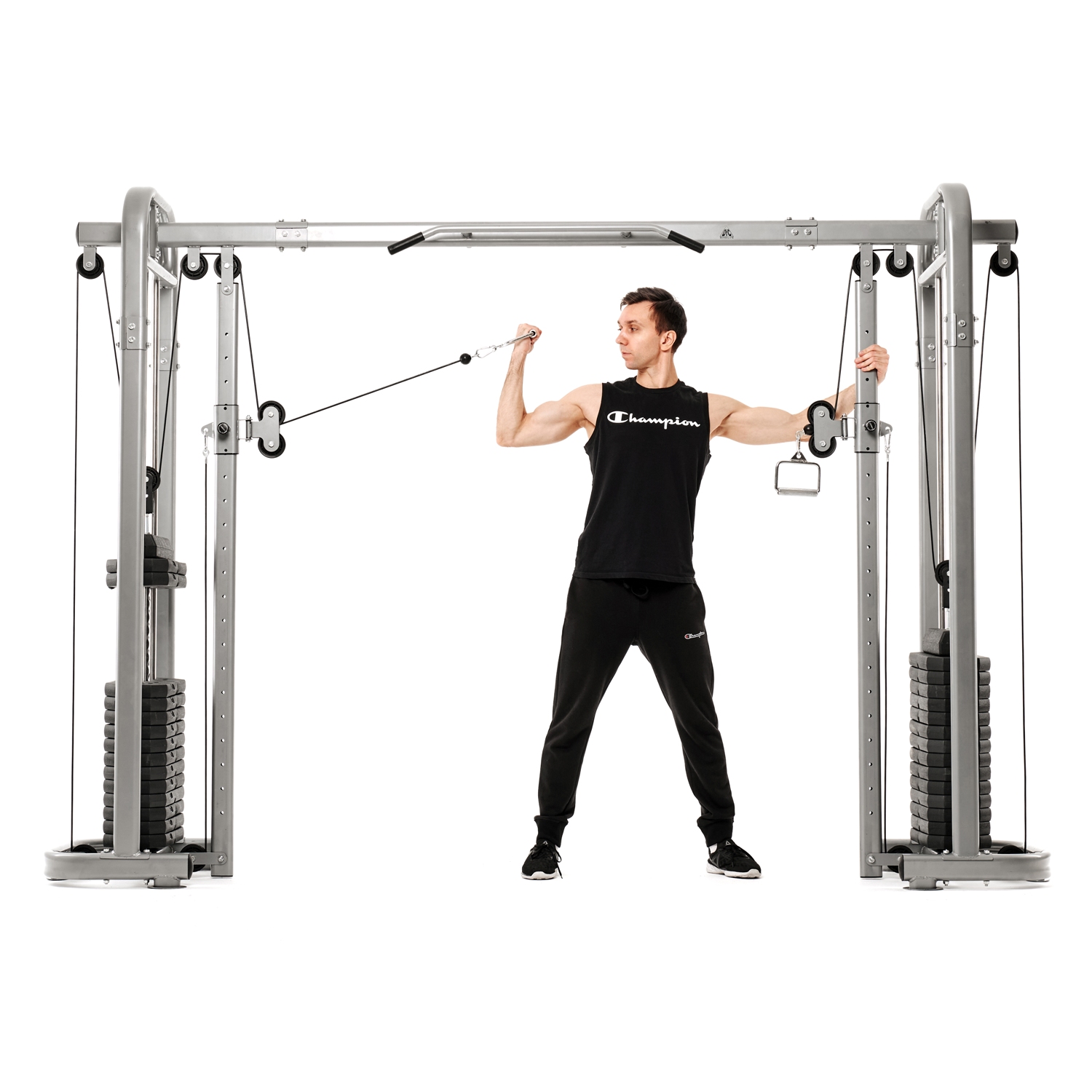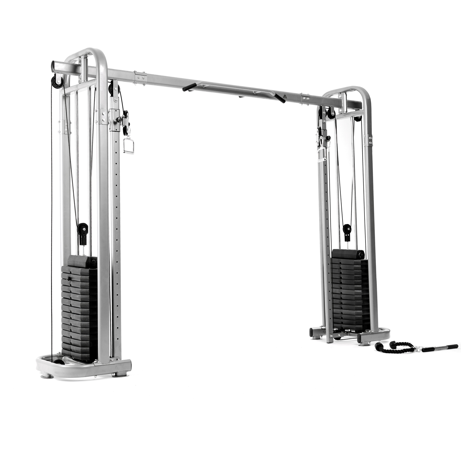 Кроссовер оснащён металлическими ручками с нескользящим хватом, которые регулируются по высоте в 11 положениях. При выполнении упражнений с верхней тягой, нагружаются мышцы рук, груди и верхнего отдела спины.