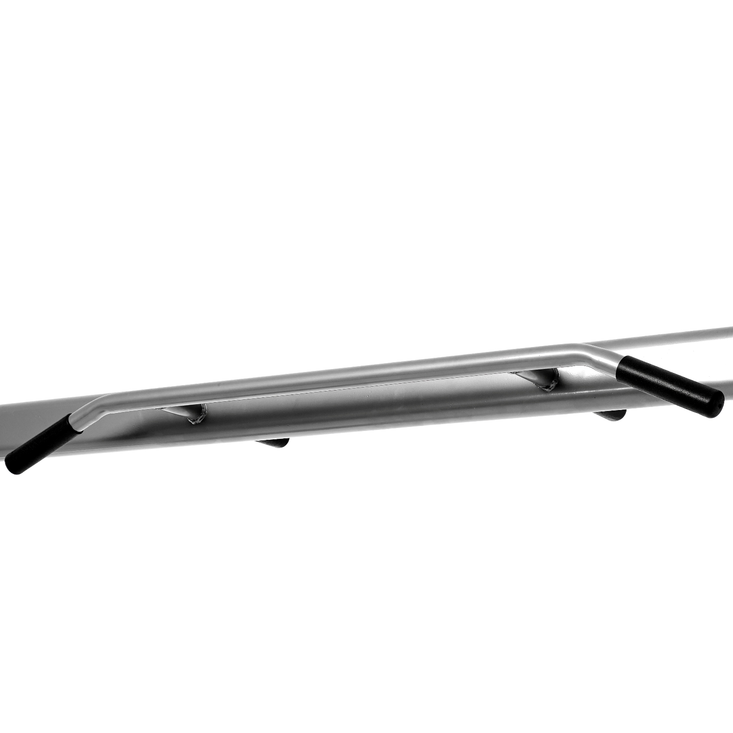 Турник с нескользящими ручками, входящий в комплектацию, выдерживает вес до 100 кг. Положение рук широким хватом хорошо укрепляет спину, руки и плечевой пояс.