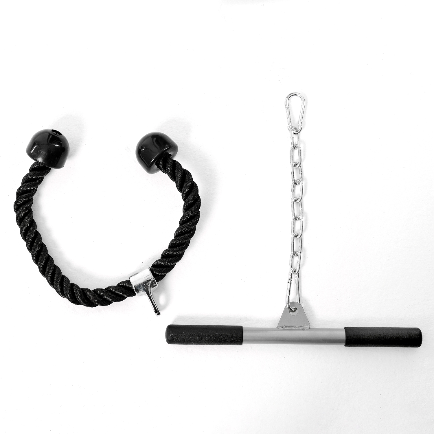 В комплектацию входит канат для упражнений на трицепс и бицепс (сгибания, разгибания рук), мышцы плеч и кора (упражнение «священник»). Он крепится к регулируемой по высоте каретке.