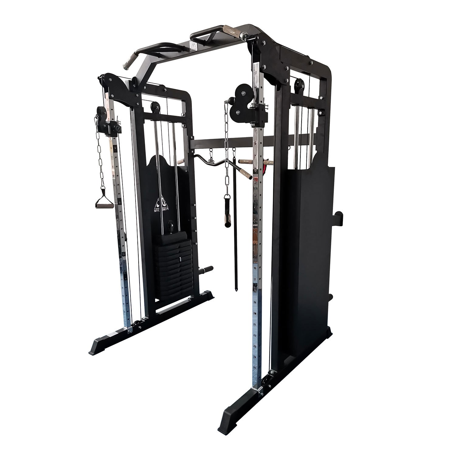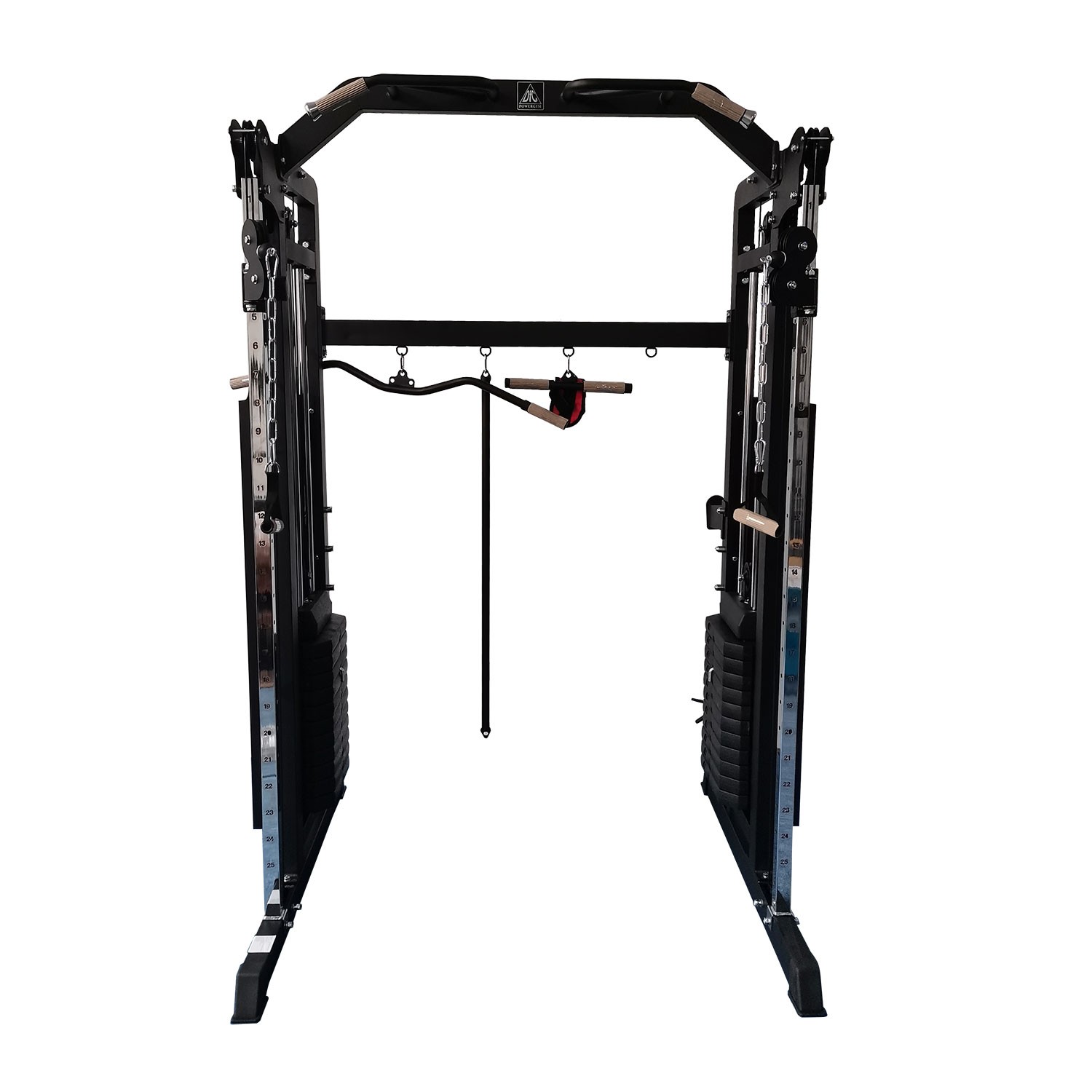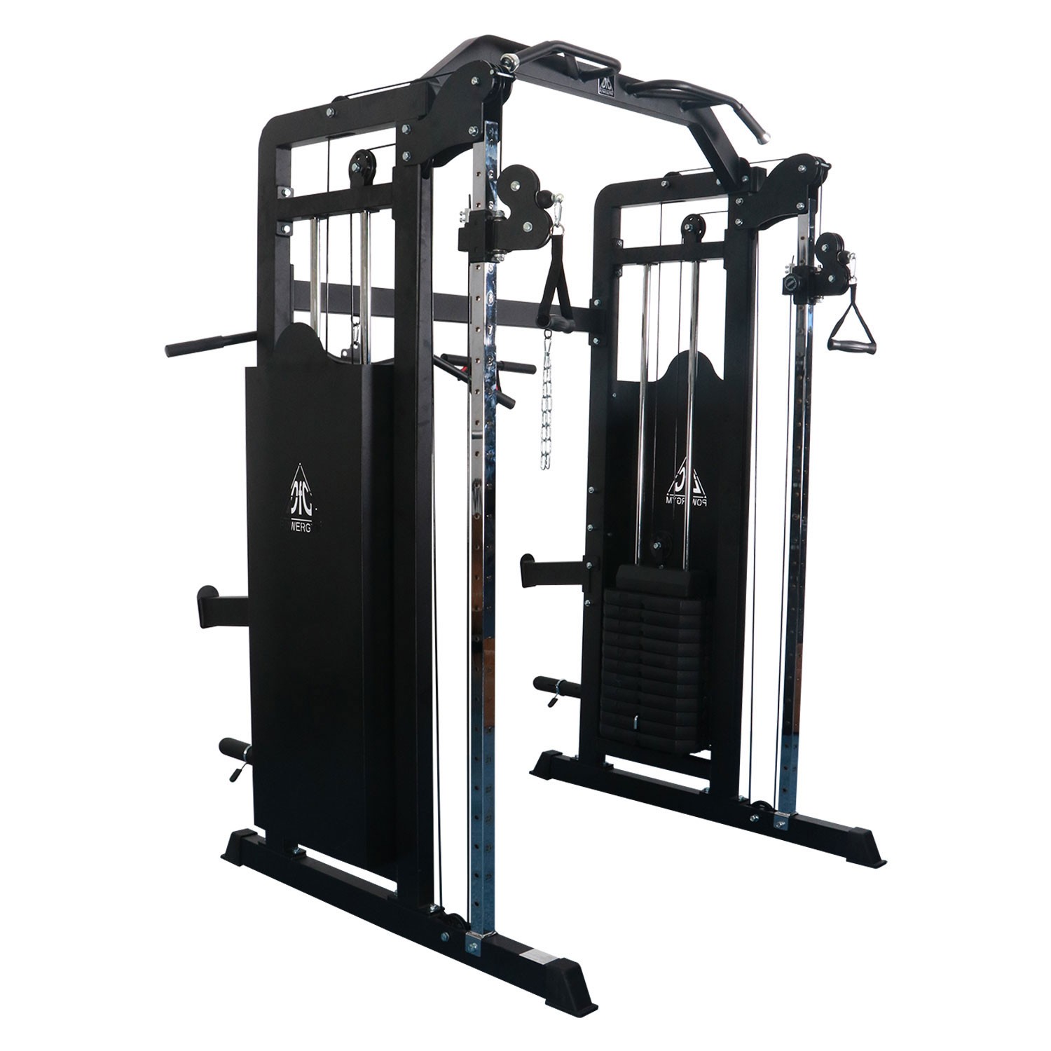 Силовой тренажер (кроссовер) со встроенными весами. Позволяет отлично прорабатывать мышцы верхней части тела благодаря множеству упражнений. Каждый блок с роликами регулируется по высоте тренажера.