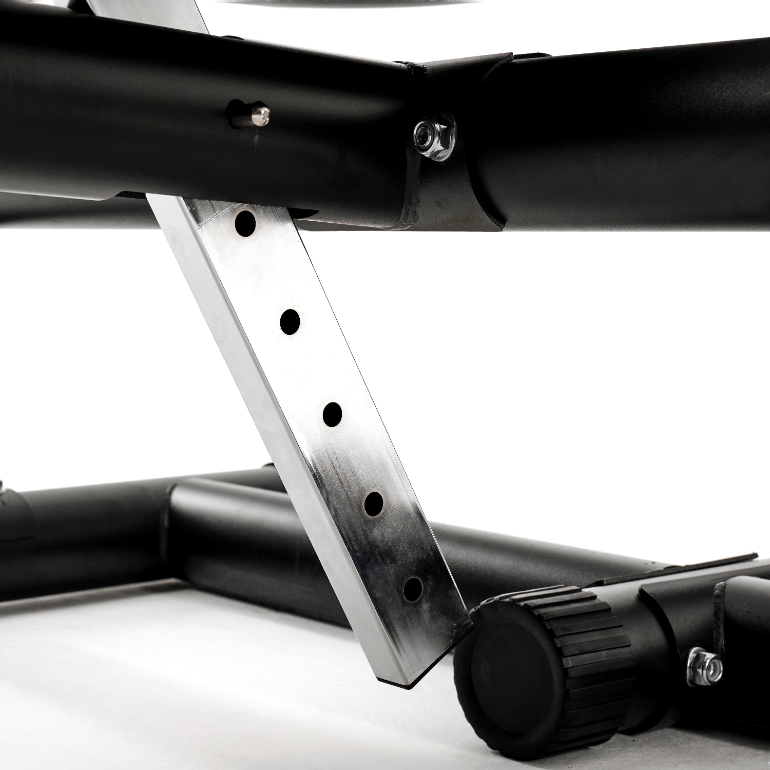Тренажер имеет мощную раму из металлического профиля с порошковой окраской в универсальный черный цвет, который впишется в любой интерьер. Основной профиль размером Ø76х1,5 мм. Резиновые ножки надежно фиксируют тренажер на полу.