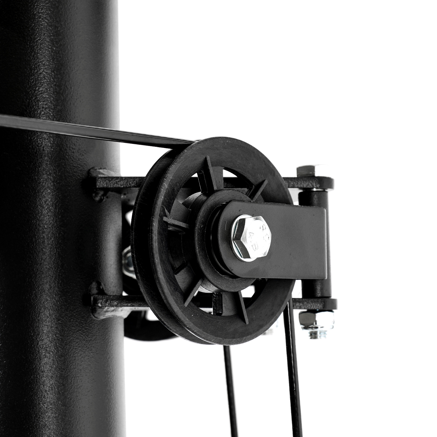 Нагрузка мультистанции осуществляется с помощью встроенного весового стека массой 45 кг, вес каждой плиты 4,5 кг. Ролики на подшипниках обеспечивают плавное движение. Стальной трос в защитной оплетке гарантирует безопасность при выполнении упражнений.