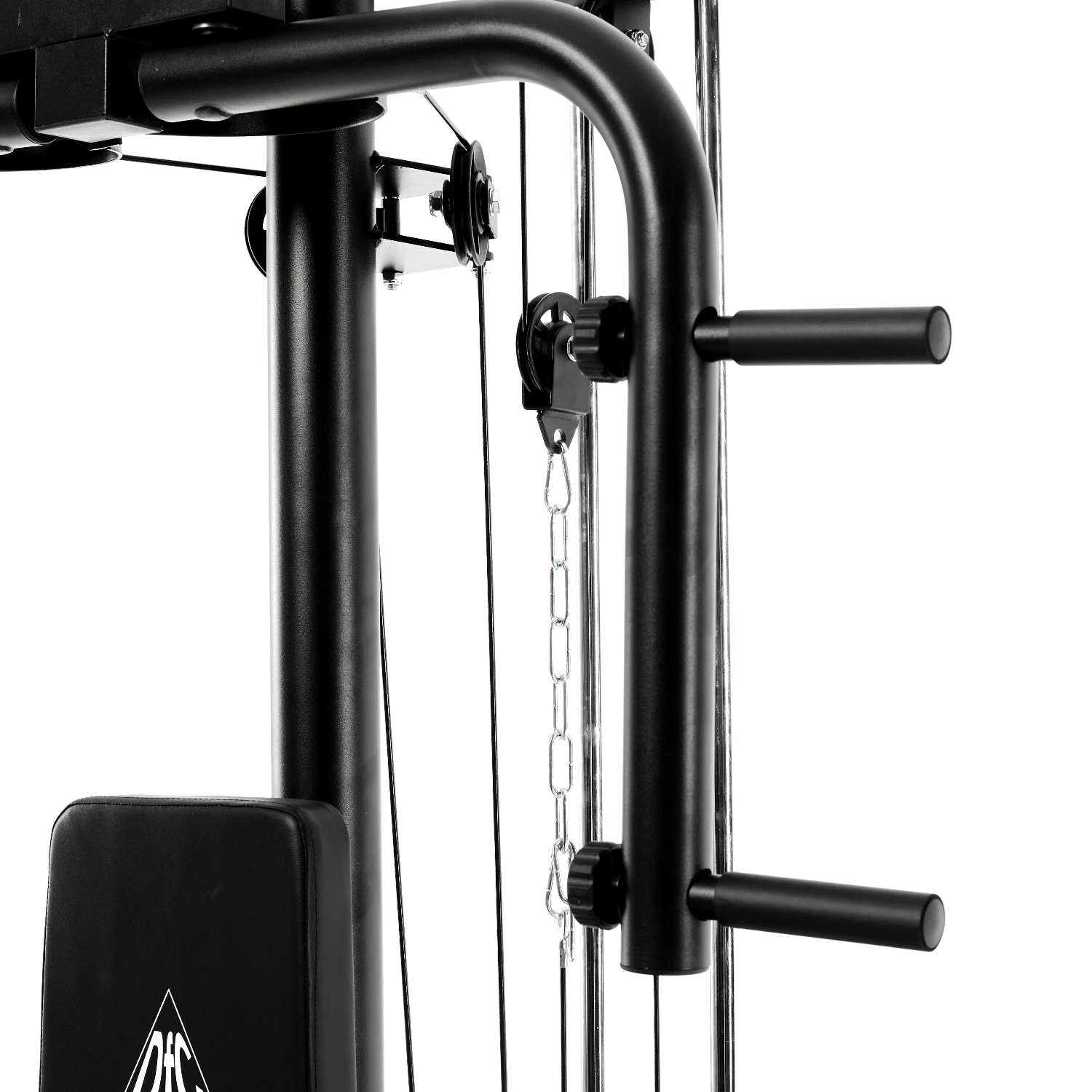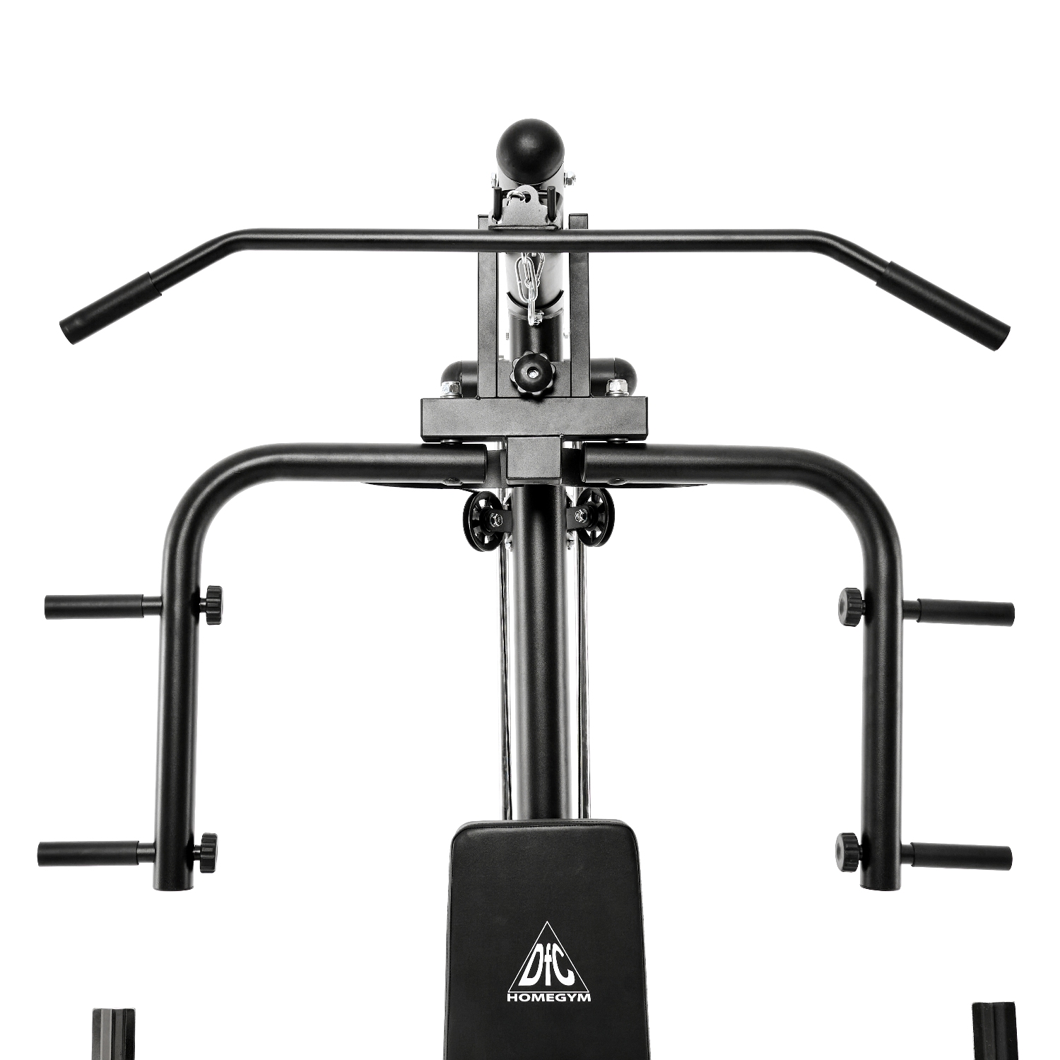Гриф для тяги сверху с нескользящей поверхностью, входит в комплект поставки. Используйте тягу для тренировки мышц рук (бицепс, трицепс) и спины. Для удобства перед упражнением снимите парту для бицепса.