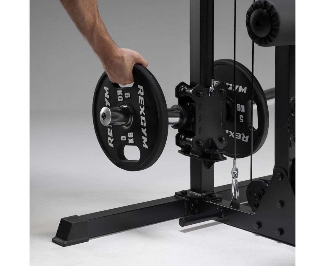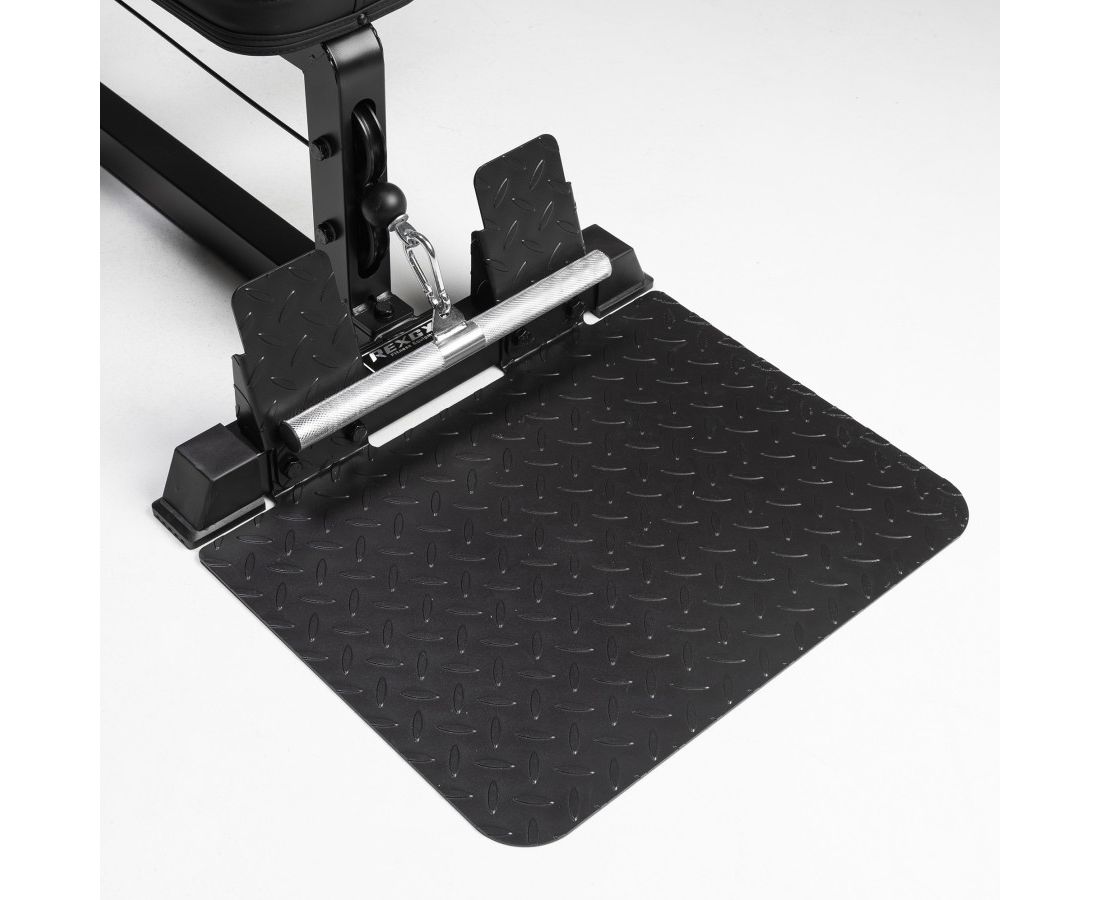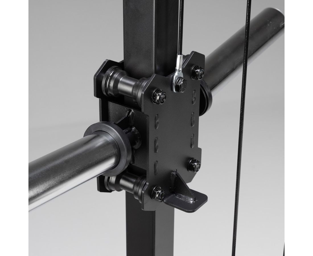 Бесшумная и прочная система блоков гарантирует плавность и комфорт движений даже при значительных нагрузках. Нескользящая платформа для ног длиной 55 см и рукоятки для верхней и нижней тяги, крепящиеся с помощью прочной стальной цепи, обеспечивают стабильность и безопасность при тренировках, а максимальный вес на каждый узел штанги составляет 60–70 кг.