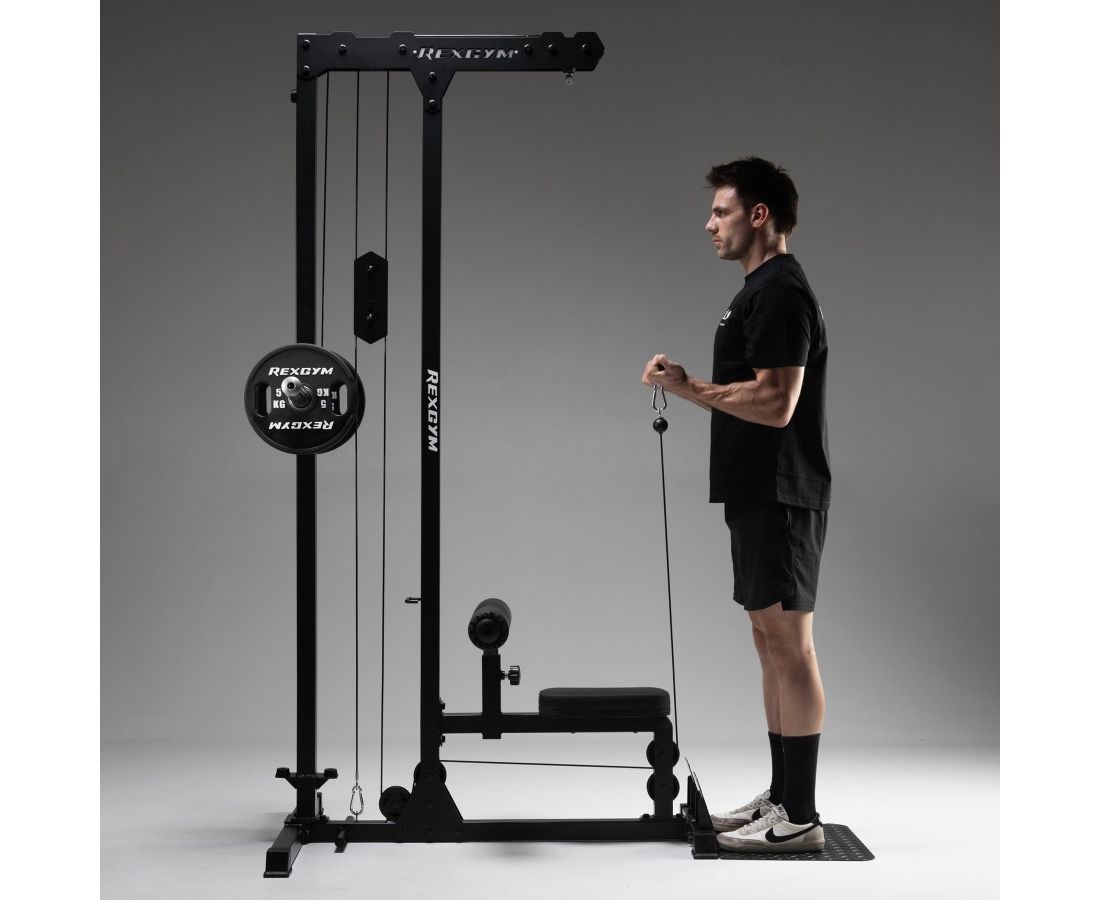 Тренажер тяга сверху/снизу DFC D2017G идеально подходит для регулярных домашних тренировок, позволяя эффективно выполнять тягу сверху и снизу для всесторонней проработки мышц верхней части тела.
