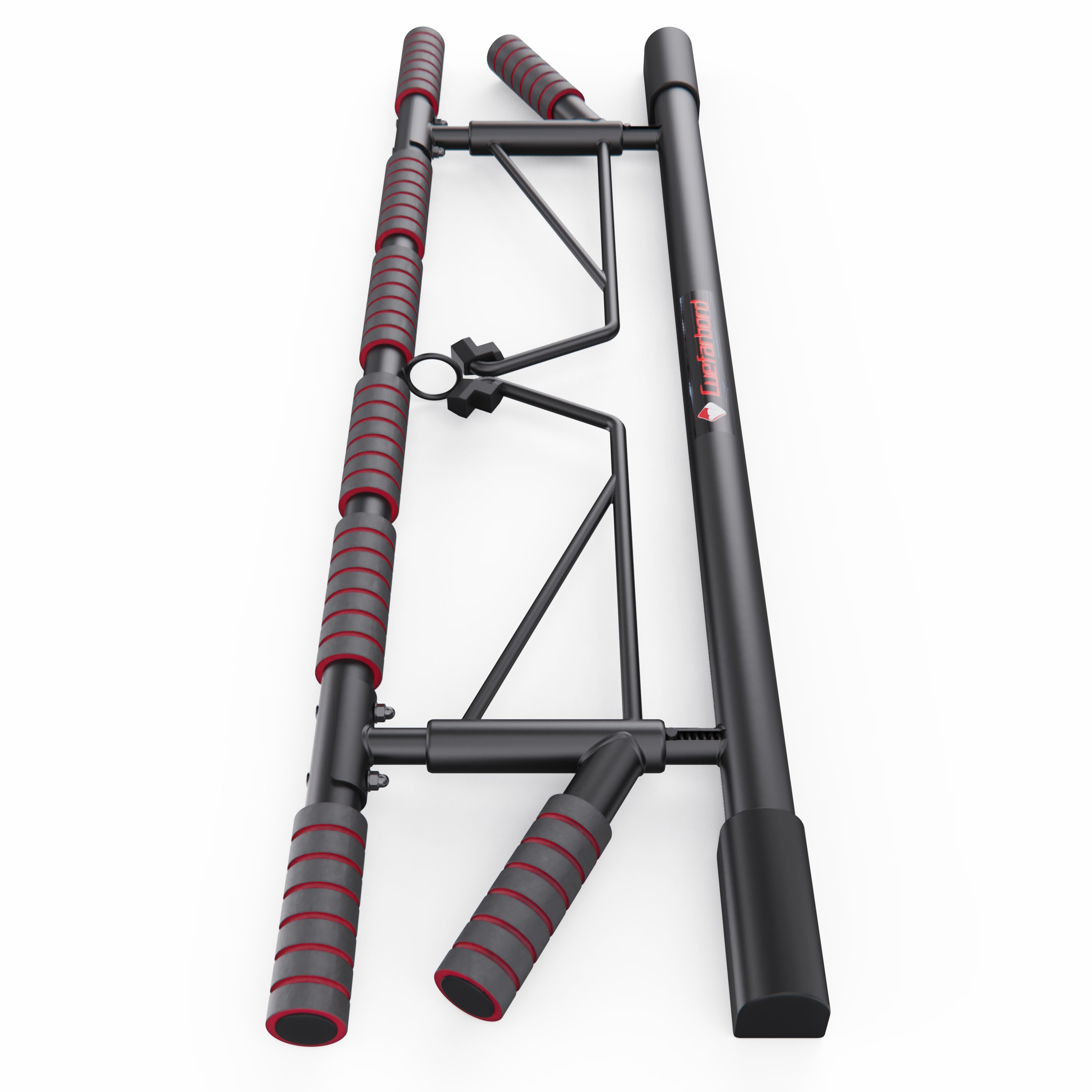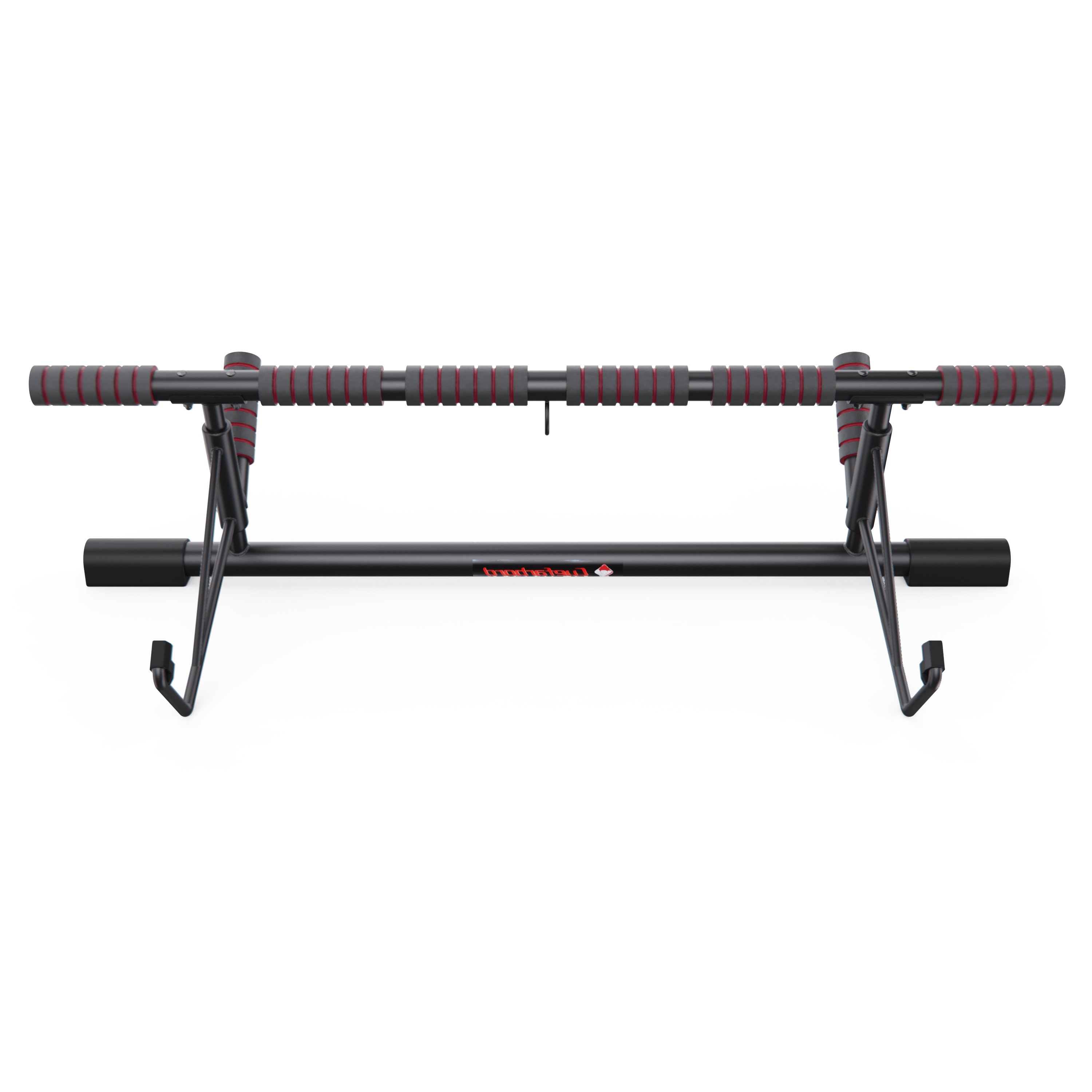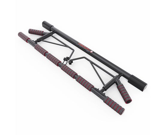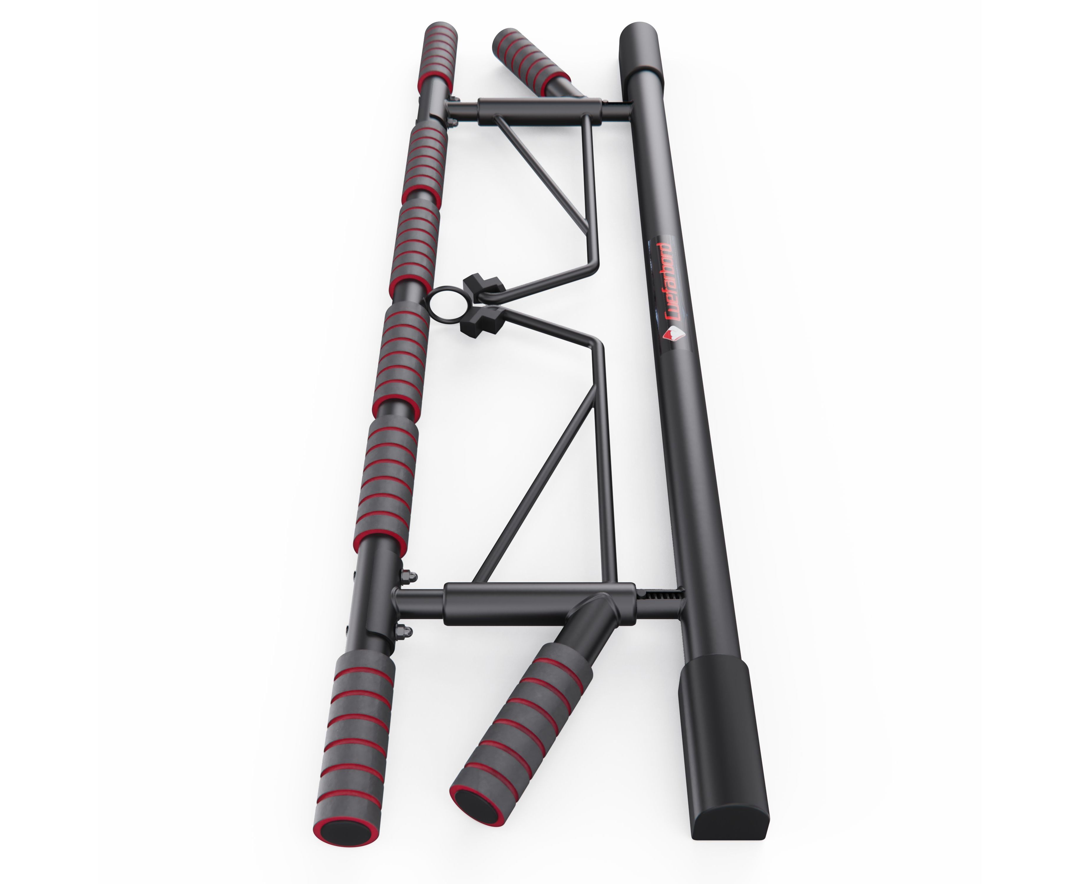 Он подходит для установки на дверные рамы шириной от 70 до 90 см и требует всего 1,5–2 см свободного пространства. В комплект входит петлевой тренажёр, который расширяет возможности занятий и позволяет выполнять не только подтягивания различными хватами, но и дополнительные упражнения для спины, рук и корпуса. Умное отверстие в конструкции даёт возможность подвешивать грушу или канат для разнообразных тренировок.