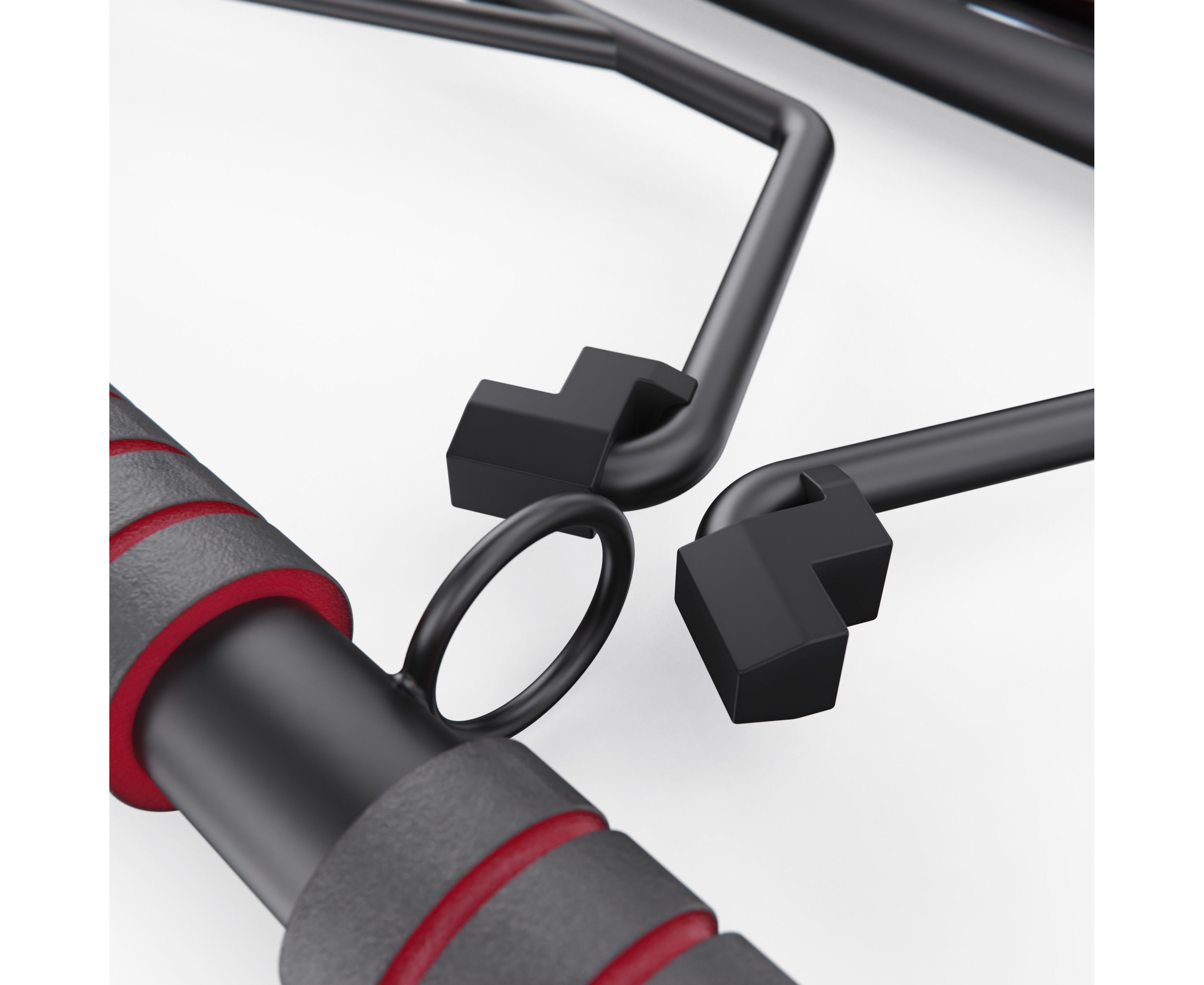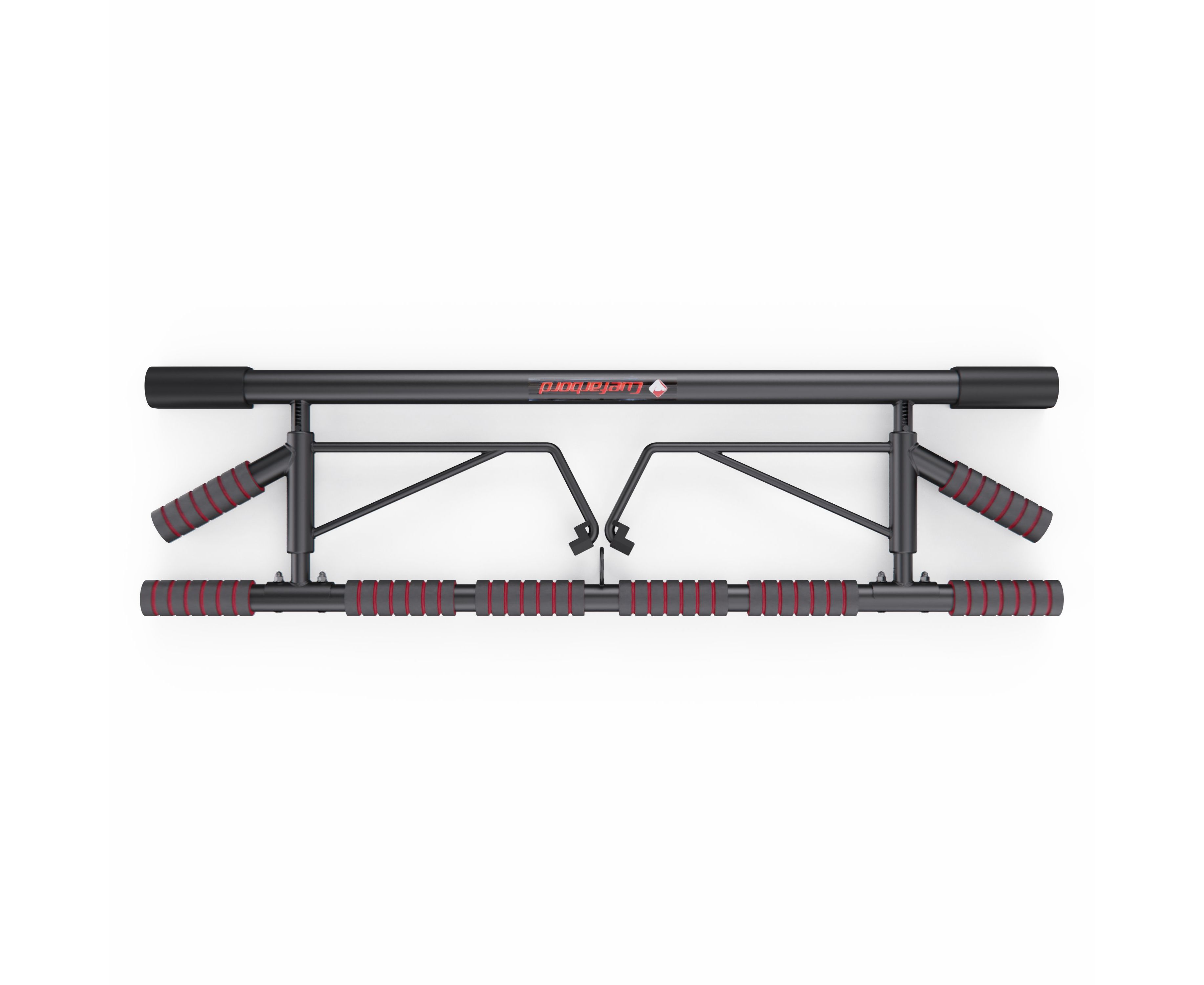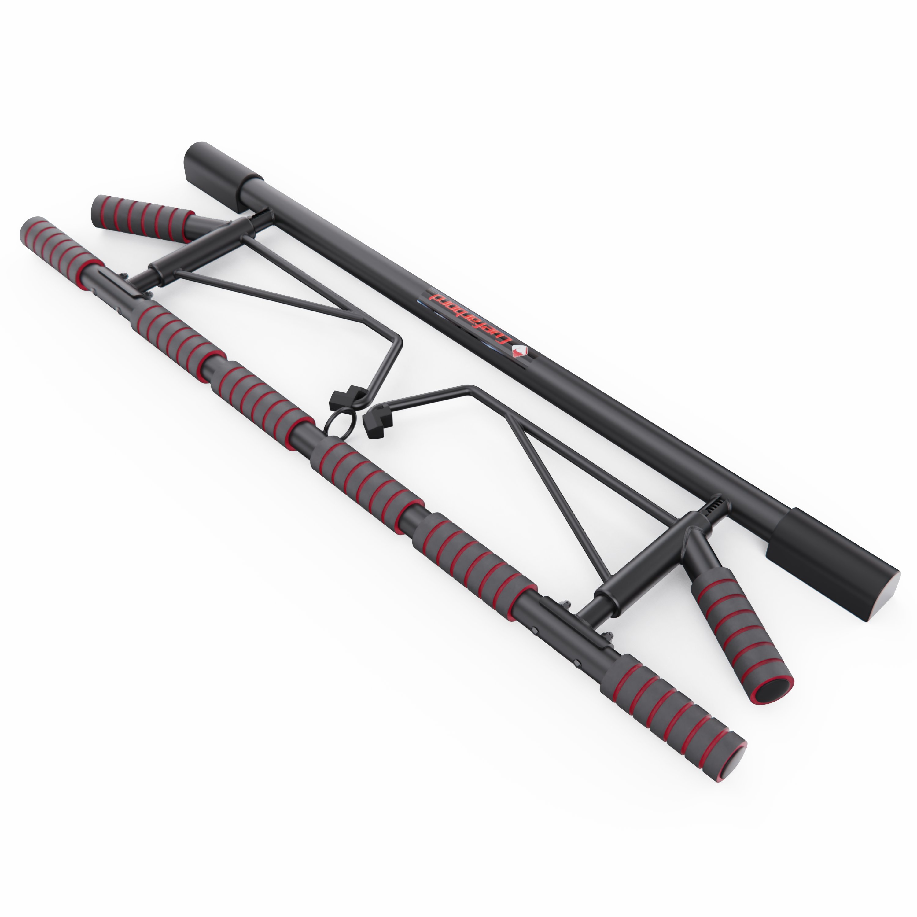 Он подходит для установки на дверные рамы шириной от 70 до 90 см и требует всего 1,5–2 см свободного пространства. В комплект входит петлевой тренажёр, который расширяет возможности занятий и позволяет выполнять не только подтягивания различными хватами, но и дополнительные упражнения для спины, рук и корпуса. Умное отверстие в конструкции даёт возможность подвешивать грушу или канат для разнообразных тренировок.